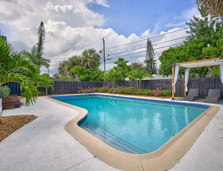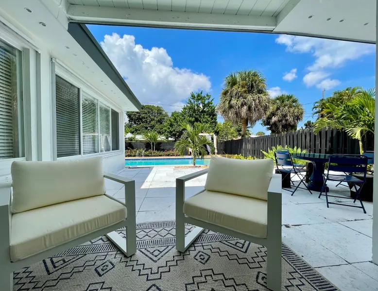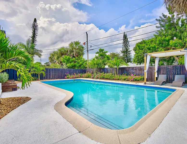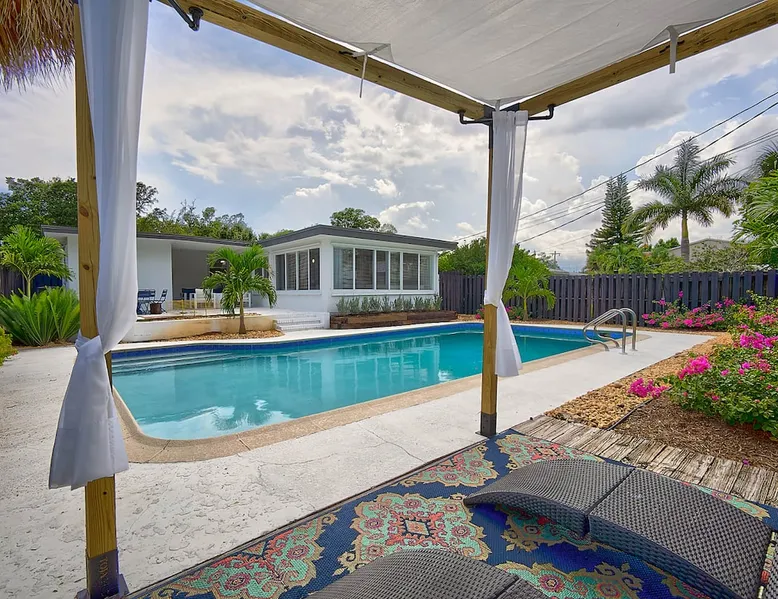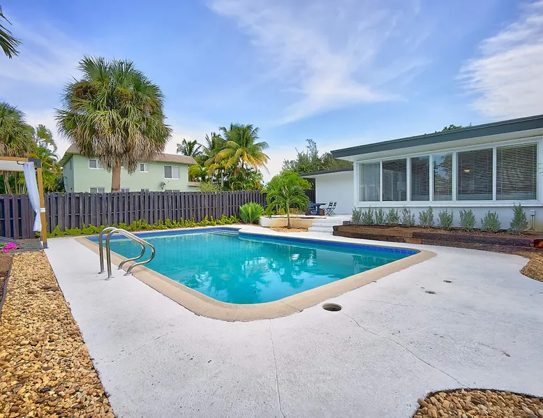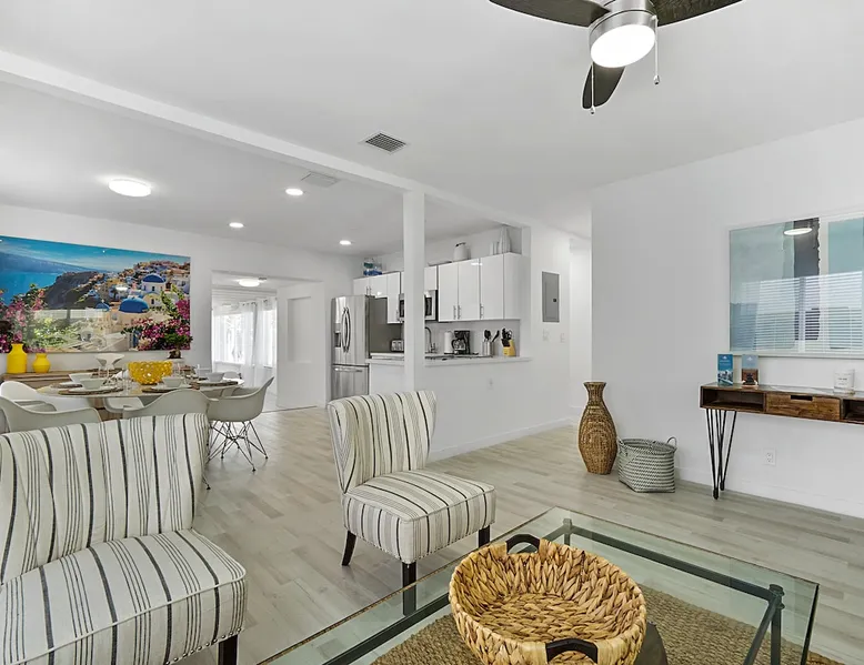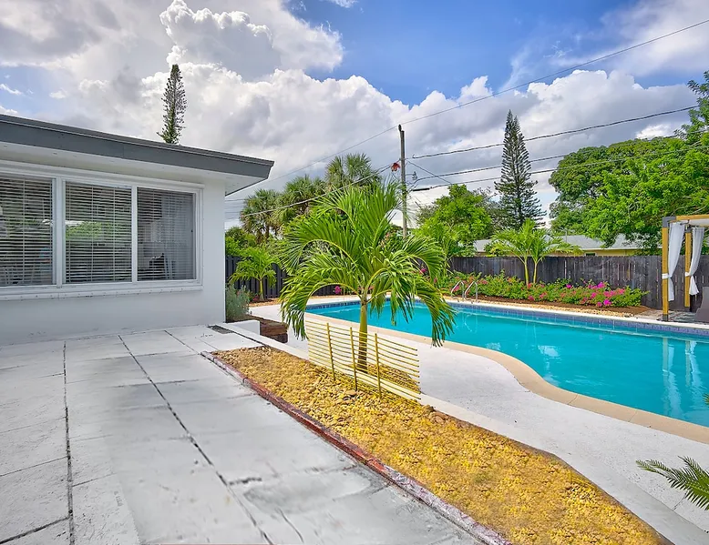 Immerse yourself in Greek island vibes while being just steps away from Wilton Dr.! We call this the Santorini home, and it's packed with amazing features: 3 bedrooms with very comfortable queen sized beds, ample room for 6 people, an incredible primary bath and a full guest bath. A beautiful, private pool and outdoor area, BBQ, perfect for entertaining outside. Super Fast WiFi, huge TV in Living room. The space Immerse yourself in Greek island vibes while being just steps away from Wilton Dr.! We call this the Santorini home, and it's packed with amazing features: 3 bedrooms with very comfortable queen sized beds, ample room for 6 people, an incredible primary bath and a full guest bath. A beautiful, private pool and outdoor area, BBQ, perfect for entertaining outside. Super Fast WiFi, huge TV in Living room. The Space The property has SONOS speakers throughout so you can play your favorite music anytime. The pièce de résistance is the family room, it's where you'll spend all your time, huge and very comfortable with 65" TV and a gorgeous view of the patio area in all its colorful splendor. It's close to all you'll want, but secluded enough to be private and quiet. And you have 100% exclusive access! LGBTQ+ friendly and pet friendly. 8 mins to Las Olas, and 15 minutes from FLL airport. Stocked kitchen with brand-new stainless steel appliances. This property features our brand-new Le Chateau Soft Cloud Percale luxury bed linen and towels for a heavenly sleep and bath experience every time. You'll love this place! Guest access The house is 100% private, no areas are shared. Other things to note No parties or gatherings. There's no dishwasher in this property. Pool has no heater and no light. Parties/gatherings are not allowed. Pack n Play and high chair are available upon request Some pets allowed - There is a $250 pet fee if you travel with one pet, and $350 for two or more pets. TVs in this property are smart so you ll be able to log into your favorite streaming apps including those for broadcast TV. You have the option to log into any streaming app for which you have an account. We do not provide streaming app accounts. Please do not flush wipes down the toilet. If you use wipes please throw them in the trash bin. Clogged plumbing lines may incur fees for plumbing repairs. Per local city laws: -No commercial vehicles allowed -No more than 3 vehicles on the driveway -No street parking, no parking on the grass -No more than 9 guests allowed at any time on property total. -No commercial filming allowed -No noise after 9PM -No events