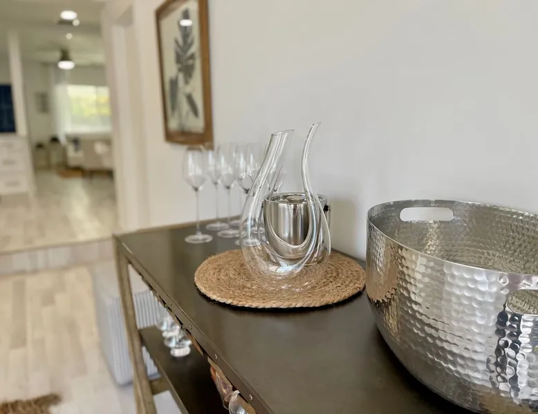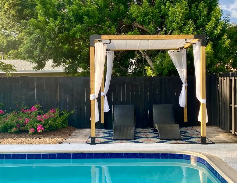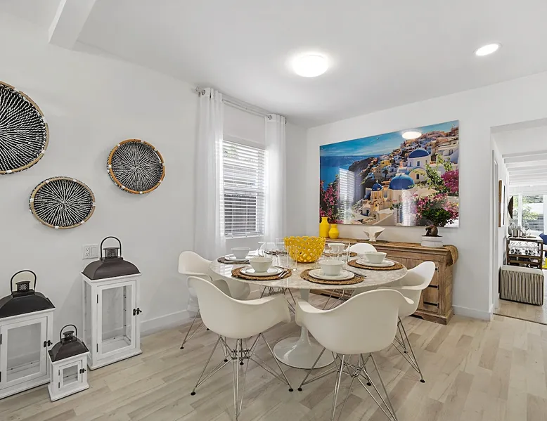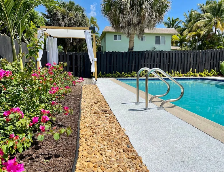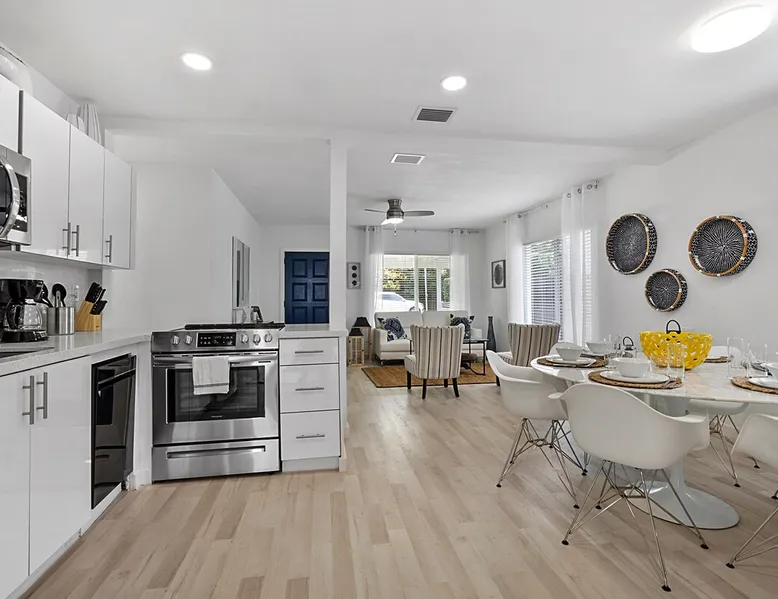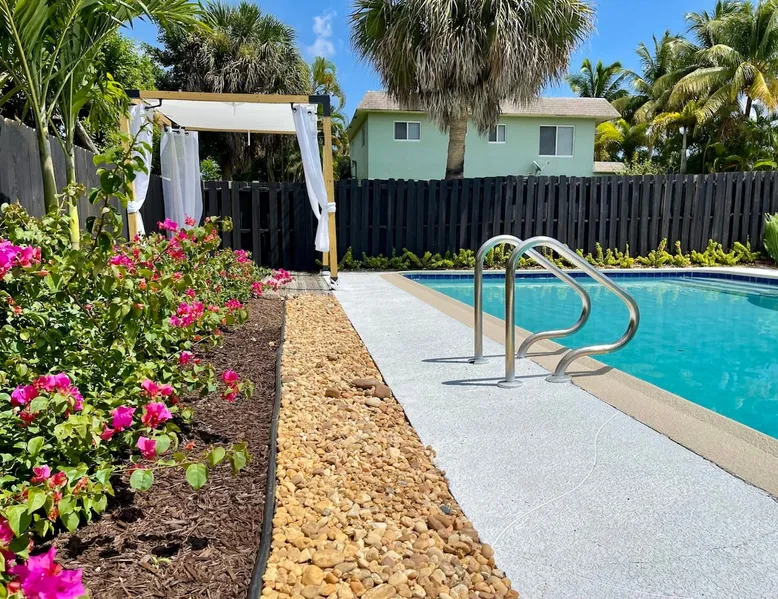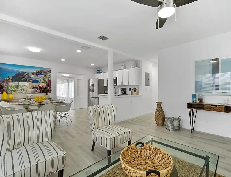 Immerse yourself in Greek island vibes while being just steps away from Wilton Dr.! We call this the Santorini home, and it's packed with amazing features: 3 bedrooms with very comfortable queen sized beds, ample room for 6 people, an incredible primary bath and a full guest bath. A beautiful, private pool and outdoor area, BBQ, perfect for entertaining outside. Super Fast WiFi, huge TV in Living room. The space Immerse yourself in Greek island vibes while being just steps away from Wilton Dr.! We call this the Santorini home, and it's packed with amazing features: 3 bedrooms with very comfortable queen sized beds, ample room for 6 people, an incredible primary bath and a full guest bath. A beautiful, private pool and outdoor area, BBQ, perfect for entertaining outside. Super Fast WiFi, huge TV in Living room. The Space The property has SONOS speakers throughout so you can play your favorite music anytime. The pièce de résistance is the family room, it's where you'll spend all your time, huge and very comfortable with 65" TV and a gorgeous view of the patio area in all its colorful splendor. It's close to all you'll want, but secluded enough to be private and quiet. And you have 100% exclusive access! LGBTQ+ friendly and pet friendly. 8 mins to Las Olas, and 15 minutes from FLL airport. Stocked kitchen with brand-new stainless steel appliances. This property features our brand-new Le Chateau Soft Cloud Percale luxury bed linen and towels for a heavenly sleep and bath experience every time. You'll love this place! Guest access The house is 100% private, no areas are shared. Other things to note No parties or gatherings. There's no dishwasher in this property. Pool has no heater and no light. Parties/gatherings are not allowed. Pack n Play and high chair are available upon request Some pets allowed - There is a $250 pet fee if you travel with one pet, and $350 for two or more pets. TVs in this property are smart so you ll be able to log into your favorite streaming apps including those for broadcast TV. You have the option to log into any streaming app for which you have an account. We do not provide streaming app accounts. Please do not flush wipes down the toilet. If you use wipes please throw them in the trash bin. Clogged plumbing lines may incur fees for plumbing repairs. Per local city laws: -No commercial vehicles allowed -No more than 3 vehicles on the driveway -No street parking, no parking on the grass -No more than 9 guests allowed at any time on property total. -No commercial filming allowed -No noise after 9PM -No events