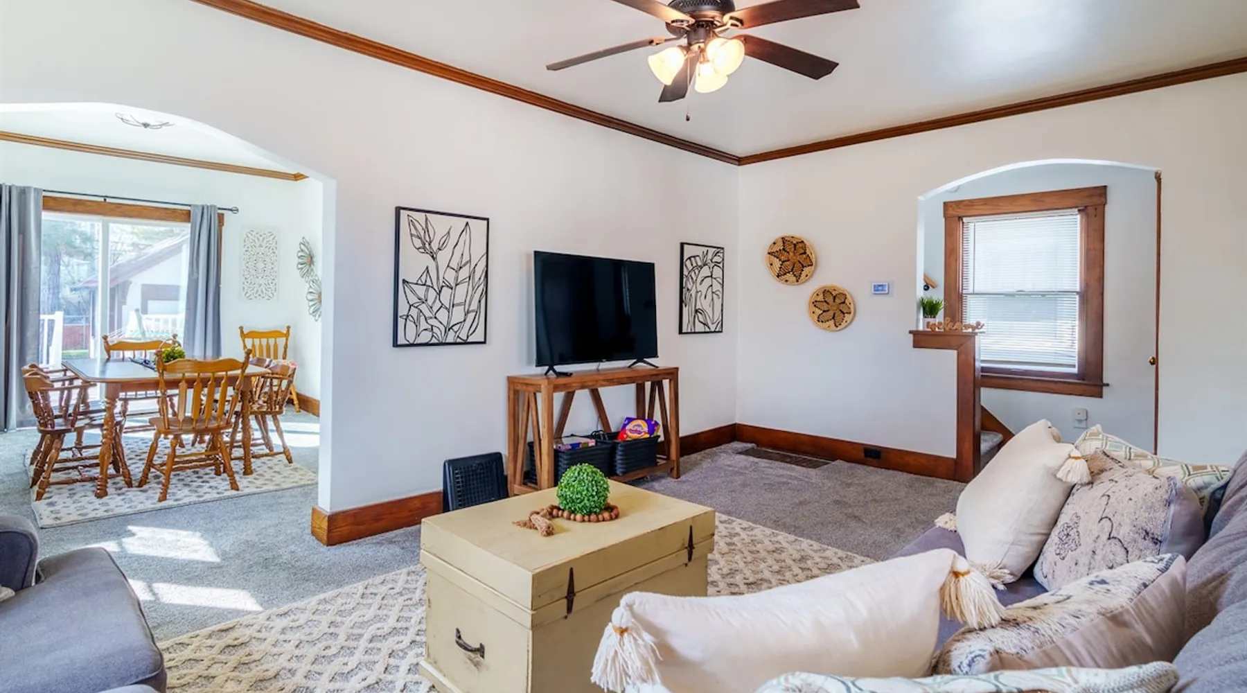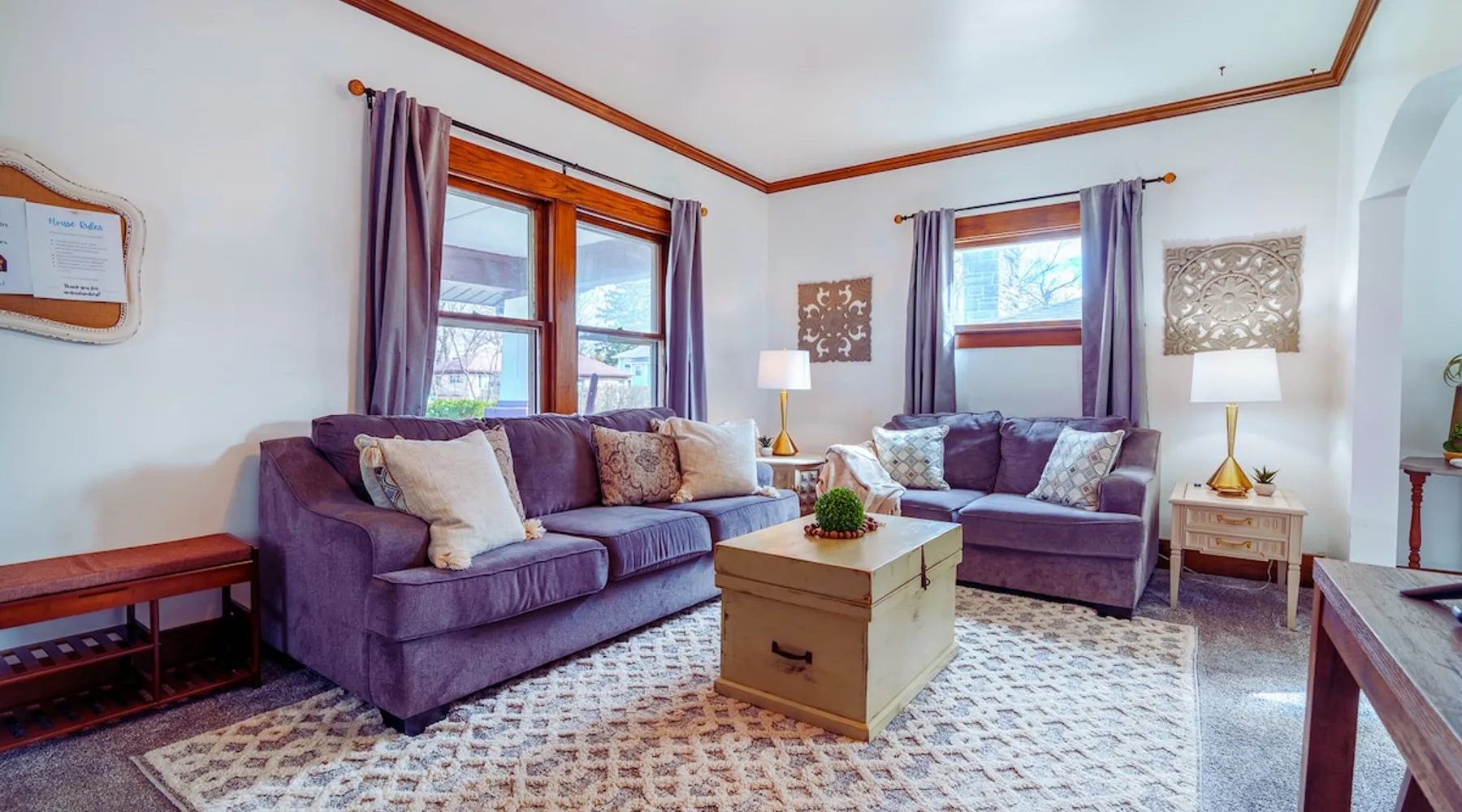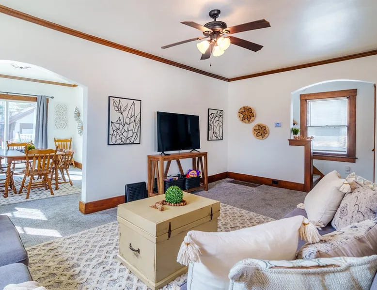 Prime location & great for families or small groups: ⭐King & Queen beds w/2 FULL baths. ⭐Large deck w/BBQ grill, lazy hammock, patio table & lots of seating ⭐Baby & kids amenities: travel crib, high chair, baby gates & many board games ⭐Stocked kitchen w/ coffee & tea bar ⭐Private Driveway for easy parking 🚲FREE use of our bikes in spring & summer to cruise downtown (10 minute bike ride) Stay at our Cozy Craftsman for your next trip to the Fort! The space BEST LOCATION for your visit to the Fort: ◼5 minute WALK to Lakeside Park Rose Garden w/tennis, pickleball & playground ◼5 min to Downtown, Purdue, or Indiana Tech ◼6 min to Coliseum ◼7 min to Parkview Field ◼9 min to Parkview Sports Fieldhouse & Icehouse ◼10 min to Fort Wayne Zoo PROPERTY FEATURES: There are 3 spacious BEDROOMS (all located on the second floor): ◼Bedroom 1: KING size bed, memory foam mattress ◼Bedroom 2: Queen size bed, memory foam mattress ◼Bedroom 3: Queen size bed, memory foam mattress ◼Queen air mattress that can be used in the living room on the first floor or in the small 4th room upstairs BATHROOMS: ◼Full size bathroom downstairs with walk-in shower ◼Full size bathroom upstairs with shower/tub combo OFFICE/DEN: ◼Dedicated desk with chair ◼Pack n Play available ◼Electric fireplace LIVING ROOM: ◼60inch ROKU smart TV ◼3 seater comfortable couch ◼2 seater loveseat ◼1 queen size self-inflating air mattress (highly rated on consumer report for comfort) DINING ROOM: ◼Dining table comfortably seats 6 ◼High Chair provided KITCHEN: ◼Newly remodeled ◼Stainless steel appliances, microwave, toaster, electric kettle ◼Coffee and tea bar ◼Variety of pots/pans/bakeware ◼Spice rack and salt/pepper provided for your cooking needs LARGE DECK: ◼Hammock ◼Chairs and table ◼BBQ grill BASEMENT: ◼Full size washer and dryer Guest access Free parking on driveway. Garage parking available upon request. Guests have access to the entire home except for the locked owner's storage containers and totes in the basement. Other things to note We take pride in taking great care of our house and set high standards for our housekeeper. Our #1 goal is that our guests have a relaxing, stress-free stay and enjoy our home to the fullest. 📑 We ask all guests to read and agree to our house rules prior to booking. House rules can be found under the "House Rules" tab on Airbnb. Please click on "show more." I ask the main guest to sign the rental agreement for the group. I generally do not accept booking requests from locals unless the reservation is for extended families visiting from out of town. Please send me an inquiry letting me know the reason for your stay, if you live locally. Security deposit is also required for use of bikes or one night bookings. Our property is a privately owned home, and therefore sometimes appliances or household systems (HVAC, Plumbing, WIFI, etc.) may unexpectedly malfunction. While we will do everything in our power to address any functionality issues as quickly as possible, we cannot offer refunds- full or partial, cancellations, or alternate accommodations unless the property is deemed uninhabitable. Please note, there may be sporadic construction noise during the day as the city is replacing water line pipes. Please also note in extremely cold temperatures in the winter (<10 deg F), the first level bathroom may be unavailable due to risk of freezing due to location of the pipe. The rest of the house is not affected. We look foward to hosting you in Fort Wayne!