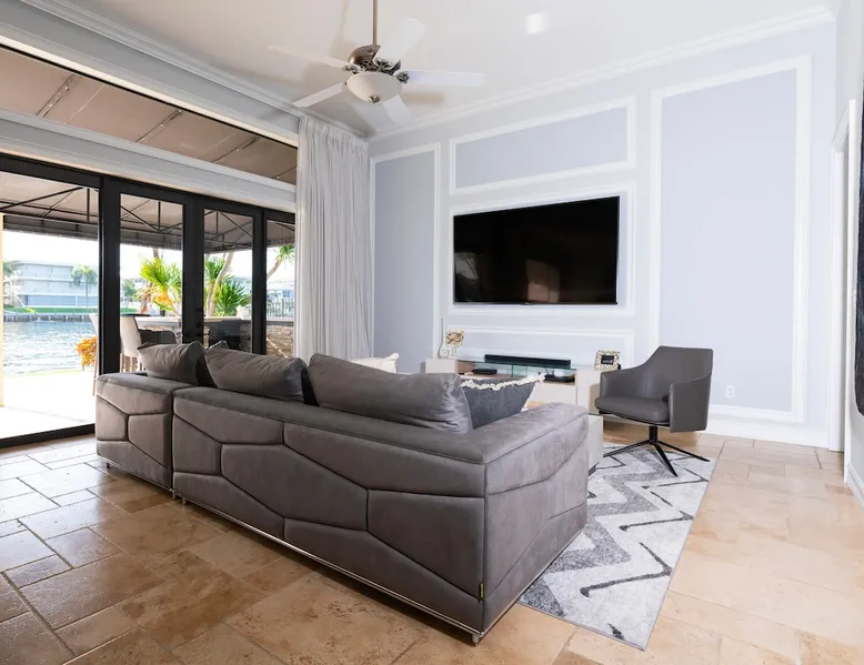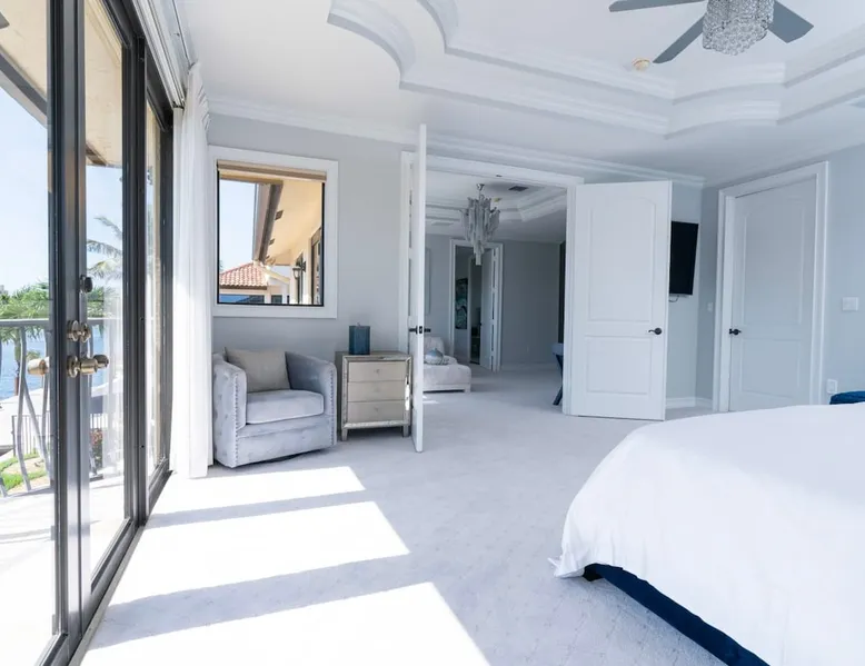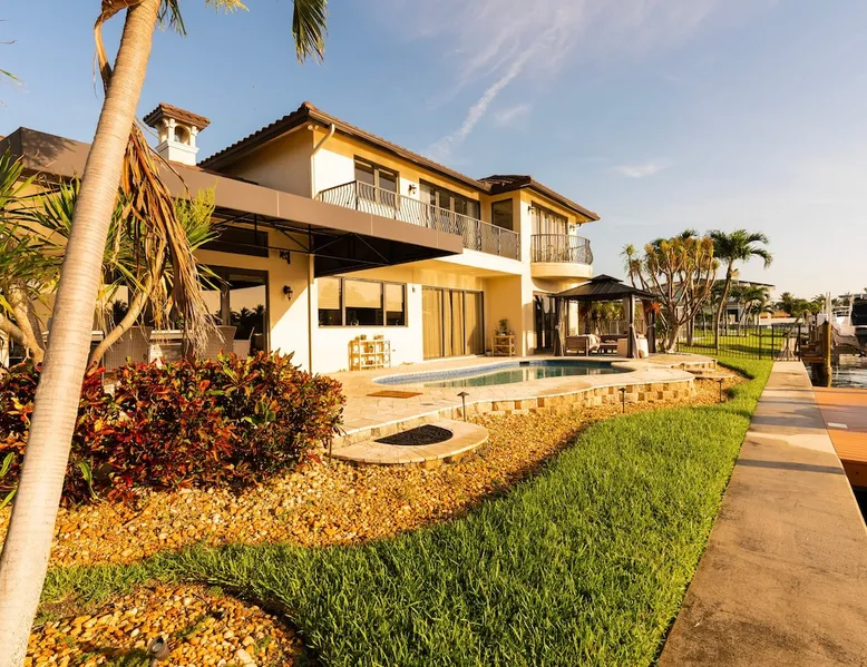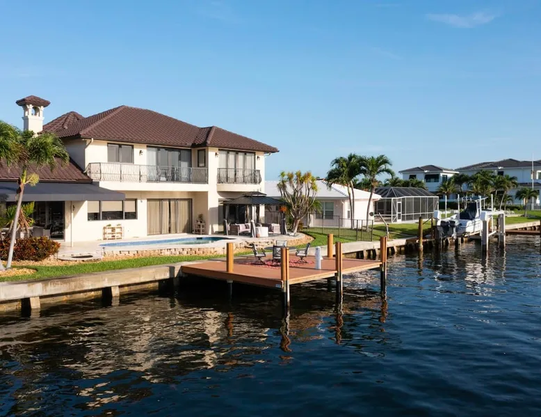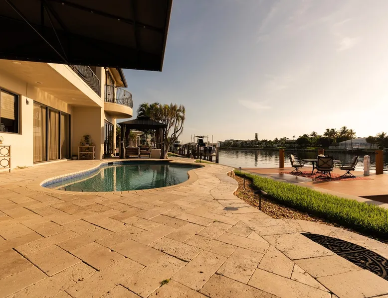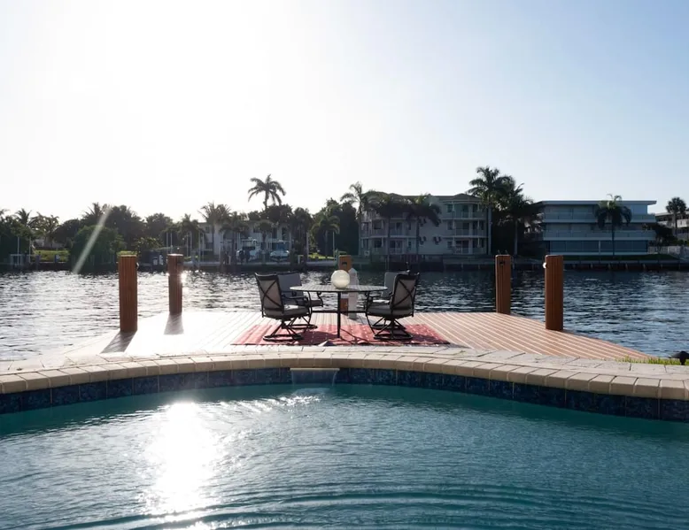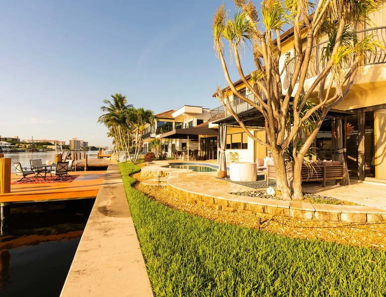 This stunning 5 bedroom 5.5 bathroom villa sits on a very wide, deep water part of the Intracoastal. Enjoy watching amazing ships cruise by! High ceilings, Sonos music system throughout the house, a fireplace, a 75" Sony smart TV, and a professional chef's kitchen with all JennAir stainless steel appliances makes this the perfect home for entertaining. There's a Publix supermarket (mainstream grocery store) and a Whole Foods (high-end/specialty grocery store) nearby. The space This stunning 5 bedroom 5.5 bathroom villa sits on a very wide, deep water part of the Intracoastal. Enjoy watching amazing ships cruise by! High ceilings, Sonos music system throughout the house, a fireplace, a 75" Sony smart TV, and a professional chef's kitchen with all JennAir stainless steel appliances makes this the perfect home for entertaining. There's a Publix supermarket (mainstream grocery store) and a Whole Foods (high-end/specialty grocery store) nearby, as well as plenty of amazing restaurants and bars within a 5-10 mins drive. One of our recommendations is to try Oceans 234, a cool bistro joining innovative takes on classic seafood dishes with sunset views & sea breezes. It has great reviews! Another is the Cove Waterfront Restaurant and Tiki Bar. The space The villa is over 4,000 sqft across two stories. There are two bedrooms on the first floor, and three bedrooms including a large master upstairs with a balcony overlooking the gorgeous Intracoastal views. The kitchen and family room lead to the expansive pool and deck area with access to the dock and deep Intracoastal water. Again, all ensuite bedrooms with their own private bathrooms, plus another half bath downstairs. Guest access The property is 100% private, and the guests have exclusive access to the entire property. No spaces are shared. Other things to note Other things to note Outdoor pergola and associated furniture was damaged by high winds and is not available at this time. Parties/gatherings are not allowed. Pack n Play and high chair are available upon request Some pets allowed - There is a $250 pet fee if you travel with one pet, and $350 for two or more pets. TVs in this property are smart so you ll be able to log into your favorite streaming apps including those for broadcast TV. You have the option to log into any streaming app for which you have an account. We do not provide streaming app accounts. Please do not flush wipes down the toilet. If you use wipes please throw them in the trash bin. Clogged plumbing lines may incur fees for plumbing repairs. Per local city laws: -No commercial vehicles allowed -No more than 5 vehicles on the driveway -No street parking, no parking on the grass -No more than 15 guests allowed at any time on property total. -No commercial filming allowed -No noise after 9PM -No events