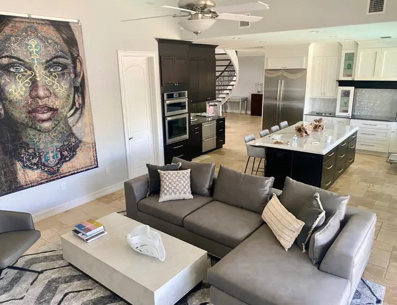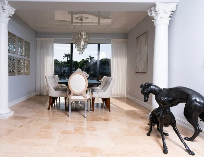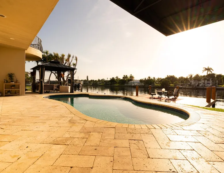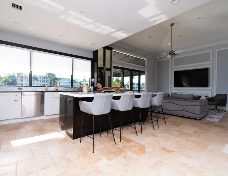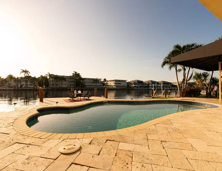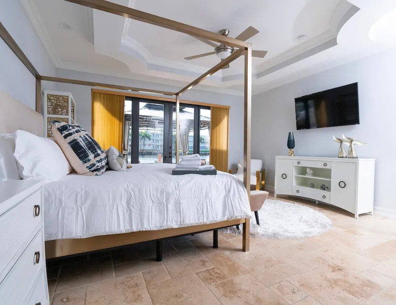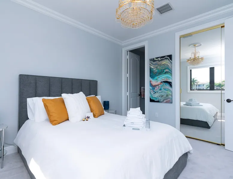 This stunning 5 bedroom 5.5 bathroom villa sits on a very wide, deep water part of the Intracoastal. Enjoy watching amazing ships cruise by! High ceilings, Sonos music system throughout the house, a fireplace, a 75" Sony smart TV, and a professional chef's kitchen with all JennAir stainless steel appliances makes this the perfect home for entertaining. There's a Publix supermarket (mainstream grocery store) and a Whole Foods (high-end/specialty grocery store) nearby. The space This stunning 5 bedroom 5.5 bathroom villa sits on a very wide, deep water part of the Intracoastal. Enjoy watching amazing ships cruise by! High ceilings, Sonos music system throughout the house, a fireplace, a 75" Sony smart TV, and a professional chef's kitchen with all JennAir stainless steel appliances makes this the perfect home for entertaining. There's a Publix supermarket (mainstream grocery store) and a Whole Foods (high-end/specialty grocery store) nearby, as well as plenty of amazing restaurants and bars within a 5-10 mins drive. One of our recommendations is to try Oceans 234, a cool bistro joining innovative takes on classic seafood dishes with sunset views & sea breezes. It has great reviews! Another is the Cove Waterfront Restaurant and Tiki Bar. The space The villa is over 4,000 sqft across two stories. There are two bedrooms on the first floor, and three bedrooms including a large master upstairs with a balcony overlooking the gorgeous Intracoastal views. The kitchen and family room lead to the expansive pool and deck area with access to the dock and deep Intracoastal water. Again, all ensuite bedrooms with their own private bathrooms, plus another half bath downstairs. Guest access The property is 100% private, and the guests have exclusive access to the entire property. No spaces are shared. Other things to note Other things to note Outdoor pergola and associated furniture was damaged by high winds and is not available at this time. Parties/gatherings are not allowed. Pack n Play and high chair are available upon request Some pets allowed - There is a $250 pet fee if you travel with one pet, and $350 for two or more pets. TVs in this property are smart so you ll be able to log into your favorite streaming apps including those for broadcast TV. You have the option to log into any streaming app for which you have an account. We do not provide streaming app accounts. Please do not flush wipes down the toilet. If you use wipes please throw them in the trash bin. Clogged plumbing lines may incur fees for plumbing repairs. Per local city laws: -No commercial vehicles allowed -No more than 5 vehicles on the driveway -No street parking, no parking on the grass -No more than 15 guests allowed at any time on property total. -No commercial filming allowed -No noise after 9PM -No events