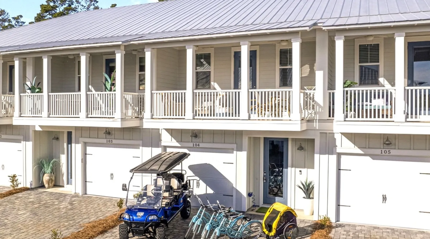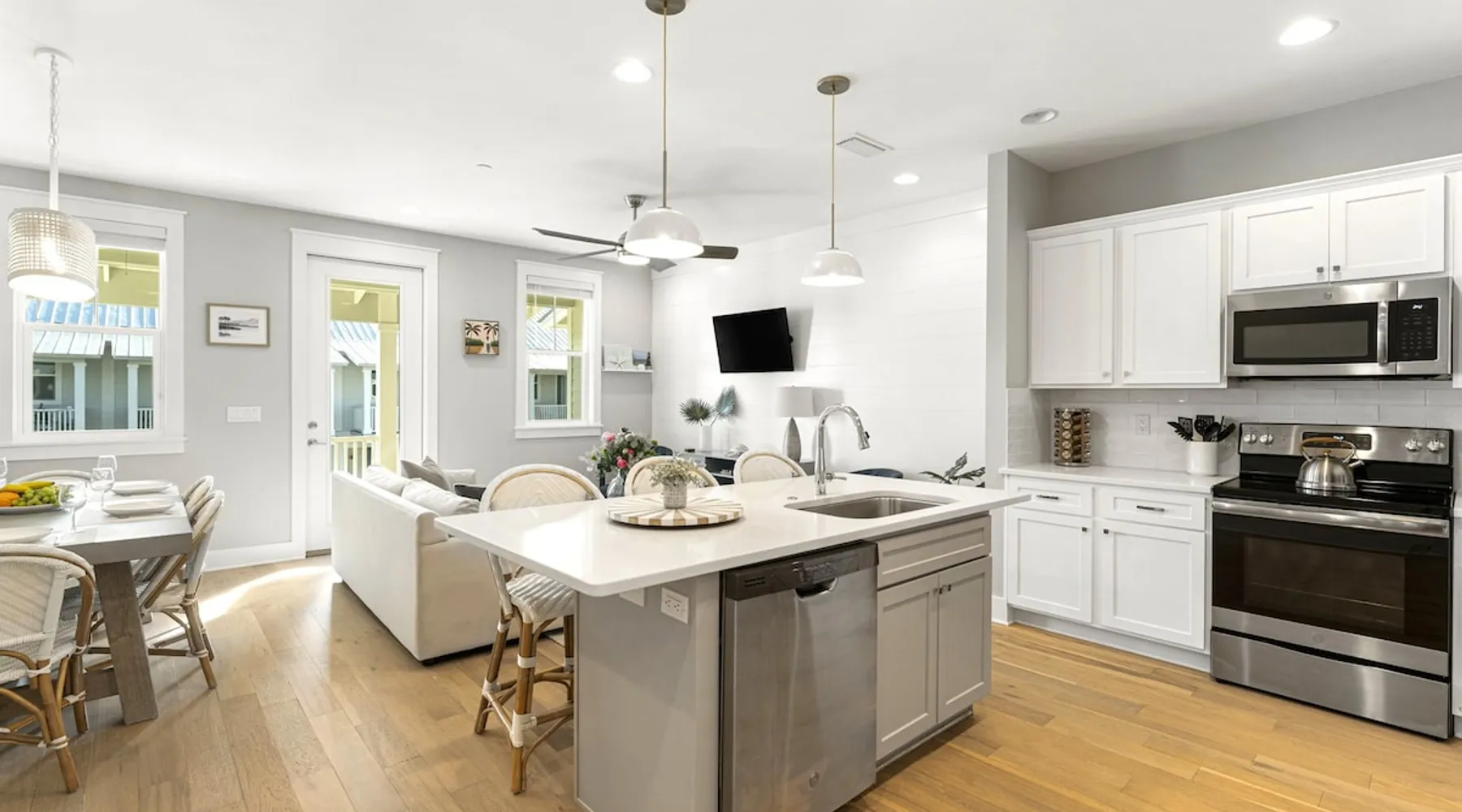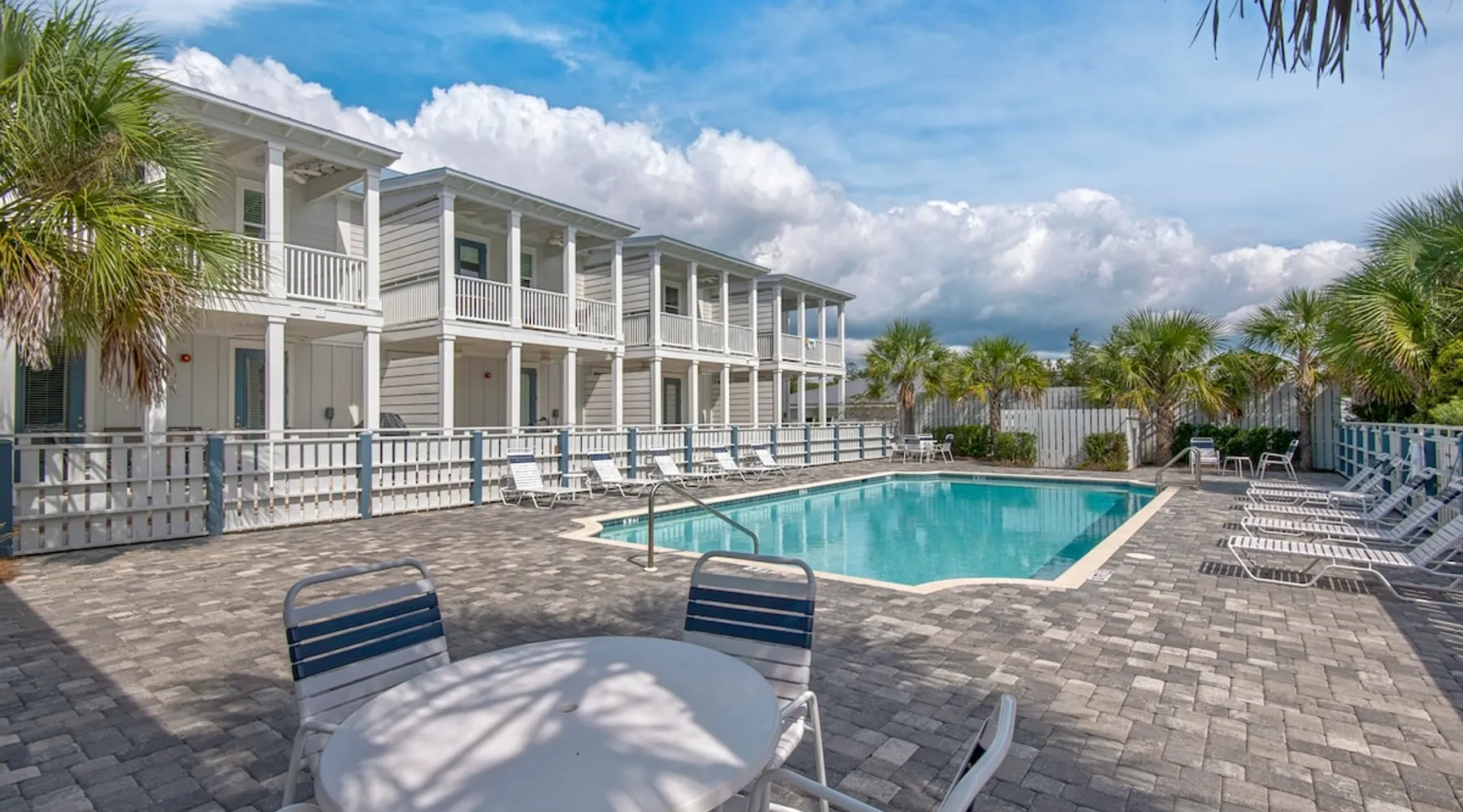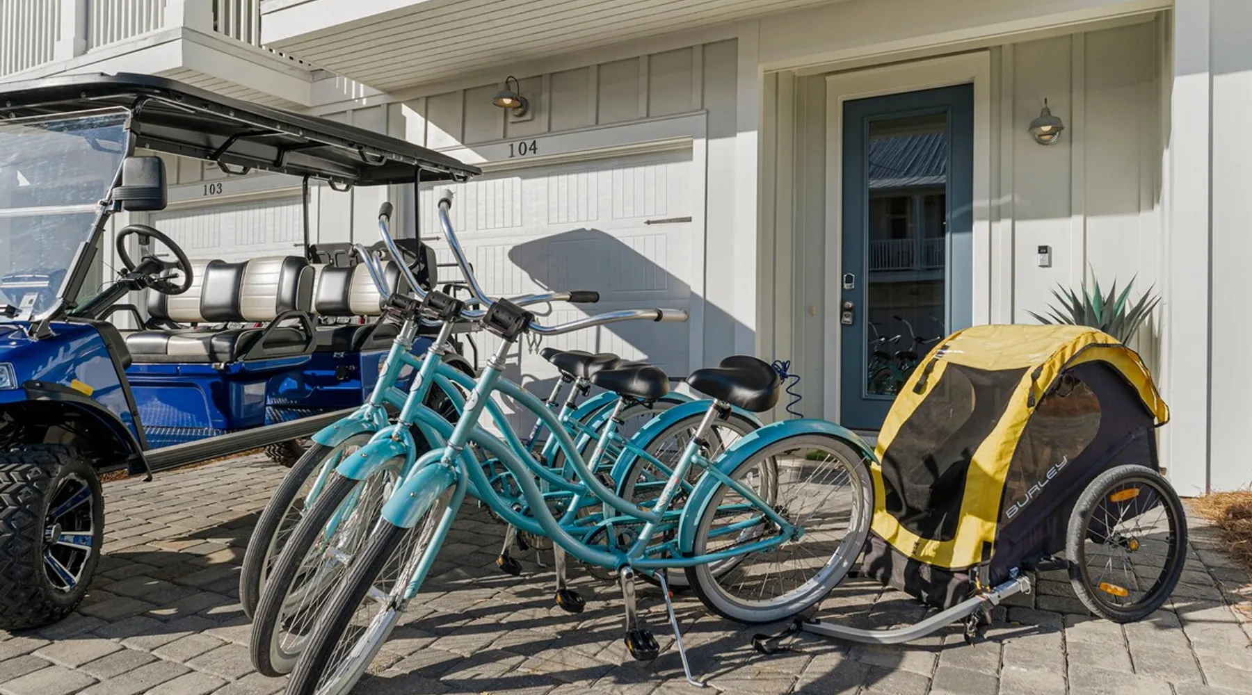 Welcome to Emerald Air, a beautifully decorated two-story townhome in the heart of 30A's Seagrove Beach. The best beaches and restaurants are at your doorstep, along with a community pool and beautiful Eastern Lake. 2 Min Bike or Golf Cart ride to Public Beach Access 2 Min Walk to Greenway Station shopping & dining 4 Min Drive to Deer Lake State Park It’s the perfect place to relax with the whole family and enjoy all Florida has to offer. Experience 30A's Best With Us & Learn More Below! The space KEY FEATURES: ☀ Community Pool 150 ft from your doorstep ☀ Complimentary rental golf cart supplied at property from local vendor ☀ Beach gear including beach chairs, a cooler, boogie boards & a beach umbrella ☀Two-minute walk to Greenway Station featuring coffee shops, restaurants & shopping ☀ Two-minute bike or Golf Cart ride to Eastern Lake Public Beach Access ☀ 3 bedrooms: 1 king, 2 queens, 1 bunk bed ☀ 2 full bathrooms + 1 half bath ☀ Full kitchen w/ stainless steel appliances ☀ Cozy living area w/ flat-screen Smart TV ☀ Private balcony w/dining table and outdoor furniture ☀ Private Patio w/grill + access to community pool ☀ Free parking ☀ In-unit washer & dryer ☀ Complimentary use of 4 adult bikes & 1 Burley Bee ☀ Access to outdoor playground and basketball court ☆☆ BEDROOMS + BATHROOMS ☆☆ This home is perfect for families or small groups, with three full bedrooms plus additional bunk beds built in under the stairwell. There are two bedrooms downstairs and a primary bedroom upstairs on the main level. The primary bedroom features a king-sized bed and a flat-screen Smart TV, large walk-in closet, and an ensuite bathroom with dual sinks and a walk-in shower. The remaining bedrooms are on the first floor and feature queen-sized beds and flat-screen Smart TVs. The additional bunk beds are available outside the two downstairs bedrooms. The bedrooms on the first level share access to the second full bathroom, complete with a shower/tub combo. ☆☆ KITCHEN & LOUNGE ☆☆ The kitchen, dining, and living areas sit on the second floor of the home. The kitchen is equipped with stainless steel appliances and stocked with everything you'll need for preparing meals during your stay. There’s also a dining table with seating for six. ☆☆ Upstairs Balcony ☆☆ The balcony is outfitted with outdoor furniture, perfect for morning coffee or evening happy hour drinks. There’s also a small breakfast table with seating for four if you prefer to dine al fresco. A private backyard patio with a gas grill. ☆☆ Downstairs Patio ☆☆ The private backyard patio features a gas grill and some outdoor seating. ☆☆ The Surrounding Area ☆☆ Eastern Lake Beach Access provides one of the best stretches of public beach in the area, and is a two minute bike ride from the property . There are also several restaurants within walking and cycling distance, including Turbo Coffee, The Salty Butcher, Pecan Jack's, Steamboat Grill 30A, Old Florida Fish House, Beachy Bean, Buddy's Seafood Market, the Perfect Pig, Cafe 30A, and Kahve & Cream. Greenway Station is located just two minutes-walk from the property and offers additional dining and shopping. ★☆ Book Today & Let Us Take Care Of You In Santa Rosa Beach! ☆★ Guest access ☀ Free parking is available in the driveway for up to two vehicles. ☀ Additional parking for a 3rd vehicle is usually available nearby- contact host for details ☀ Garage for storage of bicycles, beach gear and golf cart ☀ Keyless entry through electronic keypad Amenities in the unit include wifi, cable TV and apps, a washer and dryer, a gas grill, Keurig and drip coffee-makers, cookware, spices, a stove, an oven, a microwave, a toaster, a hair dryer, hangers, an iron & ironing board, yoga mats, keyless entry, and more. A free welcome box is provided containing coffee pods & tea bags, detergent & other essentials to get your stay off to a great start. Please note that pets are not allowed, and no smoking or vaping is permitted on the property. Follow us on IG #EmeraldAir30A