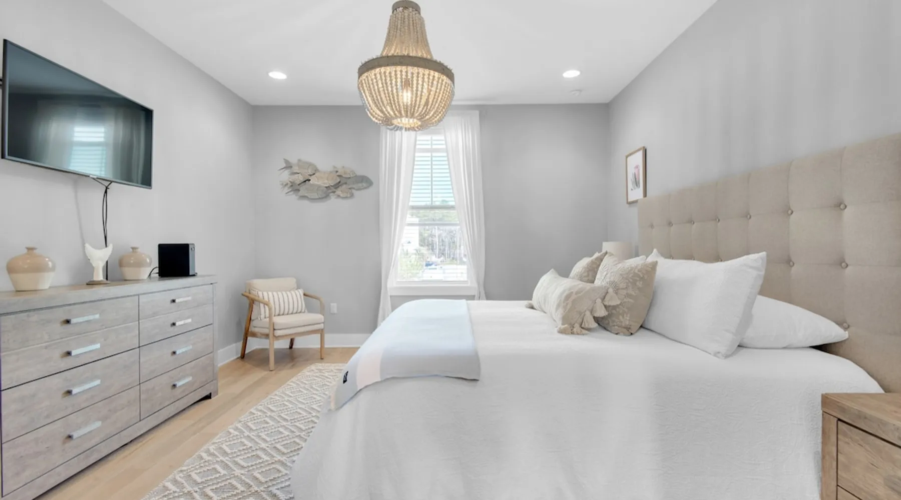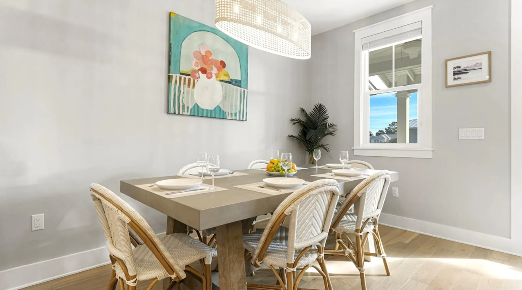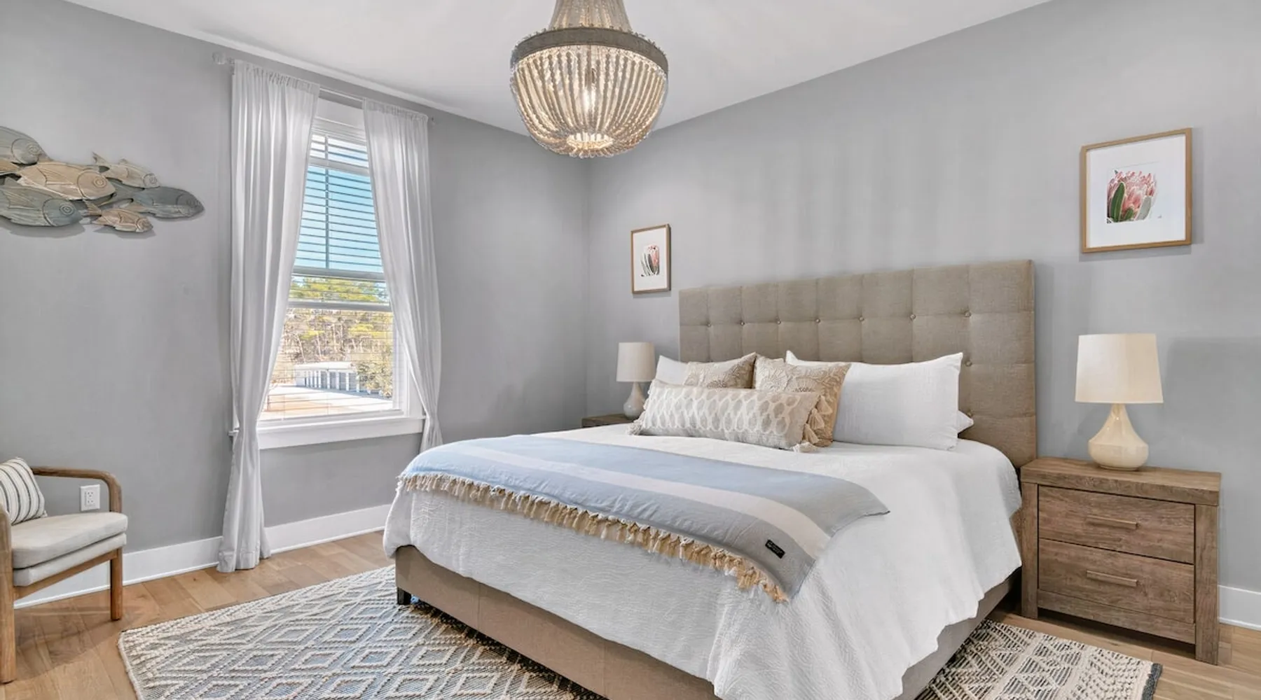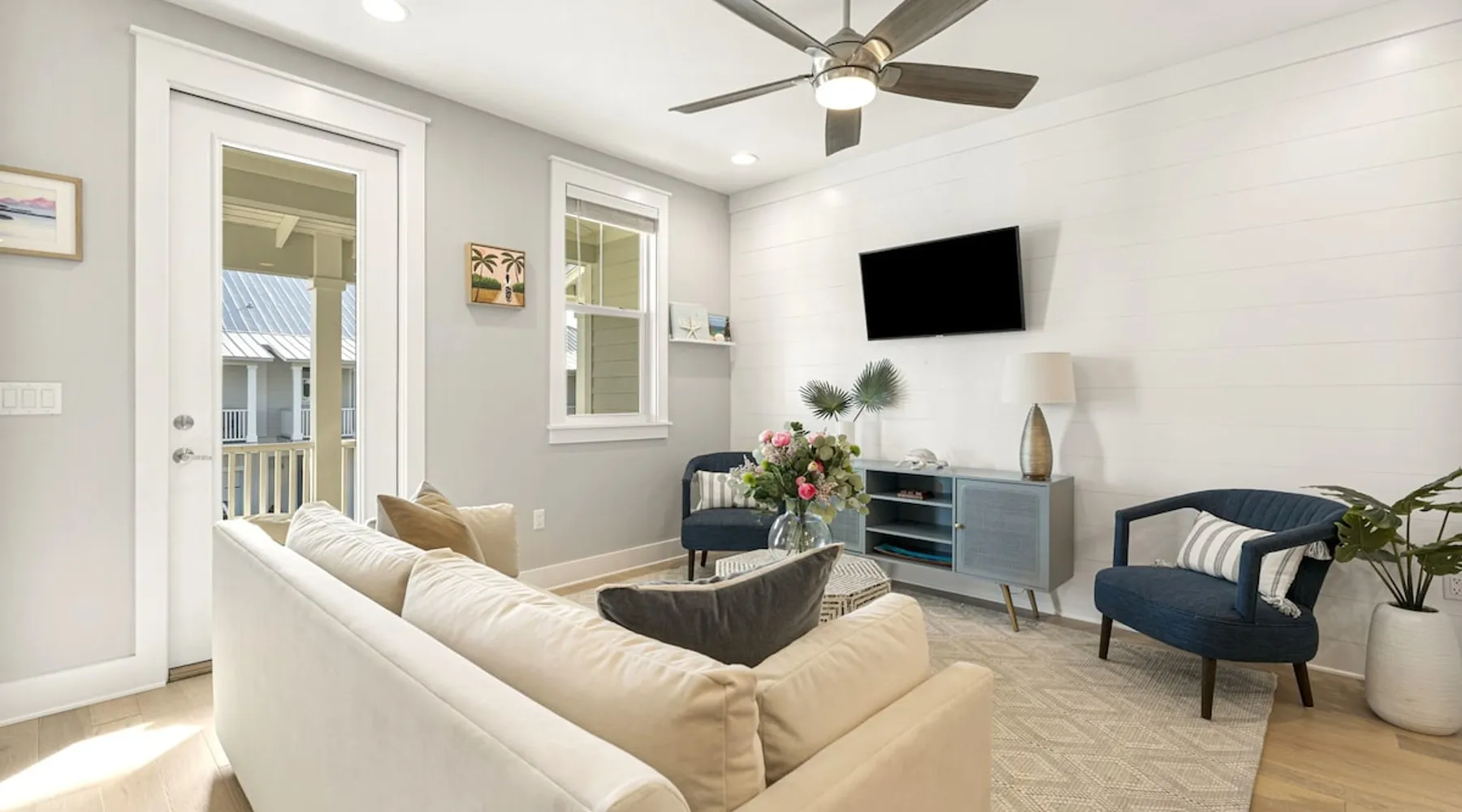 Welcome to Emerald Air, a beautifully decorated two-story townhome in the heart of 30A's Seagrove Beach. The best beaches and restaurants are at your doorstep, along with a community pool and beautiful Eastern Lake. 2 Min Bike or Golf Cart ride to Public Beach Access 2 Min Walk to Greenway Station shopping & dining 4 Min Drive to Deer Lake State Park It’s the perfect place to relax with the whole family and enjoy all Florida has to offer. Experience 30A's Best With Us & Learn More Below! The space KEY FEATURES: ☀ Community Pool 150 ft from your doorstep ☀ Complimentary rental golf cart supplied at property from local vendor ☀ Beach gear including beach chairs, a cooler, boogie boards & a beach umbrella ☀Two-minute walk to Greenway Station featuring coffee shops, restaurants & shopping ☀ Two-minute bike or Golf Cart ride to Eastern Lake Public Beach Access ☀ 3 bedrooms: 1 king, 2 queens, 1 bunk bed ☀ 2 full bathrooms + 1 half bath ☀ Full kitchen w/ stainless steel appliances ☀ Cozy living area w/ flat-screen Smart TV ☀ Private balcony w/dining table and outdoor furniture ☀ Private Patio w/grill + access to community pool ☀ Free parking ☀ In-unit washer & dryer ☀ Complimentary use of 4 adult bikes & 1 Burley Bee ☀ Access to outdoor playground and basketball court ☆☆ BEDROOMS + BATHROOMS ☆☆ This home is perfect for families or small groups, with three full bedrooms plus additional bunk beds built in under the stairwell. There are two bedrooms downstairs and a primary bedroom upstairs on the main level. The primary bedroom features a king-sized bed and a flat-screen Smart TV, large walk-in closet, and an ensuite bathroom with dual sinks and a walk-in shower. The remaining bedrooms are on the first floor and feature queen-sized beds and flat-screen Smart TVs. The additional bunk beds are available outside the two downstairs bedrooms. The bedrooms on the first level share access to the second full bathroom, complete with a shower/tub combo. ☆☆ KITCHEN & LOUNGE ☆☆ The kitchen, dining, and living areas sit on the second floor of the home. The kitchen is equipped with stainless steel appliances and stocked with everything you'll need for preparing meals during your stay. There’s also a dining table with seating for six. ☆☆ Upstairs Balcony ☆☆ The balcony is outfitted with outdoor furniture, perfect for morning coffee or evening happy hour drinks. There’s also a small breakfast table with seating for four if you prefer to dine al fresco. A private backyard patio with a gas grill. ☆☆ Downstairs Patio ☆☆ The private backyard patio features a gas grill and some outdoor seating. ☆☆ The Surrounding Area ☆☆ Eastern Lake Beach Access provides one of the best stretches of public beach in the area, and is a two minute bike ride from the property . There are also several restaurants within walking and cycling distance, including Turbo Coffee, The Salty Butcher, Pecan Jack's, Steamboat Grill 30A, Old Florida Fish House, Beachy Bean, Buddy's Seafood Market, the Perfect Pig, Cafe 30A, and Kahve & Cream. Greenway Station is located just two minutes-walk from the property and offers additional dining and shopping. ★☆ Book Today & Let Us Take Care Of You In Santa Rosa Beach! ☆★ Guest access ☀ Free parking is available in the driveway for up to two vehicles. ☀ Additional parking for a 3rd vehicle is usually available nearby- contact host for details ☀ Garage for storage of bicycles, beach gear and golf cart ☀ Keyless entry through electronic keypad Amenities in the unit include wifi, cable TV and apps, a washer and dryer, a gas grill, Keurig and drip coffee-makers, cookware, spices, a stove, an oven, a microwave, a toaster, a hair dryer, hangers, an iron & ironing board, yoga mats, keyless entry, and more. A free welcome box is provided containing coffee pods & tea bags, detergent & other essentials to get your stay off to a great start. Please note that pets are not allowed, and no smoking or vaping is permitted on the property. Follow us on IG #EmeraldAir30A