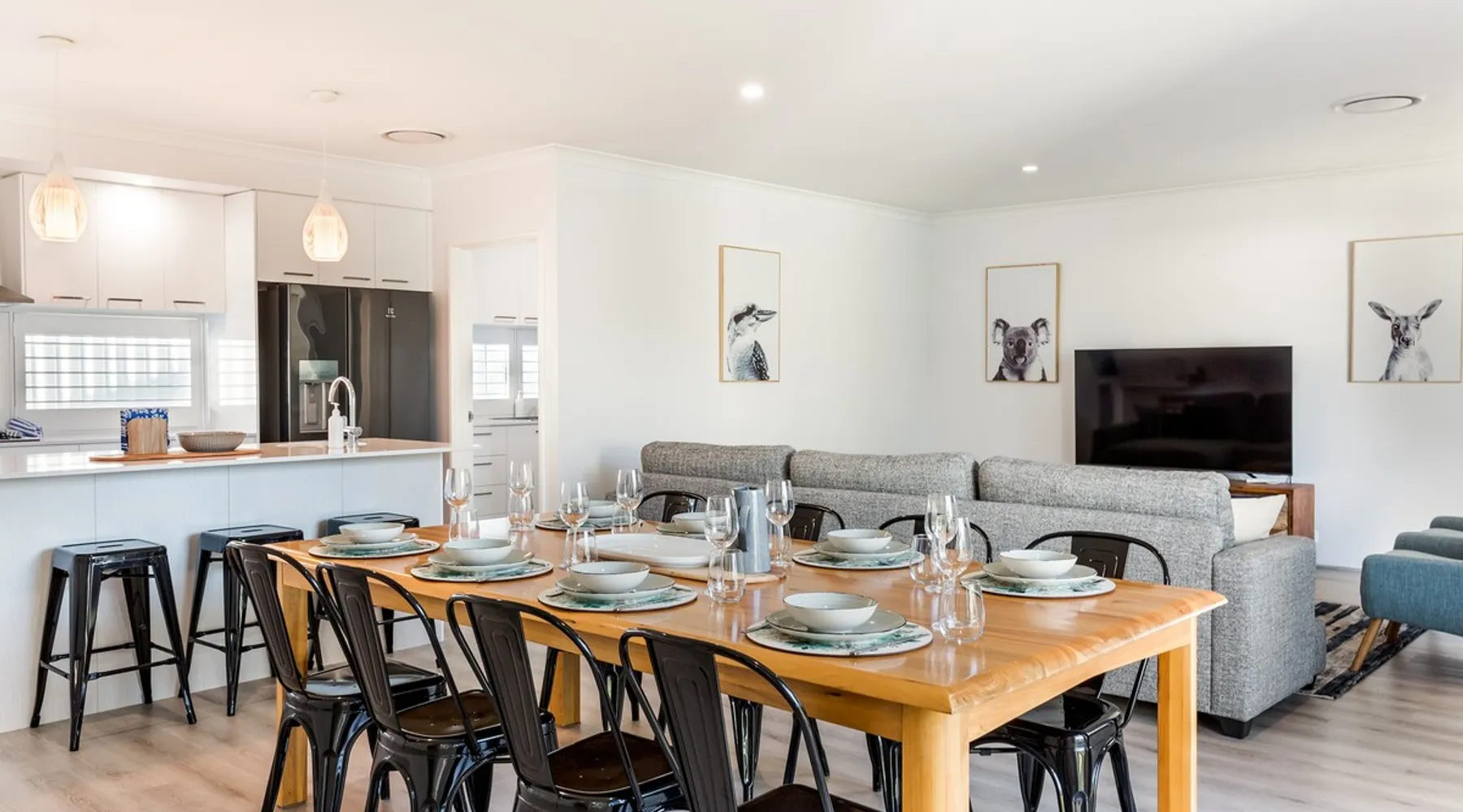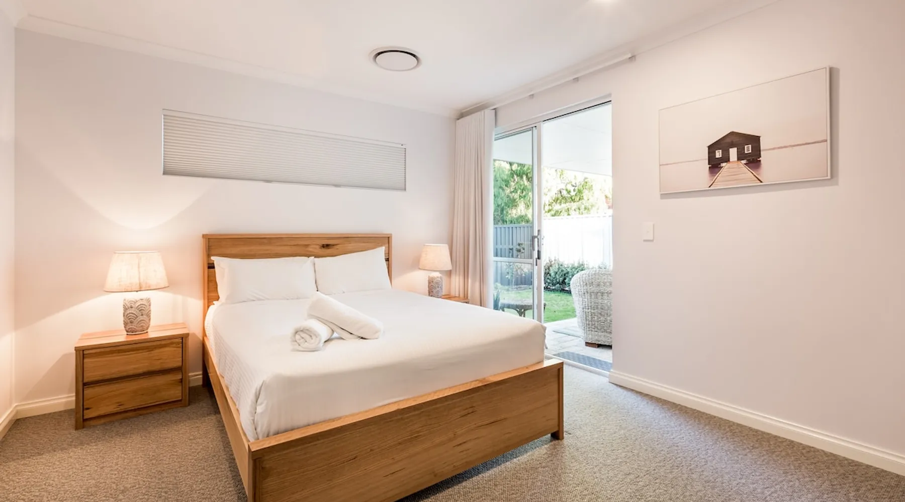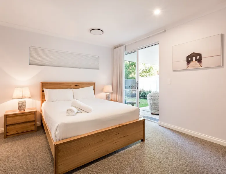 Escape to this stylish Hamptons-inspired home, perfectly located directly opposite the beach and just five minutes away from the infamous Busselton Jetty. Lofty and luxurious, relax in spacious living areas, cook family meals in the double-oven kitchen, or enjoy alfresco get-togethers year-round in the enclosed outdoor space. The upstairs balcony offers stunning ocean views, while nearby attractions and local cafes, restaurants, and breweries provide something for everyone. The space This beautiful beachside home welcomes you with its bright and airy Hamptons-inspired décor. The open-plan living area, featuring a cosy lounge with a gas fireplace, is perfect for relaxing after a day of exploration. The adjacent dining area and fully equipped kitchen, complete with a double oven, are ideal for creating family meals. Step outside to the enclosed alfresco area, where café-style blinds make outdoor dining comfortable in any season. The lush grassed garden offers a secure, serene space to unwind or for the kids to play. The primary bedroom is located on the ground floor, offering a peaceful retreat with a queen bed and garden access—perfect for enjoying a quiet morning coffee. It also features a walk-in robe and an ensuite with double sinks and showers. Upstairs, you’ll find a second queen bedroom and a room with two king-single beds, both thoughtfully designed for comfort including wardrobe space and black-out blinds. They share the main bathroom with a large bathtub. This upper level boasts a secondary TV room, a great space to relax with a movie, and a furnished balcony that showcases ocean views. With ducted air-conditioning throughout, a convenient laundry room with a third toilet, high-speed Wi-Fi, and onsite parking, every detail has been considered for a comfortable stay. Guest access During your stay, you and your group will have the entire house to yourselves. Please make yourselves at home! Other things to note Please read and respect the house rules. This is very much appreciated, thank you! Before your arrival, we will also share a house guide that contains instructions on how to access the property, use certain appliances, and anything else you may need to know. School Leavers: We do not accept any school leavers bookings at any time of the year. Exclusive Escapes wishes you an enjoyable vacation but we also ask for you to show consideration to the neighbours with respect to noise, especially after the hours of 10pm. Council regulations allow holiday homes to be rented for accommodation purposes only and not as a function venue e.g. for a party or wedding. Functions and gatherings are not permitted and, if evidenced will be closed down immediately. Please be aware that noise complaints are a breach of our terms and conditions and may result in forfeit of your bond and/or possible immediate eviction from the property. Registration Details STRA6280F8C7SALN