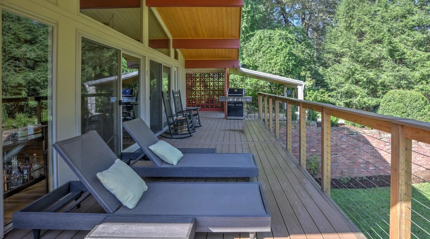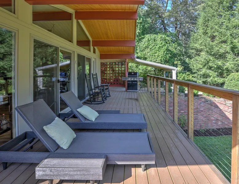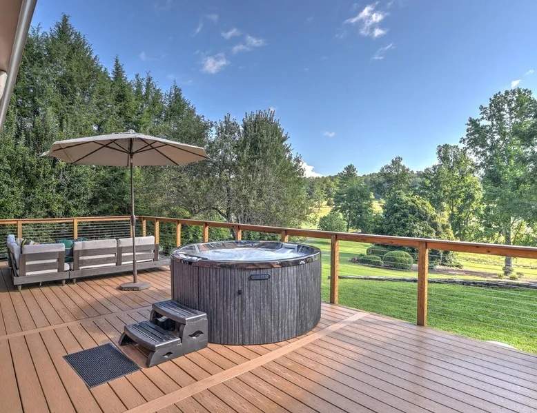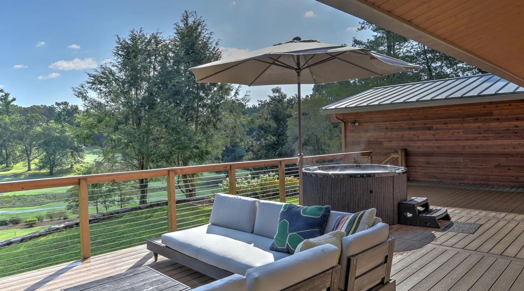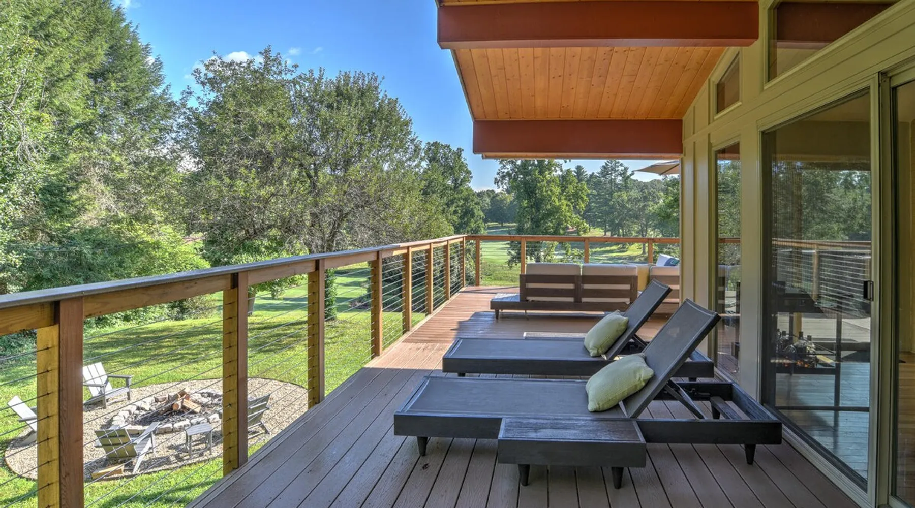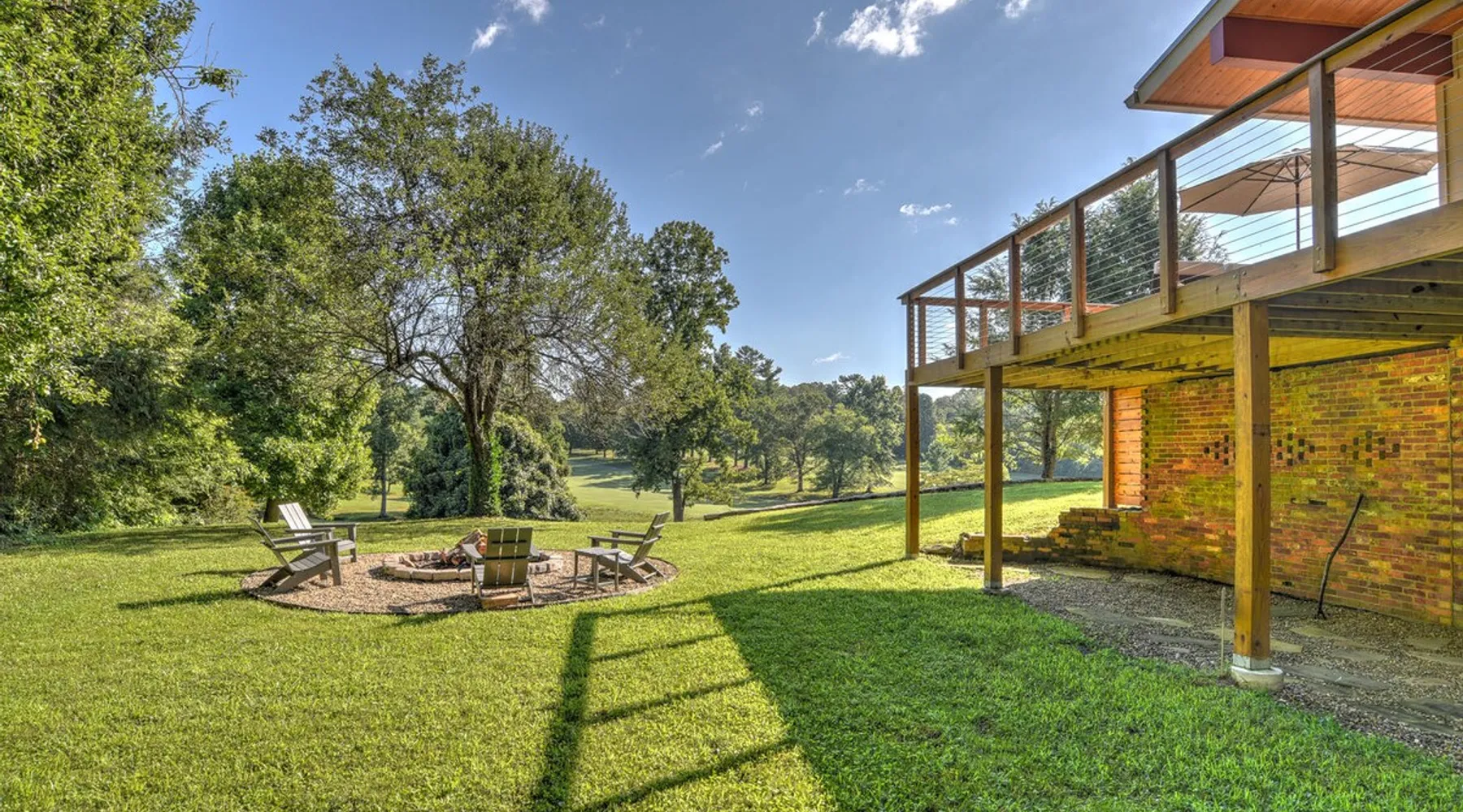Come experience Fairway Harmony! You will be engulfed in the peacefulness of this spacious Mid Century Modern home the minute you step inside. You are welcomed by a large wall of windows, with a picturesque view of the golf course, and located close enough to pop into downtown Hendersonville to check out the unique boutiques, restaurants, and street scenes. There is a lot of fun nearby, from breweries and wineries to hiking trails! The space Featuring two living spaces, equipped with comfortable seating, gas fireplaces and large screen tv's for streaming your favorite shows. The kitchen is well equipped for all your culinary needs including stainless steel appliances and a coffee area. Choose between sitting at the bar or at the lovely dining table look outside to the large deck. There are two cozy guest rooms available, with lovely décor to choose from, a king bed and a queen bed. There is plenty of comfortable seating on the expansive deck to take in the mountain air. Walk out to the fire pit after a fun filled day of exploring and roast some marshmallows at the fire pit or enjoy a relaxing soak in the hot tub! Close to these popular locations: Dupont Waterfalls - 21 minutes Jeter Mountain Farm - 14 minutes Flat Rock Playhouse - 8 minutes Ecusta Trail - 6 minutes Fairview Harmony is professionally managed by Yonder, a local team with years of experience and passion for providing the ultimate guest experience. Book your stay today! Home Truths: - Sleeps in beds: 4 - Max Occupancy: 4 - Yonder provides linens for all beds; other occupancy will require guests to provide their own linens - Internet Speed: Download - 30 Mbps, Upload - 20.5 Mbps - Cleaning fee: $250 Yonder openly shares & clearly posts our Cleaning Fees in a manner of full disclosure, as we think this is the most honest and forthright approach with respect to our guests. Our Cleaning Fees are backed by our Clean Guarantee, which reflects the highest level of standards, pristine environments for our guests, and a level of cleanliness that surpasses any other vacation homes; we literally guarantee it! Quiet Policy: Please note that the home/estate property is located in a very quiet community. Parties, loud noise, and unruly behavior are absolutely prohibited, and guests are expected to respect the neighbors and the peace this mountain retreat area affords. Pets: Many of our guests have allergies, so we have maintained a pet-free environment so they can enjoy their vacation without the potential of an allergic reaction. If you have a pet, we can recommend some alternatives nearby. Early Check In and/or Late Check Out may be possible, depending on cleaning schedules and other reservations. If it is possible, there may be an additional fee that would be determined based on the time that you wish to check in or out and the seasonal rates. Please inquire for details regarding payment, the cancellation policy, military discounts, and trip insurance. Exclusive Special: When you book Fairway Harmony you will receive a special code for discounted tickets to the Biltmore Estate! Contact us for more info. Home Truths: Come experience Fairway Harmony! You will be engulfed in the peacefulness of this spacious Mid Century Modern home the minute you step inside. You are welcomed by a large wall of windows, with a picturesque view of the golf course. And located close enough to pop into downtown Hendersonville to check out the unique boutiques, restaurants, and street scenes. There is a lot of fun nearby, from breweries and wineries to hiking trails! Featuring two living spaces, equipped with comfortable seating, gas fireplaces, and large screen TVs for streaming your favorite shows. The kitchen is well equipped for all your culinary needs, including stainless steel appliances and a coffee area. Choose between sitting at the bar or at the lovely dining table, and look outside to the large deck. There are two cozy guest rooms available, with lovely décor to choose from, a king bed, and a queen bed. There is plenty of comfortable seating on the expansive deck to take in the mountain air. Walk out to the fire pit after a fun-filled day of exploring and roast some marshmallows at the fire pit or enjoy a relaxing soak in the hot tub! Book your stay today! Exclusive Yonder Special: When you book Fairway Harmony you will receive a special code for discounted tickets to the Biltmore Estate! Contact Yonder for more info. Home Truths: - No reservations over 30 days accepted without pre-approval. Please contact our Guest Experience Team - Sleeps in beds: 4 - Max Occupancy: 4 - Yonder provides linens for all beds; other occupancy will require guests providing their own linens - Internet Speed: Download - 30 Mbps Upload - 20.5 Mbps Yonder openly shares our Cleaning Fees in a manner of full disclosure, as we think this is the most honest and forthright approach with respect to our guests. Our Cleaning Fees are backed by our Clean Guarantee, which reflects the highest level of standards, pristine environments for our guests, and a level of clean that surpasses any other vacation homes; we literally guarantee it! Quiet Policy: Please note that the home/estate property is located in a very quiet community. Parties, loud noise and unruly behavior are absolutely prohibited, and guests are expected to respect the neighbors and the peace this mountain retreat area affords. Pets: Many of our guests have allergies so we have maintained a pet-free environment so they can enjoy their vacation without the potential of an allergic reaction. If you have a pet we can recommend some alternatives nearby. Early Check In and/or Late Check Out may be possible, depending on cleaning schedules and other reservations. If it is possible, there may be an additional fee that would be determined based on the time that you wish to check in or out and the seasonal rates. Please inquire for details regarding payment, the cancellation policy, military discounts, and trip insurance. - 