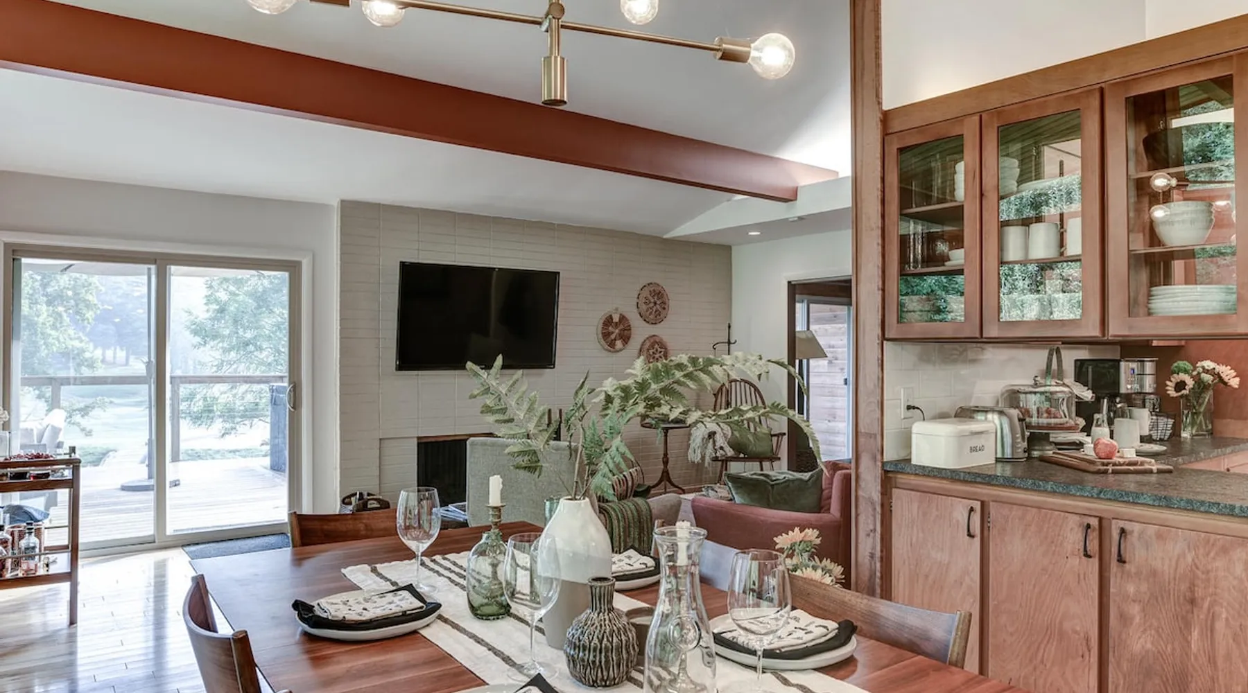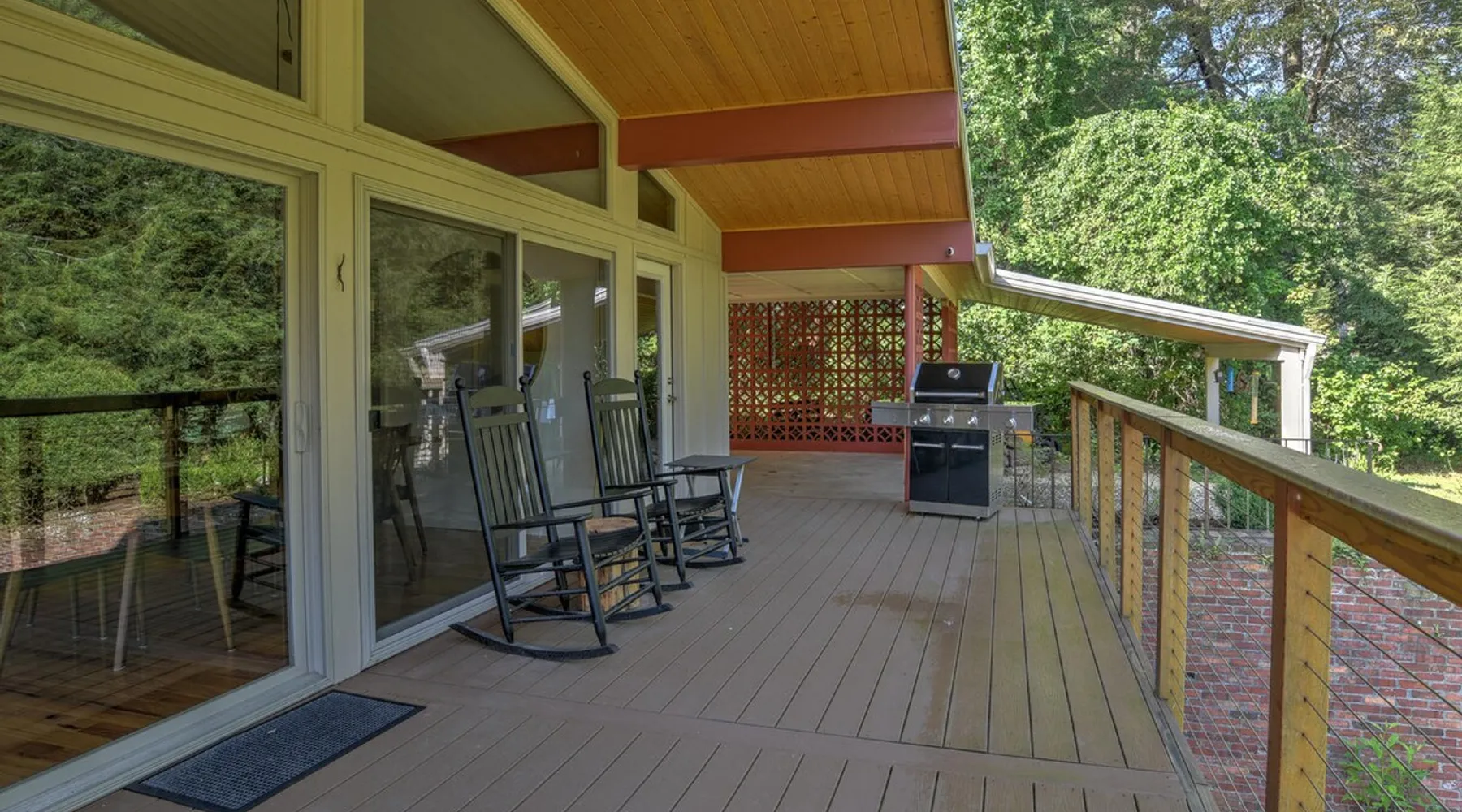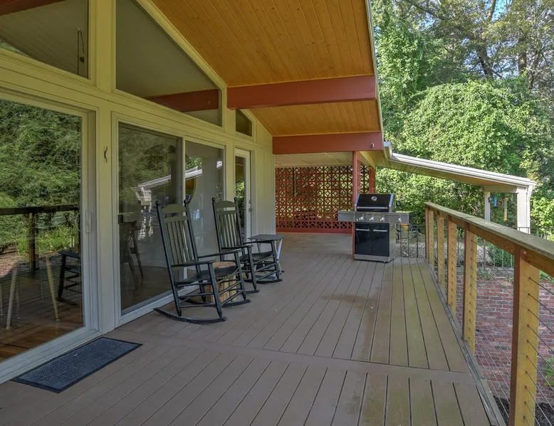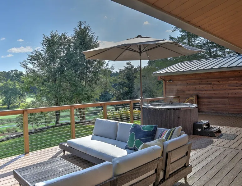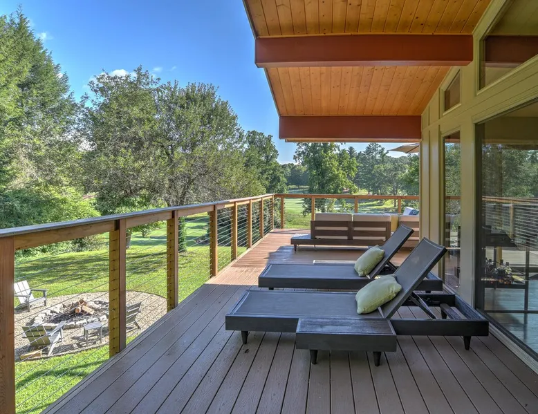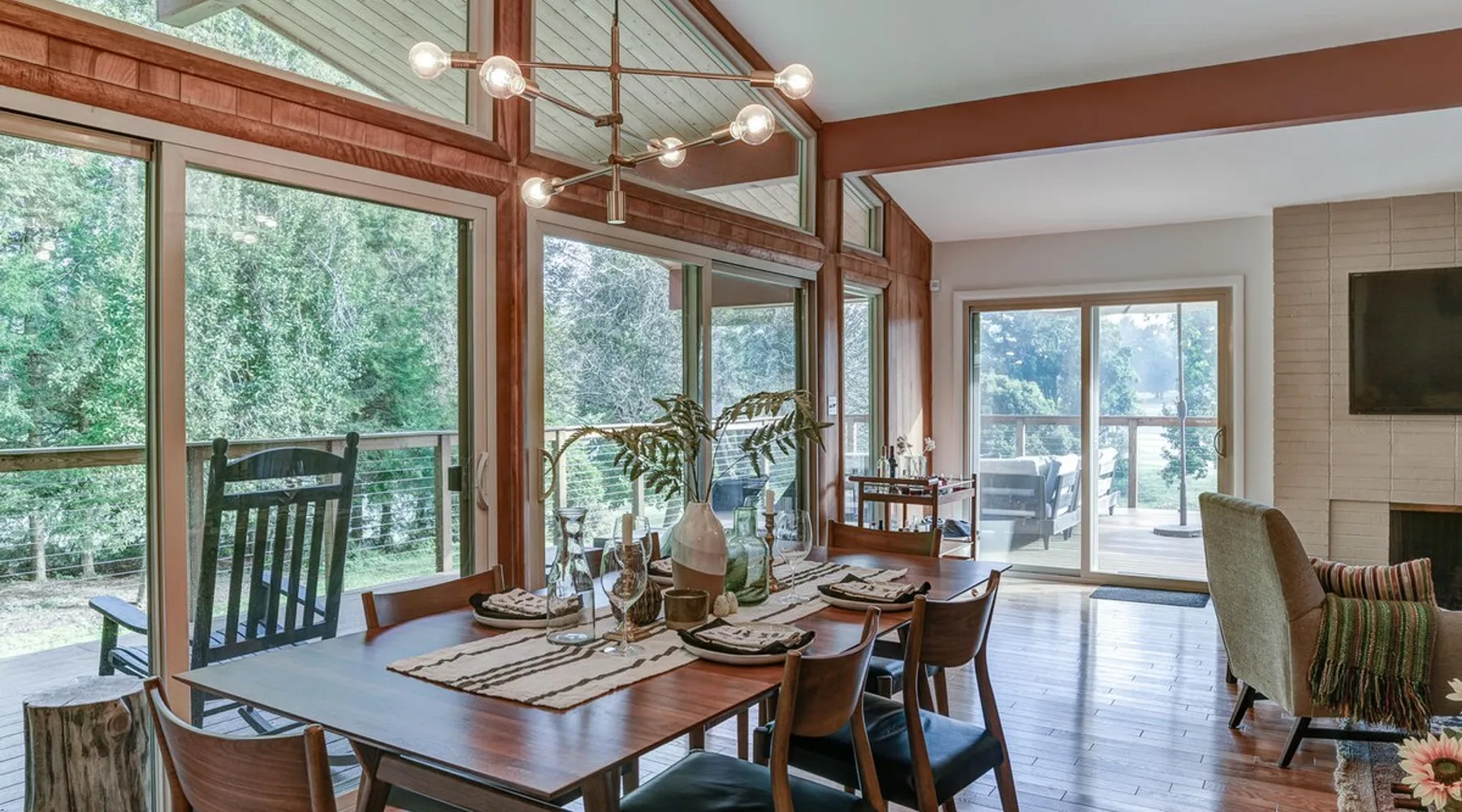 Come experience Fairway Harmony! You will be engulfed in the peacefulness of this spacious Mid Century Modern home the minute you step inside. You are welcomed by a large wall of windows, with a picturesque view of the golf course, and located close enough to pop into downtown Hendersonville to check out the unique boutiques, restaurants, and street scenes. There is a lot of fun nearby, from breweries and wineries to hiking trails! The space Featuring two living spaces, equipped with comfortable seating, gas fireplaces and large screen tv's for streaming your favorite shows. The kitchen is well equipped for all your culinary needs including stainless steel appliances and a coffee area. Choose between sitting at the bar or at the lovely dining table look outside to the large deck. There are two cozy guest rooms available, with lovely décor to choose from, a king bed and a queen bed. There is plenty of comfortable seating on the expansive deck to take in the mountain air. Walk out to the fire pit after a fun filled day of exploring and roast some marshmallows at the fire pit or enjoy a relaxing soak in the hot tub! Close to these popular locations: Dupont Waterfalls - 21 minutes Jeter Mountain Farm - 14 minutes Flat Rock Playhouse - 8 minutes Ecusta Trail - 6 minutes Fairview Harmony is professionally managed by Yonder, a local team with years of experience and passion for providing the ultimate guest experience. Book your stay today! Home Truths: - Sleeps in beds: 4 - Max Occupancy: 4 - Yonder provides linens for all beds; other occupancy will require guests to provide their own linens - Internet Speed: Download - 30 Mbps, Upload - 20.5 Mbps - Cleaning fee: $250 Yonder openly shares & clearly posts our Cleaning Fees in a manner of full disclosure, as we think this is the most honest and forthright approach with respect to our guests. Our Cleaning Fees are backed by our Clean Guarantee, which reflects the highest level of standards, pristine environments for our guests, and a level of cleanliness that surpasses any other vacation homes; we literally guarantee it! Quiet Policy: Please note that the home/estate property is located in a very quiet community. Parties, loud noise, and unruly behavior are absolutely prohibited, and guests are expected to respect the neighbors and the peace this mountain retreat area affords. Pets: Many of our guests have allergies, so we have maintained a pet-free environment so they can enjoy their vacation without the potential of an allergic reaction. If you have a pet, we can recommend some alternatives nearby. Early Check In and/or Late Check Out may be possible, depending on cleaning schedules and other reservations. If it is possible, there may be an additional fee that would be determined based on the time that you wish to check in or out and the seasonal rates. Please inquire for details regarding payment, the cancellation policy, military discounts, and trip insurance. Exclusive Special: When you book Fairway Harmony you will receive a special code for discounted tickets to the Biltmore Estate! Contact us for more info. Home Truths: Come experience Fairway Harmony! You will be engulfed in the peacefulness of this spacious Mid Century Modern home the minute you step inside. You are welcomed by a large wall of windows, with a picturesque view of the golf course. And located close enough to pop into downtown Hendersonville to check out the unique boutiques, restaurants, and street scenes. There is a lot of fun nearby, from breweries and wineries to hiking trails! Featuring two living spaces, equipped with comfortable seating, gas fireplaces, and large screen TVs for streaming your favorite shows. The kitchen is well equipped for all your culinary needs, including stainless steel appliances and a coffee area. Choose between sitting at the bar or at the lovely dining table, and look outside to the large deck. There are two cozy guest rooms available, with lovely décor to choose from, a king bed, and a queen bed. There is plenty of comfortable seating on the expansive deck to take in the mountain air. Walk out to the fire pit after a fun-filled day of exploring and roast some marshmallows at the fire pit or enjoy a relaxing soak in the hot tub! Book your stay today! Exclusive Yonder Special: When you book Fairway Harmony you will receive a special code for discounted tickets to the Biltmore Estate! Contact Yonder for more info. Home Truths: - No reservations over 30 days accepted without pre-approval. Please contact our Guest Experience Team - Sleeps in beds: 4 - Max Occupancy: 4 - Yonder provides linens for all beds; other occupancy will require guests providing their own linens - Internet Speed: Download - 30 Mbps Upload - 20.5 Mbps Yonder openly shares our Cleaning Fees in a manner of full disclosure, as we think this is the most honest and forthright approach with respect to our guests. Our Cleaning Fees are backed by our Clean Guarantee, which reflects the highest level of standards, pristine environments for our guests, and a level of clean that surpasses any other vacation homes; we literally guarantee it! Quiet Policy: Please note that the home/estate property is located in a very quiet community. Parties, loud noise and unruly behavior are absolutely prohibited, and guests are expected to respect the neighbors and the peace this mountain retreat area affords. Pets: Many of our guests have allergies so we have maintained a pet-free environment so they can enjoy their vacation without the potential of an allergic reaction. If you have a pet we can recommend some alternatives nearby. Early Check In and/or Late Check Out may be possible, depending on cleaning schedules and other reservations. If it is possible, there may be an additional fee that would be determined based on the time that you wish to check in or out and the seasonal rates. Please inquire for details regarding payment, the cancellation policy, military discounts, and trip insurance. - 