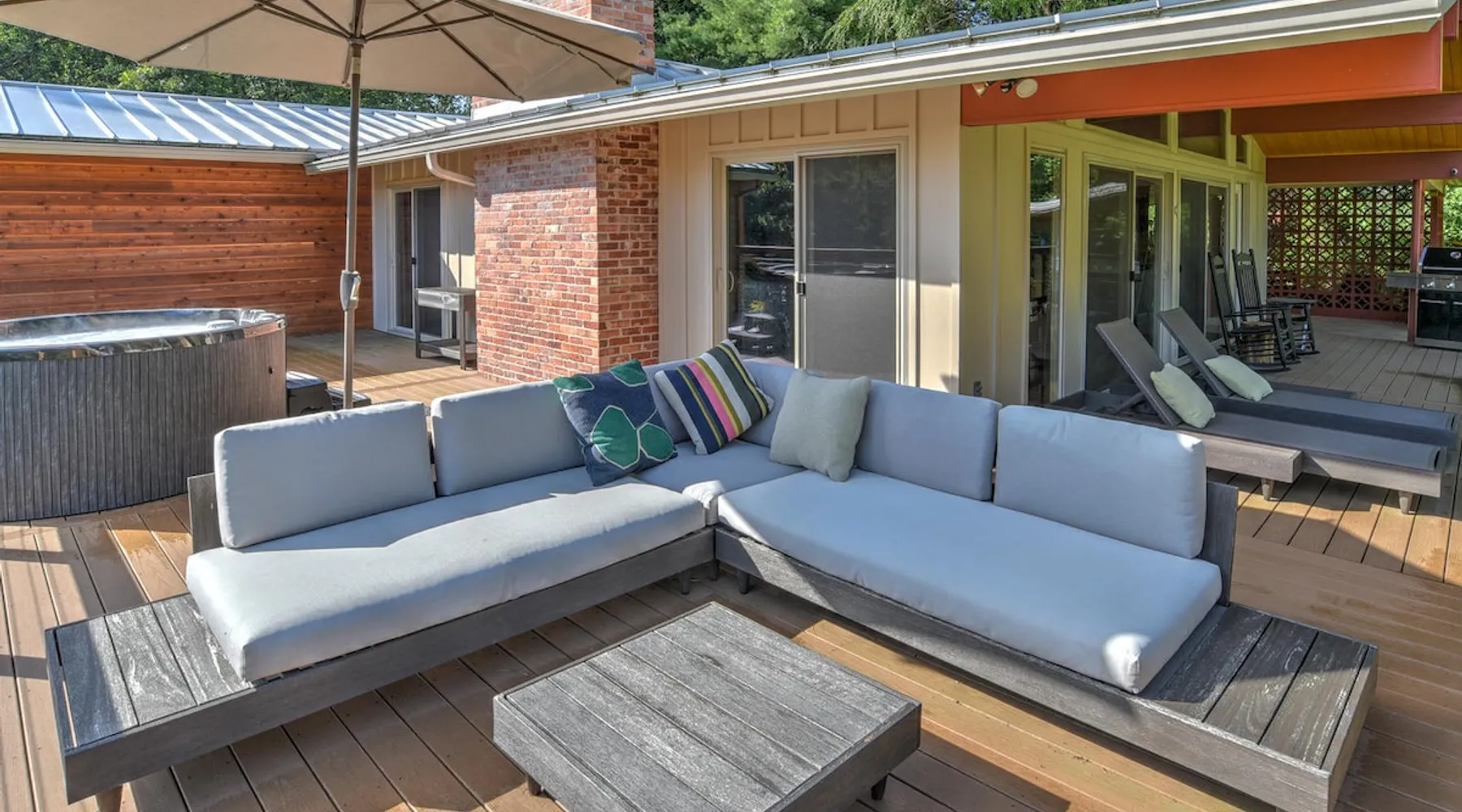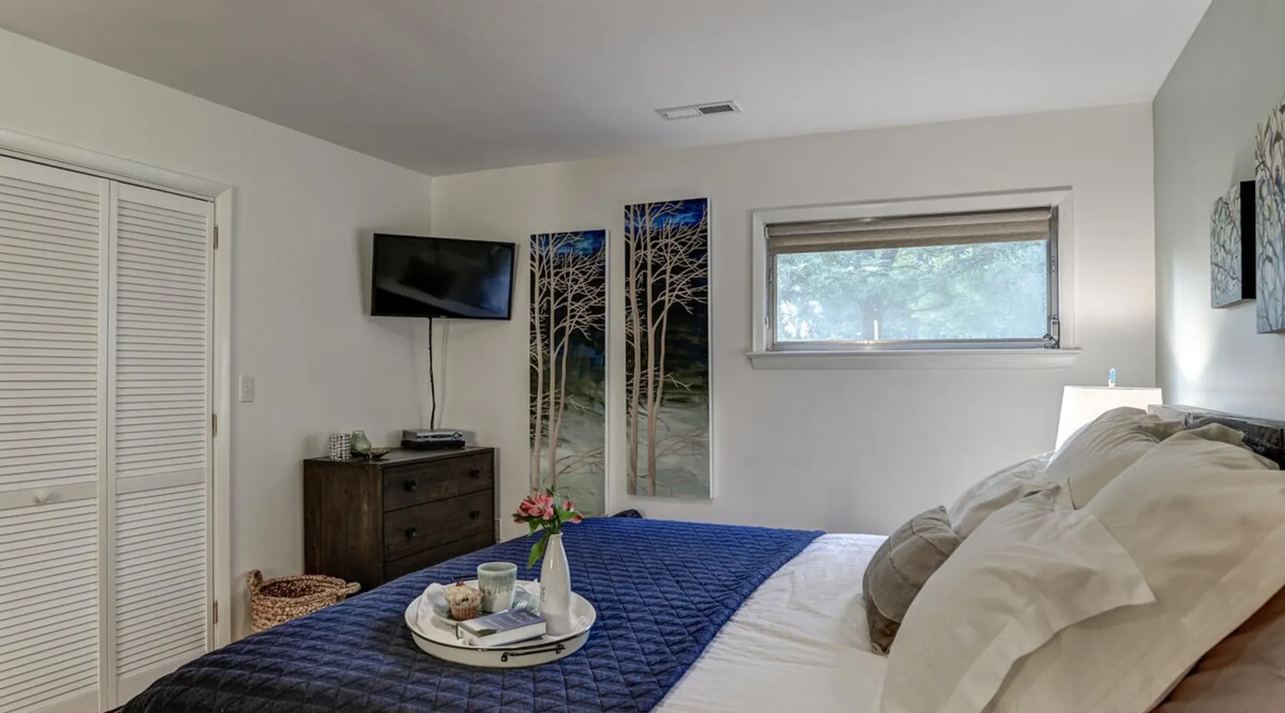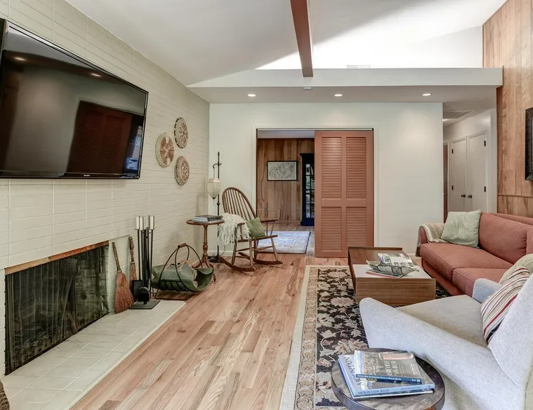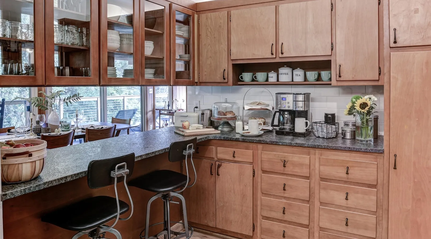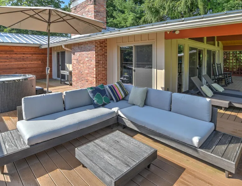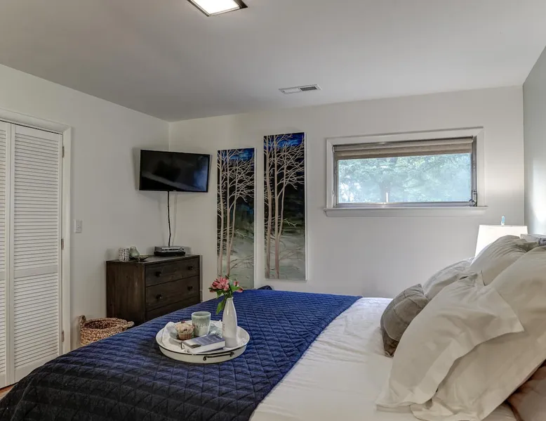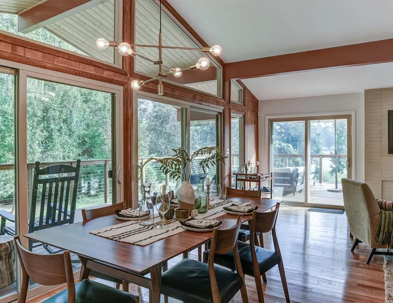 Come experience Fairway Harmony! You will be engulfed in the peacefulness of this spacious Mid Century Modern home the minute you step inside. You are welcomed by a large wall of windows, with a picturesque view of the golf course, and located close enough to pop into downtown Hendersonville to check out the unique boutiques, restaurants, and street scenes. There is a lot of fun nearby, from breweries and wineries to hiking trails! The space Featuring two living spaces, equipped with comfortable seating, gas fireplaces and large screen tv's for streaming your favorite shows. The kitchen is well equipped for all your culinary needs including stainless steel appliances and a coffee area. Choose between sitting at the bar or at the lovely dining table look outside to the large deck. There are two cozy guest rooms available, with lovely décor to choose from, a king bed and a queen bed. There is plenty of comfortable seating on the expansive deck to take in the mountain air. Walk out to the fire pit after a fun filled day of exploring and roast some marshmallows at the fire pit or enjoy a relaxing soak in the hot tub! Close to these popular locations: Dupont Waterfalls - 21 minutes Jeter Mountain Farm - 14 minutes Flat Rock Playhouse - 8 minutes Ecusta Trail - 6 minutes Fairview Harmony is professionally managed by Yonder, a local team with years of experience and passion for providing the ultimate guest experience. Book your stay today! Home Truths: - Sleeps in beds: 4 - Max Occupancy: 4 - Yonder provides linens for all beds; other occupancy will require guests to provide their own linens - Internet Speed: Download - 30 Mbps, Upload - 20.5 Mbps - Cleaning fee: $250 Yonder openly shares & clearly posts our Cleaning Fees in a manner of full disclosure, as we think this is the most honest and forthright approach with respect to our guests. Our Cleaning Fees are backed by our Clean Guarantee, which reflects the highest level of standards, pristine environments for our guests, and a level of cleanliness that surpasses any other vacation homes; we literally guarantee it! Quiet Policy: Please note that the home/estate property is located in a very quiet community. Parties, loud noise, and unruly behavior are absolutely prohibited, and guests are expected to respect the neighbors and the peace this mountain retreat area affords. Pets: Many of our guests have allergies, so we have maintained a pet-free environment so they can enjoy their vacation without the potential of an allergic reaction. If you have a pet, we can recommend some alternatives nearby. Early Check In and/or Late Check Out may be possible, depending on cleaning schedules and other reservations. If it is possible, there may be an additional fee that would be determined based on the time that you wish to check in or out and the seasonal rates. Please inquire for details regarding payment, the cancellation policy, military discounts, and trip insurance. Exclusive Special: When you book Fairway Harmony you will receive a special code for discounted tickets to the Biltmore Estate! Contact us for more info. Home Truths: Come experience Fairway Harmony! You will be engulfed in the peacefulness of this spacious Mid Century Modern home the minute you step inside. You are welcomed by a large wall of windows, with a picturesque view of the golf course. And located close enough to pop into downtown Hendersonville to check out the unique boutiques, restaurants, and street scenes. There is a lot of fun nearby, from breweries and wineries to hiking trails! Featuring two living spaces, equipped with comfortable seating, gas fireplaces, and large screen TVs for streaming your favorite shows. The kitchen is well equipped for all your culinary needs, including stainless steel appliances and a coffee area. Choose between sitting at the bar or at the lovely dining table, and look outside to the large deck. There are two cozy guest rooms available, with lovely décor to choose from, a king bed, and a queen bed. There is plenty of comfortable seating on the expansive deck to take in the mountain air. Walk out to the fire pit after a fun-filled day of exploring and roast some marshmallows at the fire pit or enjoy a relaxing soak in the hot tub! Book your stay today! Exclusive Yonder Special: When you book Fairway Harmony you will receive a special code for discounted tickets to the Biltmore Estate! Contact Yonder for more info. Home Truths: - No reservations over 30 days accepted without pre-approval. Please contact our Guest Experience Team - Sleeps in beds: 4 - Max Occupancy: 4 - Yonder provides linens for all beds; other occupancy will require guests providing their own linens - Internet Speed: Download - 30 Mbps Upload - 20.5 Mbps Yonder openly shares our Cleaning Fees in a manner of full disclosure, as we think this is the most honest and forthright approach with respect to our guests. Our Cleaning Fees are backed by our Clean Guarantee, which reflects the highest level of standards, pristine environments for our guests, and a level of clean that surpasses any other vacation homes; we literally guarantee it! Quiet Policy: Please note that the home/estate property is located in a very quiet community. Parties, loud noise and unruly behavior are absolutely prohibited, and guests are expected to respect the neighbors and the peace this mountain retreat area affords. Pets: Many of our guests have allergies so we have maintained a pet-free environment so they can enjoy their vacation without the potential of an allergic reaction. If you have a pet we can recommend some alternatives nearby. Early Check In and/or Late Check Out may be possible, depending on cleaning schedules and other reservations. If it is possible, there may be an additional fee that would be determined based on the time that you wish to check in or out and the seasonal rates. Please inquire for details regarding payment, the cancellation policy, military discounts, and trip insurance. - 