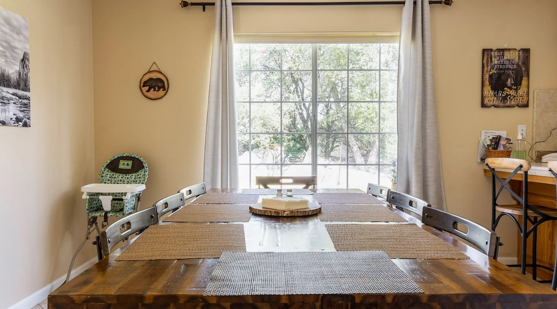 Cosy mountain home with 3 bedrooms (one king size bed, one queen size bed, and two twins (trundle) plus baby crib in master bedroom) and two bathrooms. There is a TV in every bedroom and the living room. This vacation home has the perfect location: Only 30 min from the South gate of Yosemite and the Giant Sequoias, 12 min from Bass Lake and 5 from downtown Oakhurst. Badger Pass is a great ski resort nearby. The closest golf course is 15 minutes away and is called River Creek Golf Course. The space This beautiful home is located in one of the most popular locations. The house is on a hill, surrounded by nature. This is the perfect family vacation or weekend get-a-way location. This home is close to shopping and dining opportunities in Oakhurst but at the same time very quiet. Everything you need to feel as comfortable as possible is here, including heating and air conditioning, in-unit laundry machines, gas grill, 4 TVs, 2 (1-seater) kayaks, toys and wireless internet. This is an area with a high fire risk, open fire or smoking is not allowed inside or outside. Guest access You will be able to use the entire house. Other things to note No keys to lose or to return! This property provides secure, keyless entry with an August Smart Lock. You can lock and unlock the door with your smartphone, using a unique virtual key or personal entry code issued to you for the duration of your stay. You will receive a message after booking with the code, and we will send it to you again shortly before check in.