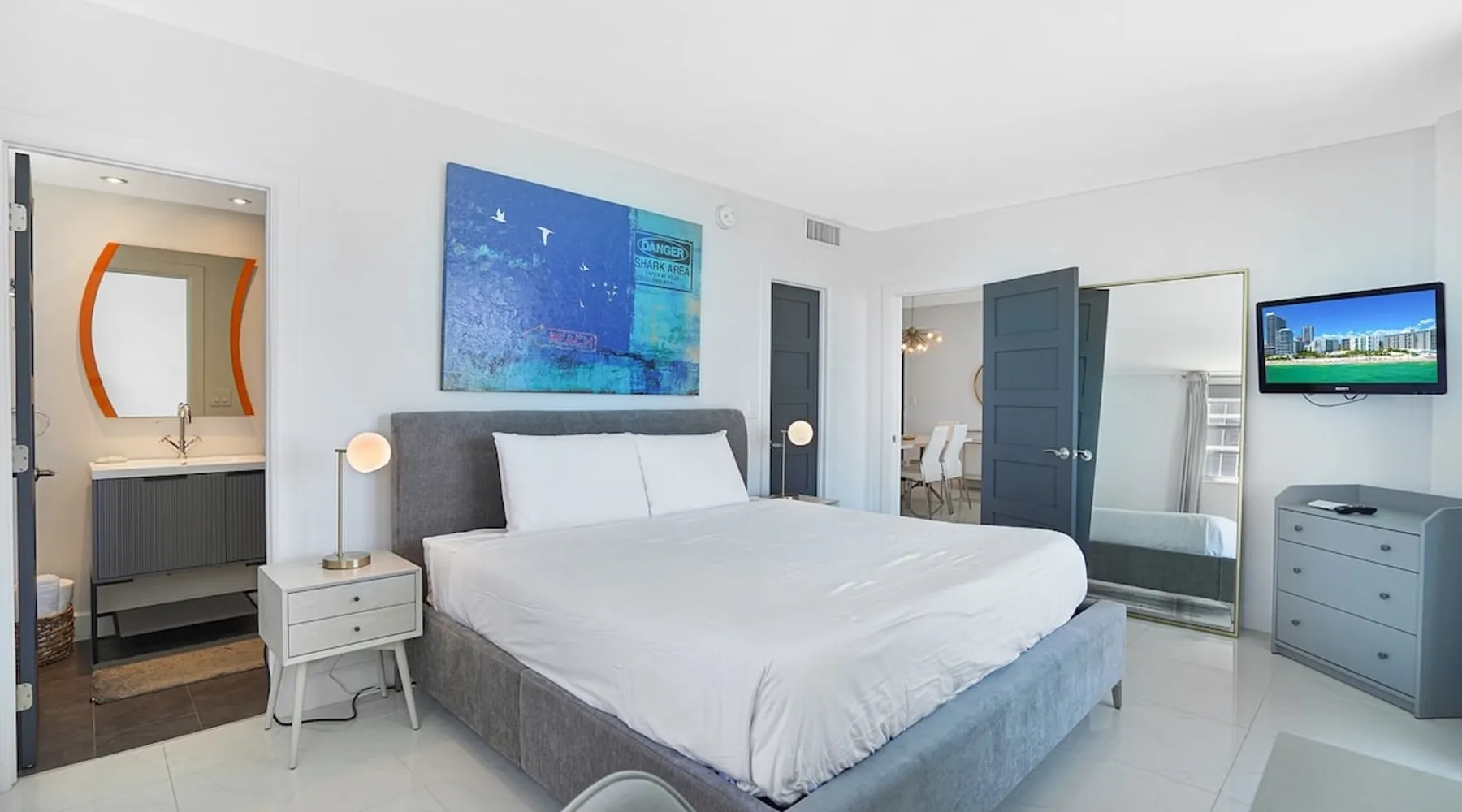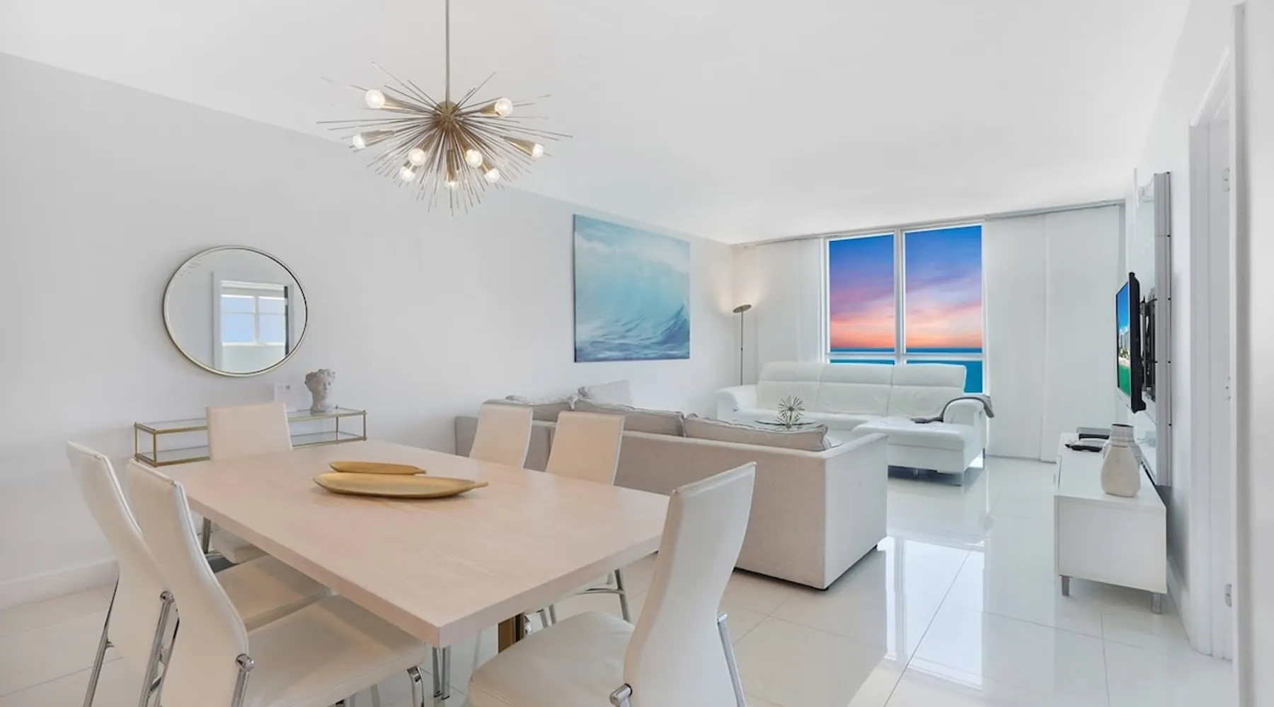 Wake up to breathtaking ocean views in this spacious 2-bedroom condo at The Tides Resort. Unlike neighboring properties, you’ll enjoy a hassle-free stay with no resort fees and attentive local hosts nearby. With a full kitchen, inviting living area, and balcony views, this beachside retreat is perfect for families or friends looking for comfort, convenience, and an authentic South Florida escape. The space – 2 bedrooms, 2 bathrooms, 1162 sq ft – Bedroom 1: Queen bed – Bedroom 2: King bed – Living room with sofabed for extra guests – Spacious living area with TV + cable – Fully equipped kitchen with appliances & cookware – Dining space for group meals – Balcony with ocean views – Bathrooms stocked with towels & essentials – Wi-Fi + workspace available – Shared laundry room on each floor ($2.50/load) Guest access – Full private condo with wristband access – Pool and fitness center included – Smart lock for easy entry – Shared laundry available on each floor Other things to note – FOBs required: $30 each (ages 14+) – Parking fees: $100/week, $125 for 2 weeks, $175 for 4 weeks; temporary passes available ($20–40) – Packages accepted by building ($7 each) – Each unit includes: 2 foldable beach chairs, 1 umbrella, towels, and a Graco pack ’n play – Reclining beach chairs available for rent directly from beach service – Property uses noise monitoring (no indoor cameras) – Quiet hours per city ordinance FAQ ➤ Is parking included? Parking is paid separately: $100/week or $175 for 4 weeks. ➤ What beach gear is provided? Two foldable beach chairs, an umbrella, and towels are included. ➤ Is laundry in the unit? No, but each floor has a shared laundry room with full-size washer/dryer ($2.50 per load).