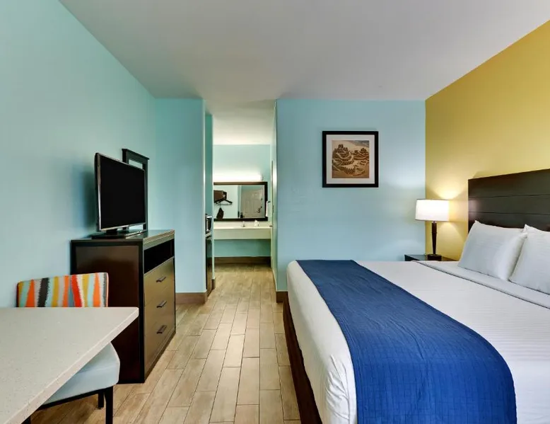 Nestled between the Gulf of Mexico and Corpus Christi Bay, this Port Aransas motel offers rooms with free WiFi and cable TV. Guests can enjoy the outdoor pool located on site. All rooms at Island Hotel Port Aransas offer air-conditioning and private bathrooms. Some units have a seating area and a kitchenette. Guests can play a game of billiards in the game room at Port Aransas Island Hotel. This hotel is less than 15 minutes’ walk to the beach. The University of Texas Marine Science Institute is 3.1 mi from the property. Newport Dunes Golf Course is 3 minutes’ drive away. This suite features a flat-screen TV with cable channels. The bathroom comes with a hairdryer and free toiletries. There is also a seating area with a sofa and a kitchenette equipped with a stove, microwave and fridge.