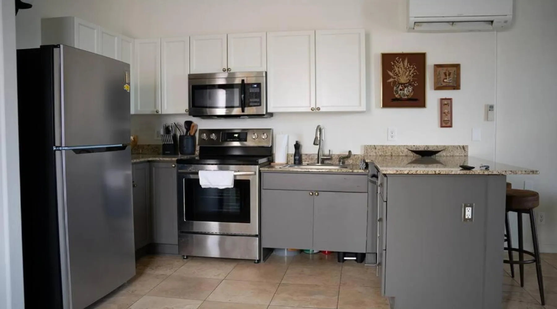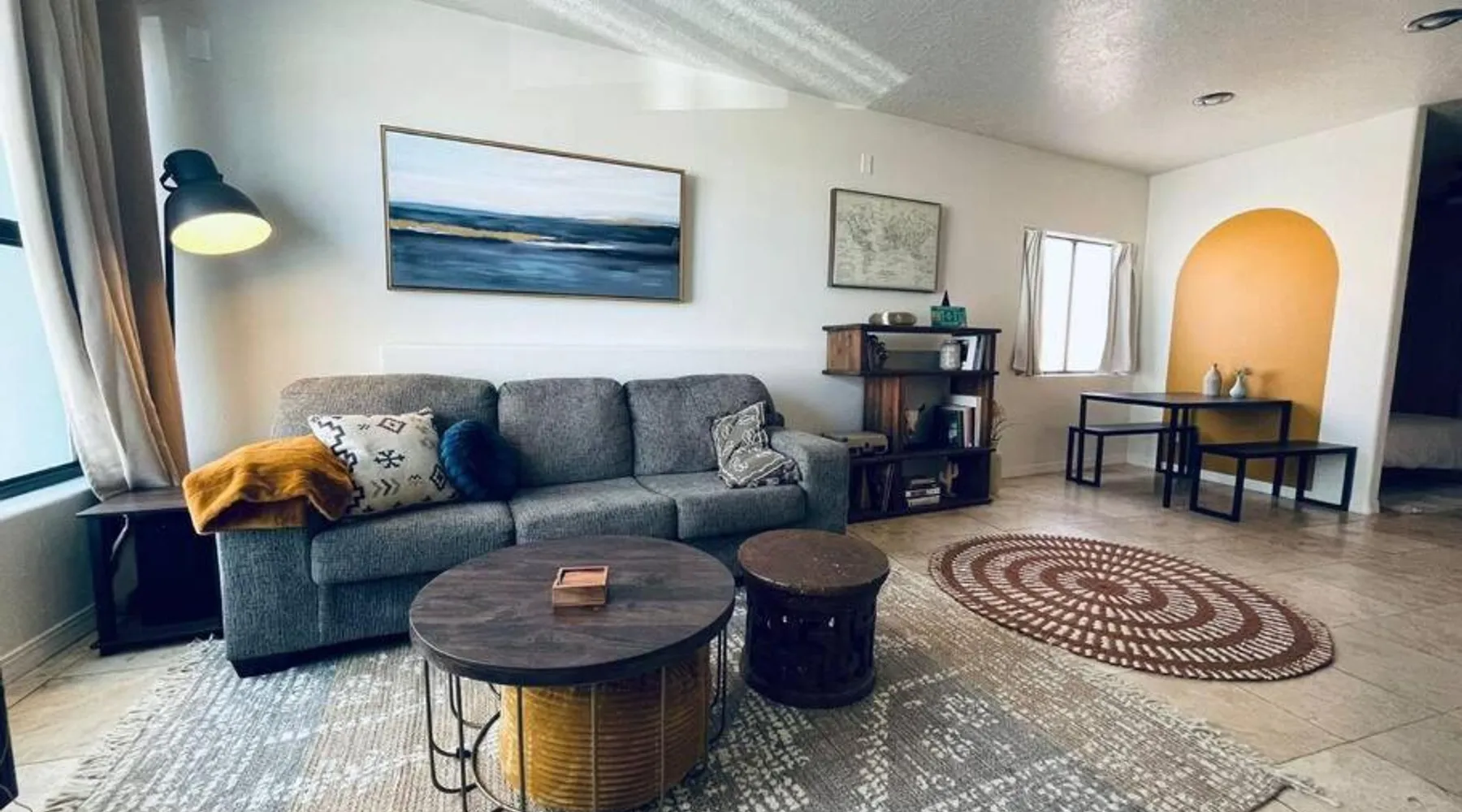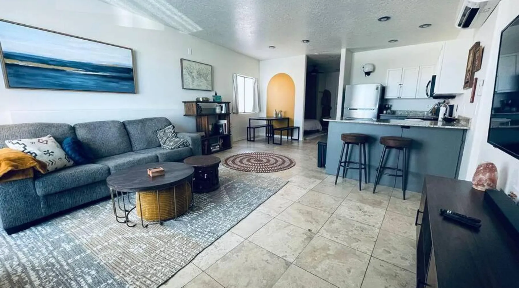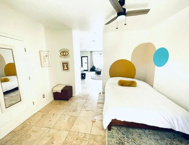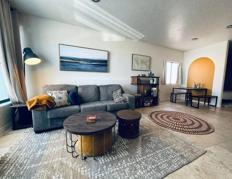 Spacious Accommodations: Pet Friendly! Private retreat in Nob Hill offers a spacious villa in Albuquerque. The property includes one bedroom and one bathroom, providing ample space for guests. Modern Amenities: Guests enjoy free WiFi, air-conditioning, a washing machine, and a fully equipped kitchen with a refrigerator, microwave, dishwasher, oven, and stovetop. Additional amenities include a TV and a tea and coffee maker. Convenient Location: Located 1.9 mi from Albuquerque International Sunport, the villa is close to attractions such as University Stadium (3.1 mi), Greater Albuquerque Chamber of Commerce (3.1 mi), and ABQ BioPark - Zoo (4.3 mi). Free on-site private parking is available. The well-fitted kitchen has a stovetop, a refrigerator, a dishwasher and an oven. The spacious villa offers air conditioning, a washing machine, a tea and coffee maker, tumble dryer and a flat-screen TV. The unit has 1 bed.