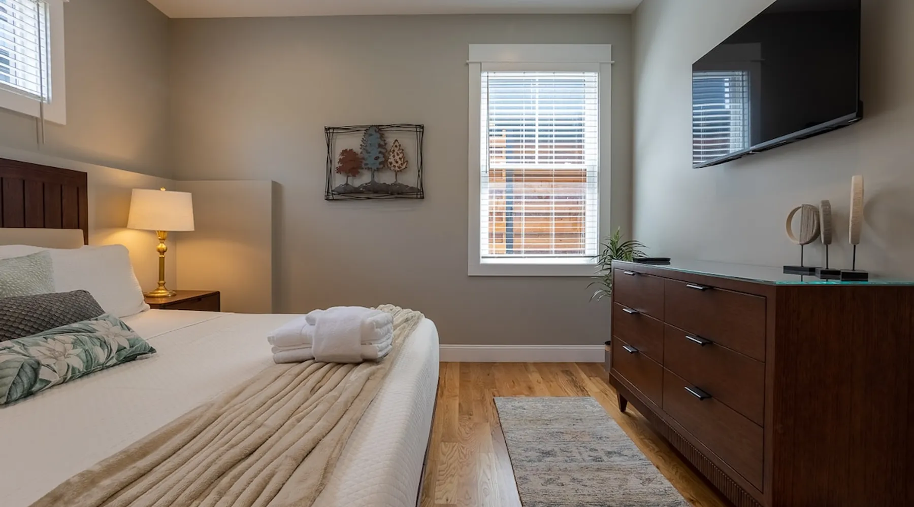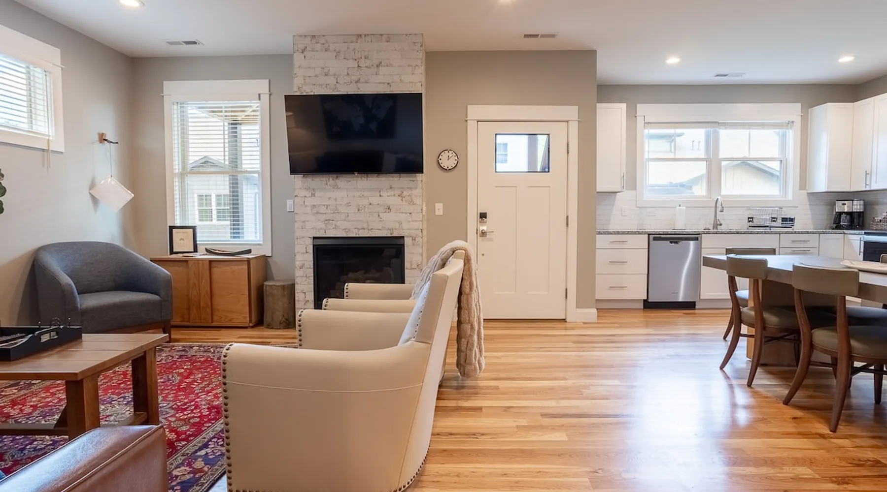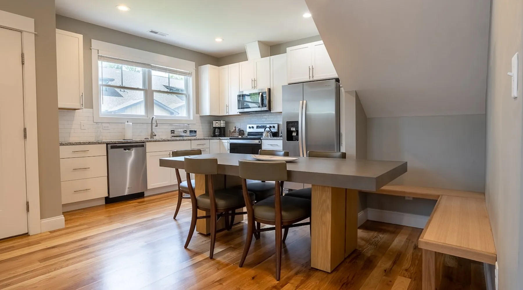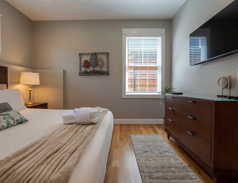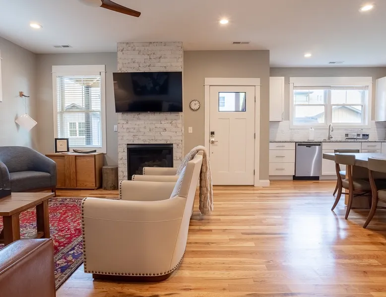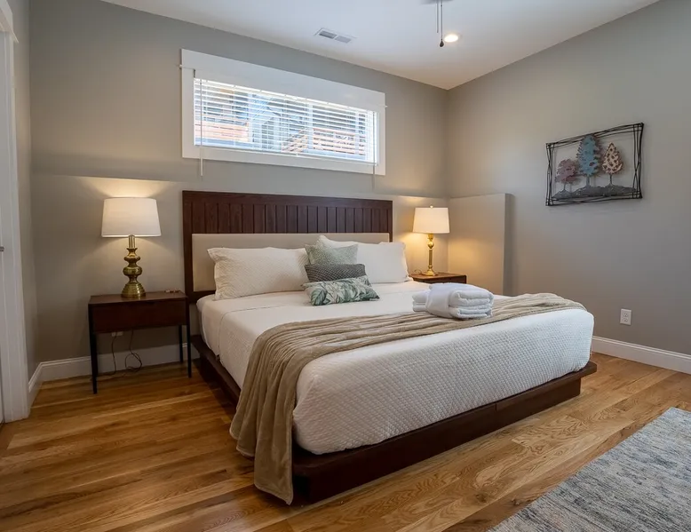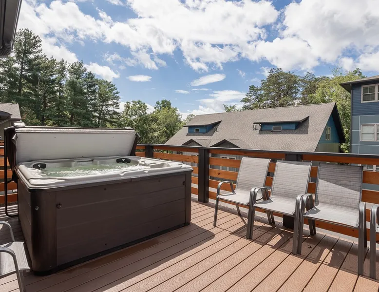 Come experience Little Sadie! This beautiful property is one of ten beautifully constructed villas located in the enclave of The Fold at Reynolds Mountain. This newly built property will have you amazed by the attention to detail, the décor and finishes exude luxury! You'll be walking distance to restaurants, shops, and more! And, located just a 10 minute drive from downtown Asheville, near hiking, biking and kayaking, this will be the perfect home away from home for your time in the area! The space Upon entering the main level, you will be welcomed by an abundance of natural light and the open floor plan, including a fully equipped kitchen, large dining table and a living space featuring a gas fireplace with a beautiful stone surround. Everything is newly furnished and has a fresh clean feel to it for you to relax and enjoy your stay. There are 4 guest rooms, for everyone to have their own space, including a main level King Room with ensuite bathroom. The other 3 guest rooms are on the second level and all are outfitted with King beds, which are sure to provide a restful night. You can end the fun filled day, on the second level, just step out on to the deck where you can enjoy a cocktail or relax in the hot tub and take the mountain air. Come create blissful and amazing memories at Little Sadie! Home Truths: - Sleeps in beds: 8; Max Occupancy: 8 - We provide linens for all beds; other occupancy will require guests providing their own linens - Parking for 2 vehicles and designated overflow parking available - Internet Speed: Download - 600Mbps Upload - 35Mbps We openly share our Cleaning Fees in a manner of full disclosure, as we think this is the most honest and forthright approach with respect to our guests. Our Cleaning Fees are backed by our Clean Guarantee, which reflects the highest level of standards, pristine environments for our guests, and a level of clean that surpasses any other vacation homes; we literally guarantee it! Quiet Policy: Please note that the home is located in a very quiet community. Parties, loud noise and unruly behavior are absolutely prohibited, and guests are expected to respect the neighbors and the peace this mountain retreat area affords. Pets: This home and property are very dog friendly, and guests are welcome to bring their "best friends" with them. There is a non-refundable Pet Fee of $130 with a limit of 2 dogs per booking party. Early Check In and/or Late Check Out may be possible, depending on cleaning schedules and other reservations. If it is possible, there may be an additional fee that would be determined based on the time that you wish to check in or out and the seasonal rates. Please inquire for details regarding payment, the cancellation policy, military discounts, and trip insurance. Exclusive Special: When you book Little Sadie you will receive a special code for discounted tickets to the Biltmore Estate! Contact us for more info. Note: Reservations over 30 days are subject for review prior to acceptance. A separate rental agreement will be required for 90+ day stays. Last Minute Bookings: Reservations made within 7 days of check-in require additional documentation before confirmation.