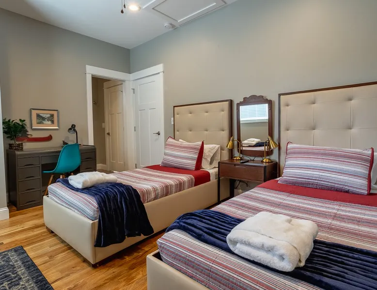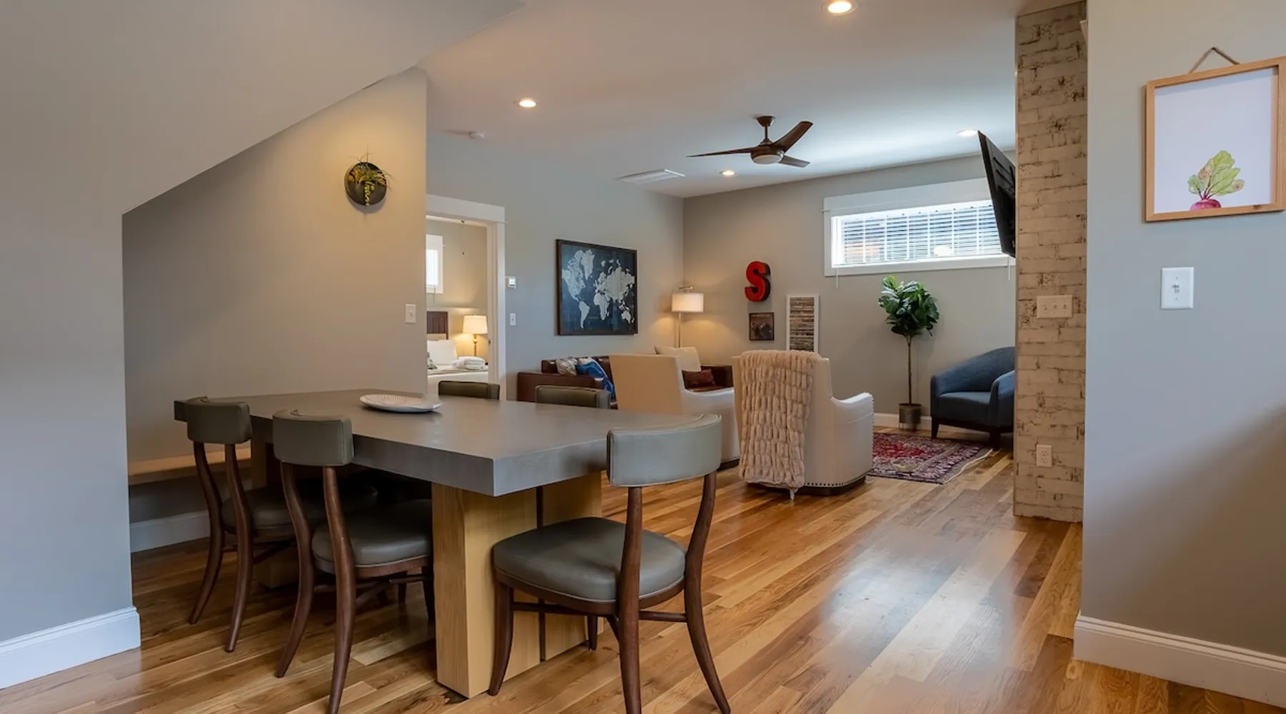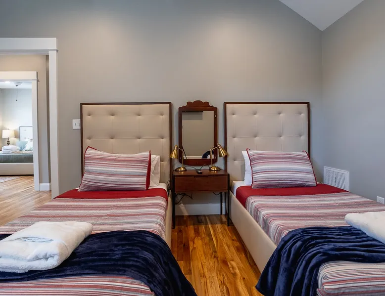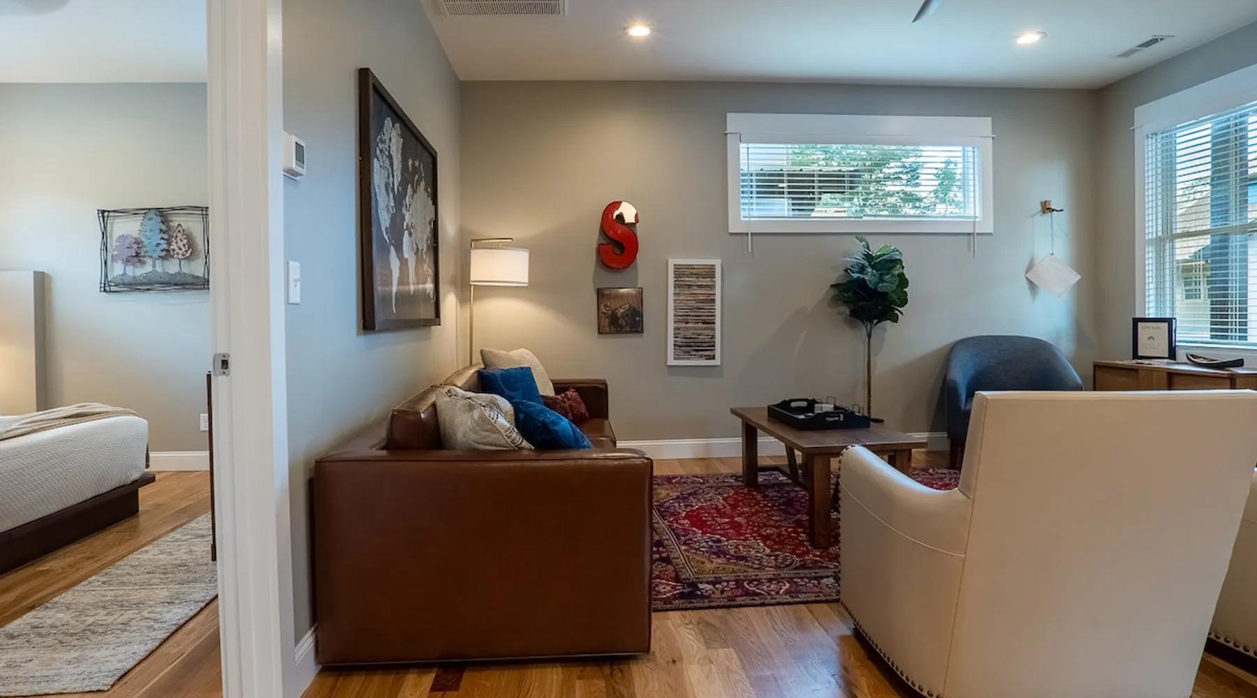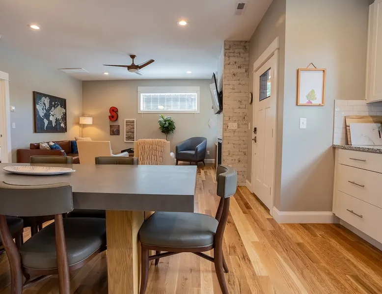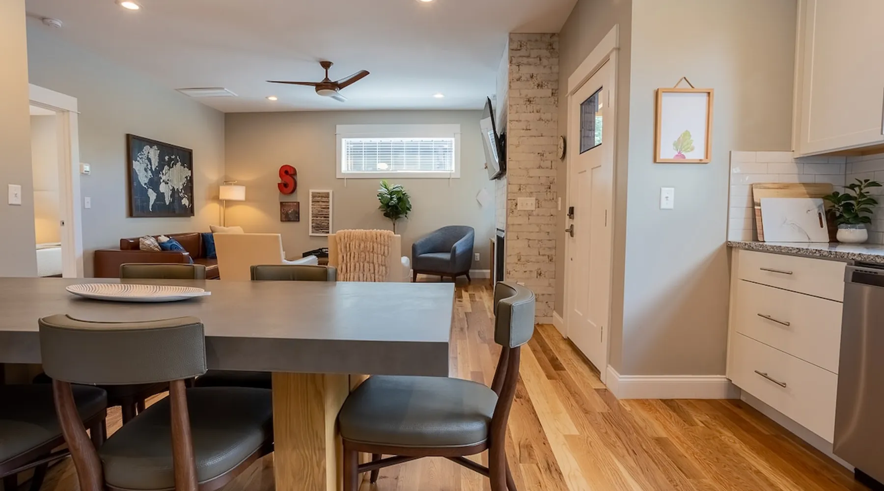 Come experience Little Sadie! This beautiful property is one of ten beautifully constructed villas located in the enclave of The Fold at Reynolds Mountain. This newly built property will have you amazed by the attention to detail, the décor and finishes exude luxury! You'll be walking distance to restaurants, shops, and more! And, located just a 10 minute drive from downtown Asheville, near hiking, biking and kayaking, this will be the perfect home away from home for your time in the area! The space Upon entering the main level, you will be welcomed by an abundance of natural light and the open floor plan, including a fully equipped kitchen, large dining table and a living space featuring a gas fireplace with a beautiful stone surround. Everything is newly furnished and has a fresh clean feel to it for you to relax and enjoy your stay. There are 4 guest rooms, for everyone to have their own space, including a main level King Room with ensuite bathroom. The other 3 guest rooms are on the second level and all are outfitted with King beds, which are sure to provide a restful night. You can end the fun filled day, on the second level, just step out on to the deck where you can enjoy a cocktail or relax in the hot tub and take the mountain air. Come create blissful and amazing memories at Little Sadie! Home Truths: - Sleeps in beds: 8; Max Occupancy: 8 - We provide linens for all beds; other occupancy will require guests providing their own linens - Parking for 2 vehicles and designated overflow parking available - Internet Speed: Download - 600Mbps Upload - 35Mbps We openly share our Cleaning Fees in a manner of full disclosure, as we think this is the most honest and forthright approach with respect to our guests. Our Cleaning Fees are backed by our Clean Guarantee, which reflects the highest level of standards, pristine environments for our guests, and a level of clean that surpasses any other vacation homes; we literally guarantee it! Quiet Policy: Please note that the home is located in a very quiet community. Parties, loud noise and unruly behavior are absolutely prohibited, and guests are expected to respect the neighbors and the peace this mountain retreat area affords. Pets: This home and property are very dog friendly, and guests are welcome to bring their "best friends" with them. There is a non-refundable Pet Fee of $130 with a limit of 2 dogs per booking party. Early Check In and/or Late Check Out may be possible, depending on cleaning schedules and other reservations. If it is possible, there may be an additional fee that would be determined based on the time that you wish to check in or out and the seasonal rates. Please inquire for details regarding payment, the cancellation policy, military discounts, and trip insurance. Exclusive Special: When you book Little Sadie you will receive a special code for discounted tickets to the Biltmore Estate! Contact us for more info. Note: Reservations over 30 days are subject for review prior to acceptance. A separate rental agreement will be required for 90+ day stays. Last Minute Bookings: Reservations made within 7 days of check-in require additional documentation before confirmation.