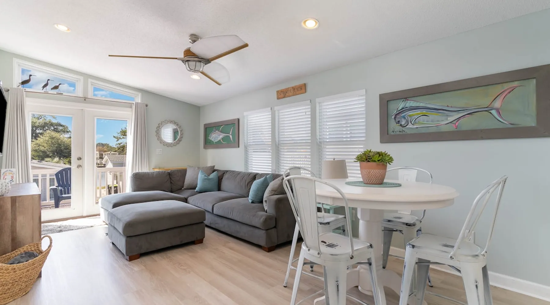 Relax in this Top Unit 3BR/2BA in Oceanside Village, a gated Surfside Beach resort, with private beach parking & access with showers and restrooms. Inside: open living area, full kitchen, Smart-TVs, in-unit laundry, and comfy bedrooms for families or small groups. Community include 2 outdoor pools, indoor heated pool, kiddie splash pad, fitness center, tennis & basketball, bocce, and fishing lakes. Minutes to Surfside & Garden City Piers. Your easy coastal home base for fun and relaxation. The space Golf carts can be rented inside the community only. No outside carts allowed. The community rented golf carts are only allowed to the beach and all the wonderful inside community amenities. These rented carts are not allowed to be driven outside of the community. We can assure you that your time here will create lasting memories with your loved ones. Let us have the pleasure of hosting you and your families! We only book Saturday to Saturday during JUNE,JULY & AUG. Requested mandatory information needed 48 hours prior to your arrival for security protocol for access into the community. Without this information security will not allow access. Number of adults & children, First & Last Name, Email address, home address, phone number, make, model and color of vehicles, tag information and state. Sleeping Accommodations BR 1| 1 King Bed | Tub/Shower | TV | Sleeps 2 BR2 | 1 Bunk Bed | 1 Twin Bed |TV | Sleeps 3 BR 3 | 1 Queen Bed | Private Bath| TV | Sleeps 2 Cook out on the gas grill and enjoy the wrap around deck, which spans the entire front side and side of the house. We rent our home from Saturday to Saturday during June, July & August, we have a 3-night minimum during the off-peak season. We ask that you provide your own paper towels and paper products and garbage bags. We provide you with a starter package of 1 paper towel roll, 1 roll of toilet paper for each bathroom, 2 garbage bags, 4 laundry pods and dish soap and coffee pods. We provide bed linens and bath towels for the home. We DO NOT provide beach towels or chairs. $140 nonrefundable cleaning deposit. NO PETS. We are a short driving distance to many tourist areas, such as Murrells Inlet, Garden City, Pawleys Island & Myrtle Beach. The airport is only a 10 min drive to this location. There is a gas station and grocery store only 2 minutes away. Free onsite parking for up to 3 vehicles, we have an overflow lot for additional vehicles to park. Pack and play and highchair are available upon request. Please contact us for any additional questions. Other things to note Come relax and enjoy your vacation in our beautiful top-level pier home. Our gated/private community with beach parking & access is available for season renters. Enjoy all our amenities that hotels don't offer. Booking Sat to Sat during June, July & Aug other months inquire. This top-level unit has 3 bedrooms and 2 full baths. It's a short walk and 2-minute golf cart ride to the beach! We provide free linens for your entire stay. You can rent a golf cart within our community if needed. No outside carts allowed. Use of rented community golf carts are to access the private beach and our communities' amenities only. You can't drive these carts outside of the community. Our home will provide you with comfort and amenities needed for the perfect getaway. Requested mandatory information needed 48 hours prior to your arrival for security protocol for access into the community. Must be 25 or older to book, per Hoa rules and regulations. Strictly enforced and we may ask to request photo id upon entering the rental. Number of adults & children, First & Last Name, Email address, home address, phone number, make, model and color of vehicles, tag information and state.