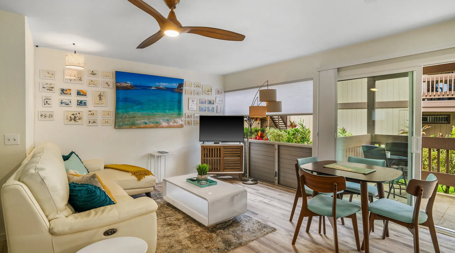 PROPERTY DESCRIPTIONAre you looking for a updated condo in Princeville for your vacation? If so... You have arrived! This wonderful 1 bedroom 1 bath condominium has it all. Pride of ownership exudes here. The bedroom has a queen size bed and bathroom. This condo boasts an amazing lanai, tile throughout with updated kitchen and baths. You are close to the most beautiful beaches in the world. Located in the Sandpiper Condos, walking distance to stores is only 10 minutes and only 10 minutes to drive to beaches. Located across from Makai Golf Course, one of the top golf courses on the island. View of Mount Namolokama, filled with water falls. Here you can park the car in your dedicated parking spot for 137 (all yours). Professionally managed by Princeville Vacation Rentals. We hope to host you on Kauai. Aloha! (HI TAT #TA-053-212-0576-01) (TMK 4-5-4-15-21-37) Amenities: Cable/satellite TV, Dryer, Fire Extinguisher, First Aid Kit, Hair Dryer, Hangers, Internet, Internet Access, Iron, Iron Board, Linens, Living Room, Parking, Parking space, Private Entrance, Self Check-In, Shampoo, Smoke Detector, TV, Towels, Towels provided, Washer Attractions: Bay, Botanical Garden, Coin Laundry, Museums, Rain Forests, Reef, Waterfalls Car: Necessary, Recommended Changeover/Arrival Day: 24Hr Check-In Entertainment: Books, DVD, Laptop Friendly, Satellite or Cable, Stereo, Stereo system, Television, Video Library Kitchen and Dining: Area, Coffee Maker, Dishes Utensils, Dishwasher, Kitchen, Microwave, Oven, Refrigerator, Spices, Stove, Toaster Leisure: Antiquing, Bird Watching, Eco Tourism, Horse riding nearby, Horseback Riding, Miniature Golf, Scenic Drives, Shelling, Shopping, Sight Seeing, Walking, Water Sports, Wildlife Viewing Local Features: Fitness Center, Groceries, Laundromat, Massage Therapist, Medical Services Location Types: Mountain View, Mountain views, Near Ocean, Town, Village Outdoor: Garden, Golf, Grill, Tennis Pool/Spa: Communal Pool, Hot Tub, Jacuzzi, Jacuzzi/hot tub, Unheated outdoor pool Sports and Adventure: Cycling, Cycling trips, Deepsea Fishing, Equestrian Events, Fishing, Fishing Bay, Fishing Surf, Fishing nearby, Golf, Golf course on site or within 15 min walk, Golf course within 30 min drive, Hiking, Hiking trips, Hunting, Kayaking, Mountain Biking, Sailing, Scuba or Snorkeling, Snorkeling, Surfing, Swimming, Tennis, Tennis courts nearby, Watersports nearby Suitability: Accessibility Ask, Accessibility Wheelchair Accessible, Children Welcome, Free Parking, Pets Not Allowed, Smoking Not Allowed Themes: Adventure, Away From It All, Budget, Family, Romantic, Sports Activities