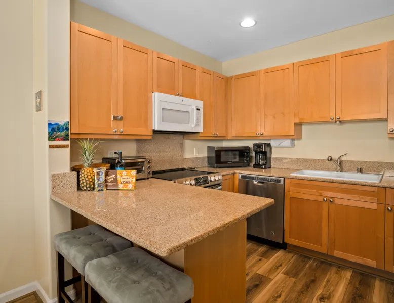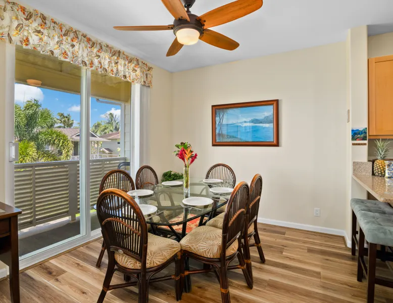 PROPERTY DESCRIPTIONSet amidst lush, garden landscape and just steps from the resort’s tropical pool and poolside lounging area, this beautiful Princeville vacation home can be your base for all the activities Kauai has to offer, or you can spend your days relaxing, meditating or heading out for all-day adventures. Within walking distance is a world-class golf course, beautiful tennis courts and some of the most romantic beaches: Anini beach, Secret beach, Hanalei bay, hideaway’s Beach. Within a minutes’ drive, you have access to over 23 North Shore beaches, and coves tucked into Princeville’s cliffs, you can also enjoy the breathtaking views of Hanalei Bay and Bali Hai. Quaint Hanalei Town – bordering awesome Hanalei Bay – is a short 10-minute drive away, offering shopping and a variety of eateries, from small, home-town cafes to elegant dining. The Kilauea Point Lighthouse, built in 1913 was a navigational aid for commercial shipping between Hawai‘i and Asia, stands as a monument to Hawai‘i’s colorful past. Princeville is a golfer’s paradise, featuring 36 holes in two world-class championship courses–the Prince Golf Course and the Makai Golf Course–both of which have consistently been ranked among the best in the country. This lovely vacation rental will be a perfect home-away-from-home. The main bedroom (upstairs) is your own private hide-a-way with, TV, en-suite bath with separate shower and soaking tub. Each of the other two bedrooms (downstairs) is also exquisitely appointed with queen beds, Hawaiian touches and tropical views. The gourmet kitchen features granite counters, eating bar, custom kitchen cabinets, and all new appliances including a full size refrigerator, stove, dishwasher, microwave, coffee machine, and coffee grinder, top of the line dinnerware and glassware. There is also a lanai off of the dining room. While central air-conditioning is available, it is not necessary since you will be naturally touched by ample refreshing trade winds when opening the windows and sliders. The ceiling fans throughout the house usually eliminate the need for A/C when you combine them with the daily tropical breeze. The use of ceiling fans instead of central air-conditioning has become more common and popular throughout Kauai, and energy conservation is truly appreciated by everyone. There is a two car garage and an in-unit washer and dryer. All furnishings and decor are of the highest quality. Even in Paradise there is some fine print: You must be 21 years of age to rent with us. (HI TAT #TA-081-413-5296-01) (TMK 4-5-4-5-24-80) Accommodations: Dinner Not Available Amenities: Air Conditioning, Cable/satellite TV, Dryer, Essentials, Fire Extinguisher, First Aid Kit, Garage, Hair Dryer, Hangers, Internet, Iron, Iron Board, Linens, Linens provided, Living Room, Parking, Parking space, Parking space Accessible, Safety Card, Self Check-In, Shampoo, Smoke Detector, TV, Towels, Towels provided, Washer Car: Recommended Changeover/Arrival Day: 24Hr Check-In Entertainment: DVD, Laptop Friendly, Satellite or Cable, Television Kitchen and Dining: Area, Coffee Maker, Dining Area, Dishes Utensils, Dishwasher, Kitchen, Microwave, Oven, Refrigerator, Room, Stove, Toaster Leisure: Shopping, Water Sports, Whale Watching Location Types: Town, Village Outdoor: Balcony, Golf, Grill Pool/Spa: Communal Pool, Hot Tub, Jacuzzi, Unheated outdoor pool Safety Features: Fire Extinguisher, First Aid Kit, Smoke Detector Sports and Adventure: Golf Optional Suitability: Children Welcome, Free Parking, Minimum Age Limit, Pets Not Allowed, Smoking Not Allowed