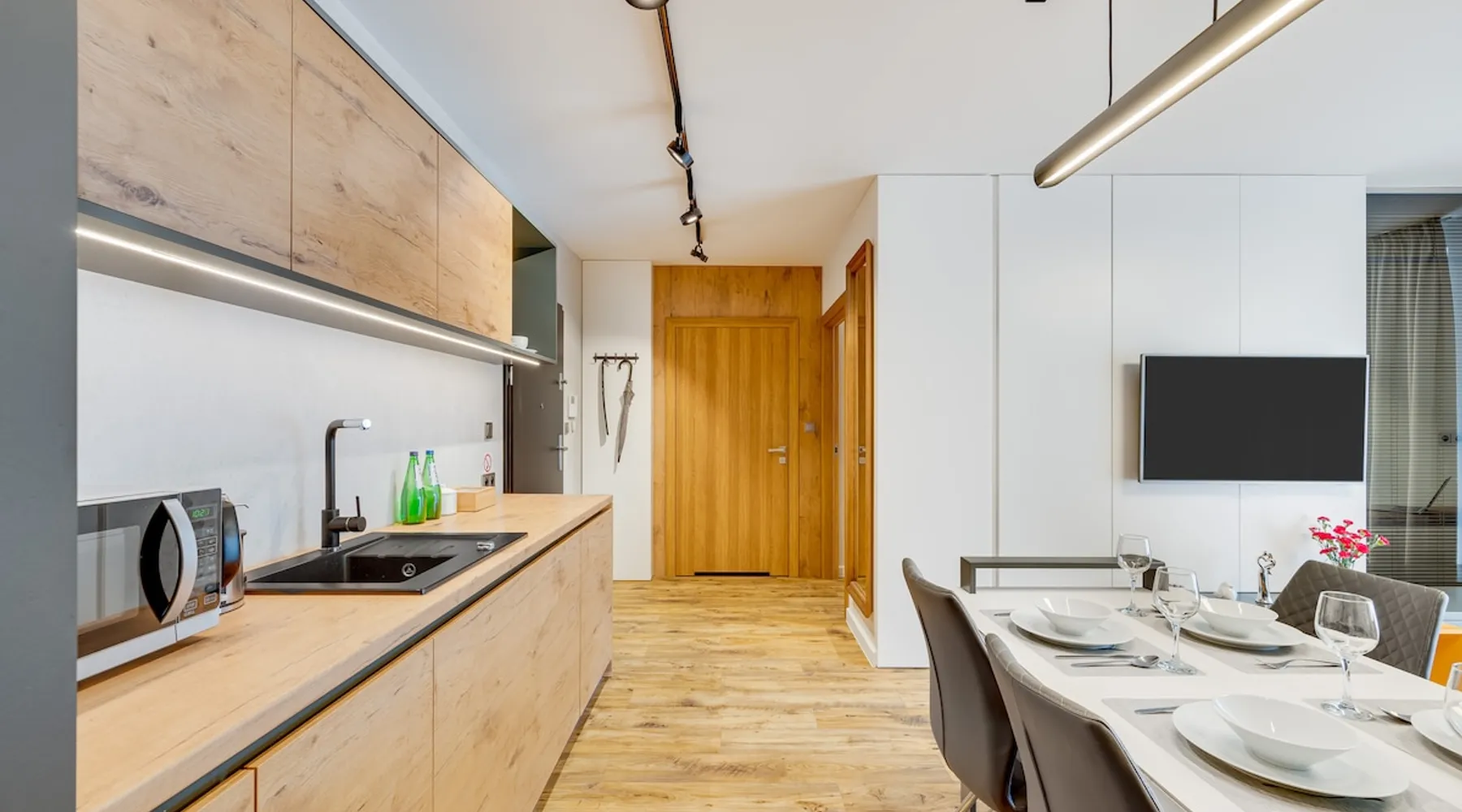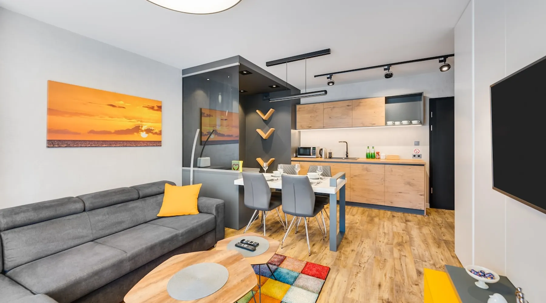OLD TOWN APARTMENT CHMIELNA PARK is a modernly arranged, comfortable apartment with an area of 43m2. It is designed for up to 4 people. There is a living room with a sofa bed and an LCD TV, a fully equipped kitchenette, a bedroom with a large, comfortable bed, and a bathroom with a shower. The apartment has a balcony and free parking space in an underground garage hall, as well as WiFi access. There are 2 independent remote workspaces in the living room and bedroom. The space OLD TOWN APARTMENT CHMIELNA PARK is located in the heart of Gdansk on the Granary Island in the Chmielna Park apartment complex, just 600 meters from the biggest attractions of the Old Town. Nearby there is the Long Coast, the Long Market, the Neptune Fountain, and many other monuments. The nearest beach Gdańsk Stogi is 7 km away from the apartment. The place is perfectly connected, there is a public transport stop nearby. The airport is just 19 km from the center of Gdansk. The location of the apartment has two basic advantages - proximity to the Old Town and the center of Gdansk and a quiet and peaceful neighborhood on the Granary Island. This allows you to relax and unwind in a great environment. It is a perfect place for guests who appreciate peace and at the same time want quick access to the attractive places of Gdansk. I hope that the decision to choose my apartment will guarantee you a successful rest, only provide positive energy and pleasant memories from Gdansk. I look forward to welcoming you and wish you a pleasant stay. Guest access The apartment is located on the 2nd floor. There is an elevator in the building. There is a free parking space in the garage hall on level -1 of the building. Apartment facilities: Living room: TV, double sofa bed, coffee tables. Bedroom: large double bed (160x200), bedside tables, wardrobe, linens. Bathroom: walk in shower, sink, washer, hair dryer, towels. Kitchenette: fridge, induction hob, dishwasher, coffee maker, electric kettle, toaster, dishes, pots and pans, cutlery. Additional equipment: WI-FI internet, iron, vacuum cleaner, ironing board. Other things to note THE CLEANLINESS OF THE APARTMENT IS A KEY ISSUE FOR ME. TO ENSURE A PEACEFUL AND SAFE STAY FOR GUESTS, I ADDITIONALLY FOLLOW COVID-19 PROTECTION RULES. THE APARTMENT IS CLEANED AND SANITIZED ACCORDING TO THE INSTRUCTIONS DEVELOPED BY AIRBNB.