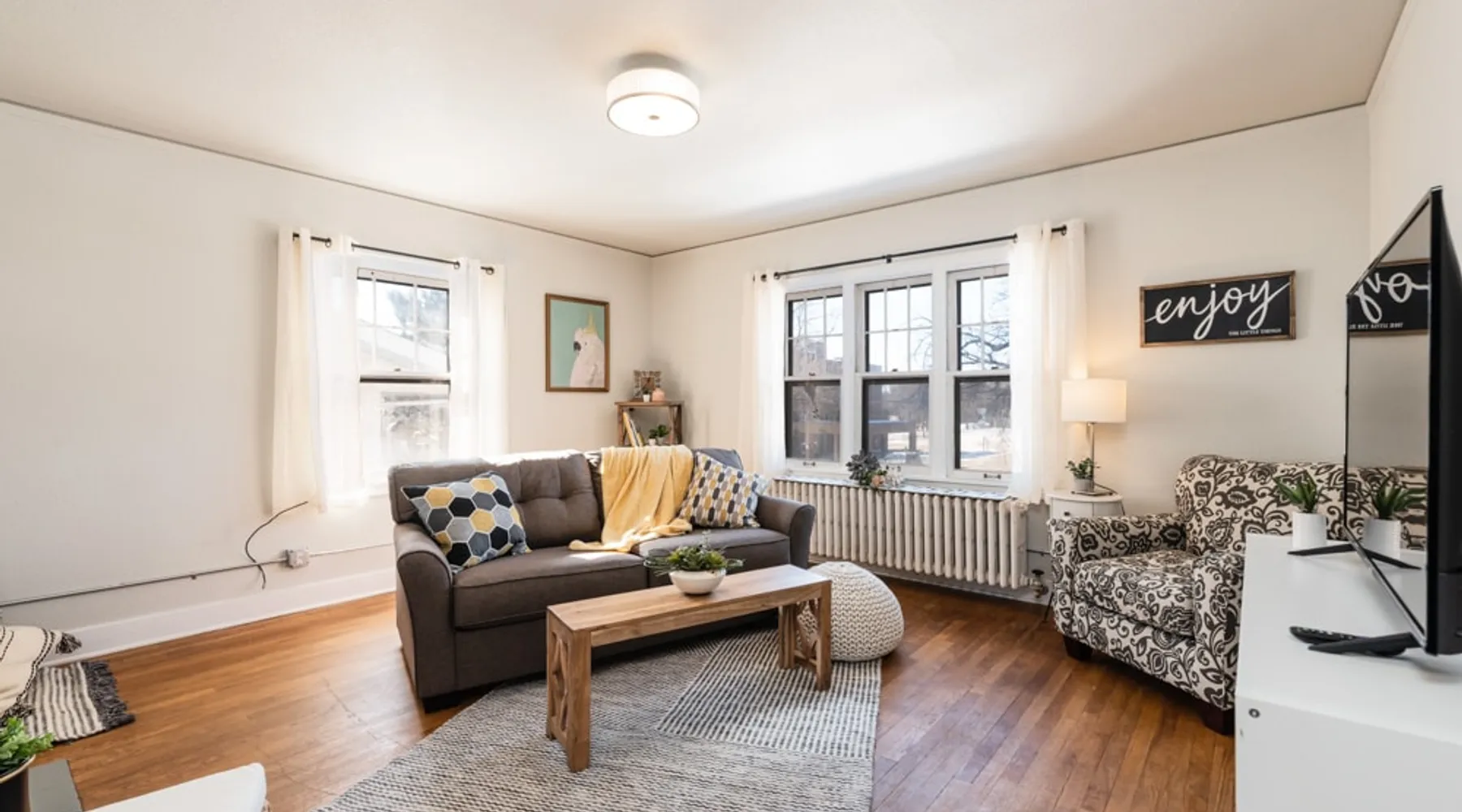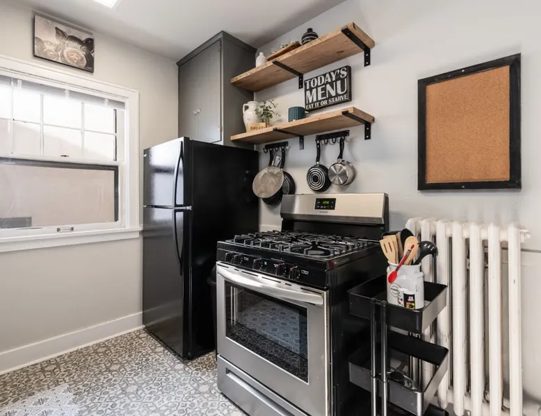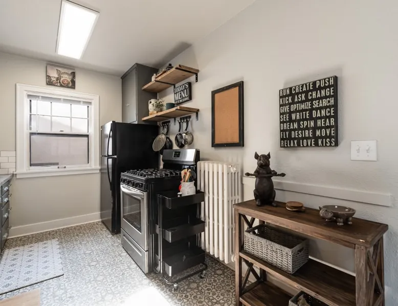 Experience comfort in this stylish top-floor Bismarck retreat. Sink into a plush queen bed and unwind by the electric fireplace. The sleek kitchen, complete with a gas range, is perfect for home-cooked meals. Just steps from downtown, explore charming restaurants, bars, and local attractions. Relax and enjoy this updated property and take time to visit the Dakota Zoo, just 5 minutes away and out lovely State Capital and Heritage Center. ✔ Queen Bed | ✔ Downtown | ✔ Fireplace The space Step into your next inviting haven, where the interior space is a true sanctuary of comfort and style. The living room welcomes you with its spacious design, featuring a plush sofa facing a high-definition TV, complemented by the cozy warmth of an electric fireplace on your right. A stylish corner chair bathed in the gentle glow of a perfectly positioned lamp invites you to lose yourself in the pages of your favorite book. Adjacent to this, the kitchen stands as a culinary enthusiast's dream, equipped with top-notch appliances including a stove, refrigerator, freezer, microwave, and coffee machine. When day turns to night, retreat to the bedroom, where a soft queen-sized bed promises restorative slumber, while the nearby bathroom invites you to indulge in a refreshing bath and shower combination. Nestled in the heart of downtown Bismarck, North Dakota, this location is second to none. Immerse yourself in the vibrant atmosphere as you step out to discover an array of exceptional dining options, lively bars, and captivating shopping destinations, all within easy walking distance. For the explorers at heart, the Dakota Zoo, North Dakota State Capitol, and the Bismarck Art & Galleries Association are a short drive away, offering enriching experiences. Whether you seek culinary delights or cultural immersion, this Airbnb provides the perfect launchpad for your Bismarck adventures. ✔ Cozy & Comfy ✔ Queen Bed ✔ Prime Location Downtown ✔ Fully Equipped Kitchen ✔ Electric Fireplace ❖ LIVING ROOM ❖ Step into the inviting living space, where spaciousness meets comfort. A generously sized area welcomes you, boasting a plush sofa thoughtfully positioned across from a high-definition television, primed for your entertainment pleasure. To your right, an elegant electric fireplace exudes a soothing warmth, cocooning you in an atmosphere of ultimate coziness. Nestled in the corner, a chic chair beckons, its design a testament to style and relaxation. Adjacent, a well-placed lamp casts a gentle glow, creating the ideal ambiance for delving into the pages of your cherished literary companion. ✔ Comfortable Sofa ✔ 2 Stylish Chairs ✔ HDTV ✔ Natural Lighting ✔ Fireplace ❖️ KITCHEN & DINING ❖ Step into the exquisite kitchen and dining haven, where every moment becomes an experience of visual delight. The kitchen's captivating design is a masterpiece of aesthetics, harmonizing color schemes and styles that effortlessly elevate the ambiance. Engaging with culinary endeavors here is a genuine pleasure, as top-of-the-line stainless steel appliances await your touch: an impeccable stove for your gourmet visions, a spacious refrigerator and freezer for your freshest ingredients, a swift microwave to cater to your cravings, and a sophisticated coffee machine to awaken your senses. Once your kitchen symphony comes to life, transition seamlessly to the elegant dining tableau. A table designed for two stands as a testament to intimacy and versatility, be it a cherished romantic dinner or a swift, nourishing breakfast before embarking on your day's adventures. ✔ Microwave ✔ Stove ✔ Oven ✔ Coffee Maker ✔ Wine Glasses ✔ Refrigerator ✔ Freezer ✔ Sink - Hot & Cold Water ✔ Silverware ✔ Pots & Pans ✔ Dishes and glassware ✔ Indoor Dining Table for 2 ❖️ BEDROOM & BATHROOM ❖ Indulge in the ultimate relaxation as you make your way from a day of captivating exploration to your serene bedroom and bathroom enclave. As fatigue gently ebbs away, surrender to the allure of the sumptuously inviting queen-sized bed, a haven of comfort that beckons you to unwind and embrace a night of tranquil slumber. The room exudes an impeccable sense of style, every detail thoughtfully curated to evoke a sense of refined elegance. For a seamless continuation of your rejuvenation journey, a nearby bathroom offers its delights. Step into the embrace of a revitalizing bath and shower combination, where the sensation of water cascading over you serves as a perfect tonic for renewal. ♛ Bedroom 1: Queen Sized Bed The bedroom & bathroom is equipped with the following amenities ✔ Premium Pillows, Linens, and Sheets ✔ Decoration and Comforts ✔ Natural Lighting ✔ Drawers ✔ Shower ✔ Vanity ✔ Mirror ✔ Toilet Guest access Hello, We’re excited to host you! Your stay at My Happy Place is just around the corner. Below are the key details for your arrival: 📍 Address: 319 n Mandan Street 🕒 Check-in Time: 3:00pm or after | Check-out Time: 11:00am 🔑 Entry Access: Your private access code for the keyless entry will be sent the day before your arrival. Simply enter the code on the keypad to unlock the door. 🚗 Parking: On street/private parking in the back of the building FREE 📶 Fast WiFi & Smart TV 📶📺 ✔ You'll have access to the apartment/hallways/laundry facility. ✔ Self Check-in (key pads on the doors) If you have any questions before or during your stay, feel free to reach out. Safe travels, and we look forward to welcoming you! Have a happy day Ann Other things to note ❖️ ADDITIONAL FEATURES ❖ ✔ Wi-Fi – Stay connected effortlessly ✔ HDTV – Enjoy your favorite shows and movies ✔ Bath – Relax and unwind ✔ Heating & Air Conditioning – Comfort in any season (split air unit) ✔ First Aid Kit – Safety essentials on hand ✔ Hair Dryer – Look your best while traveling ✔ Free Washer & Dryer – Laundry made easy (shared)(ironing board & Iron) ✔ Portable Fans