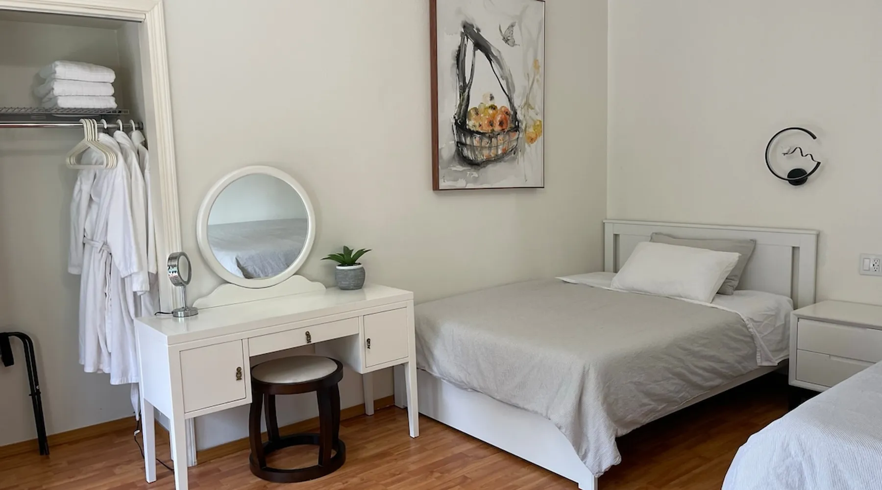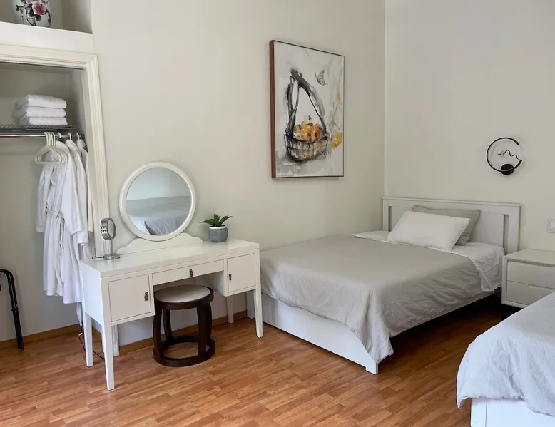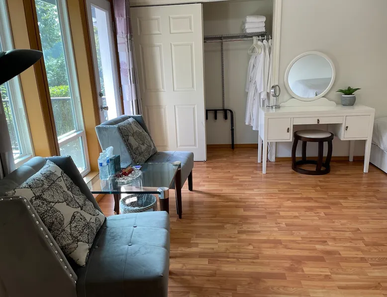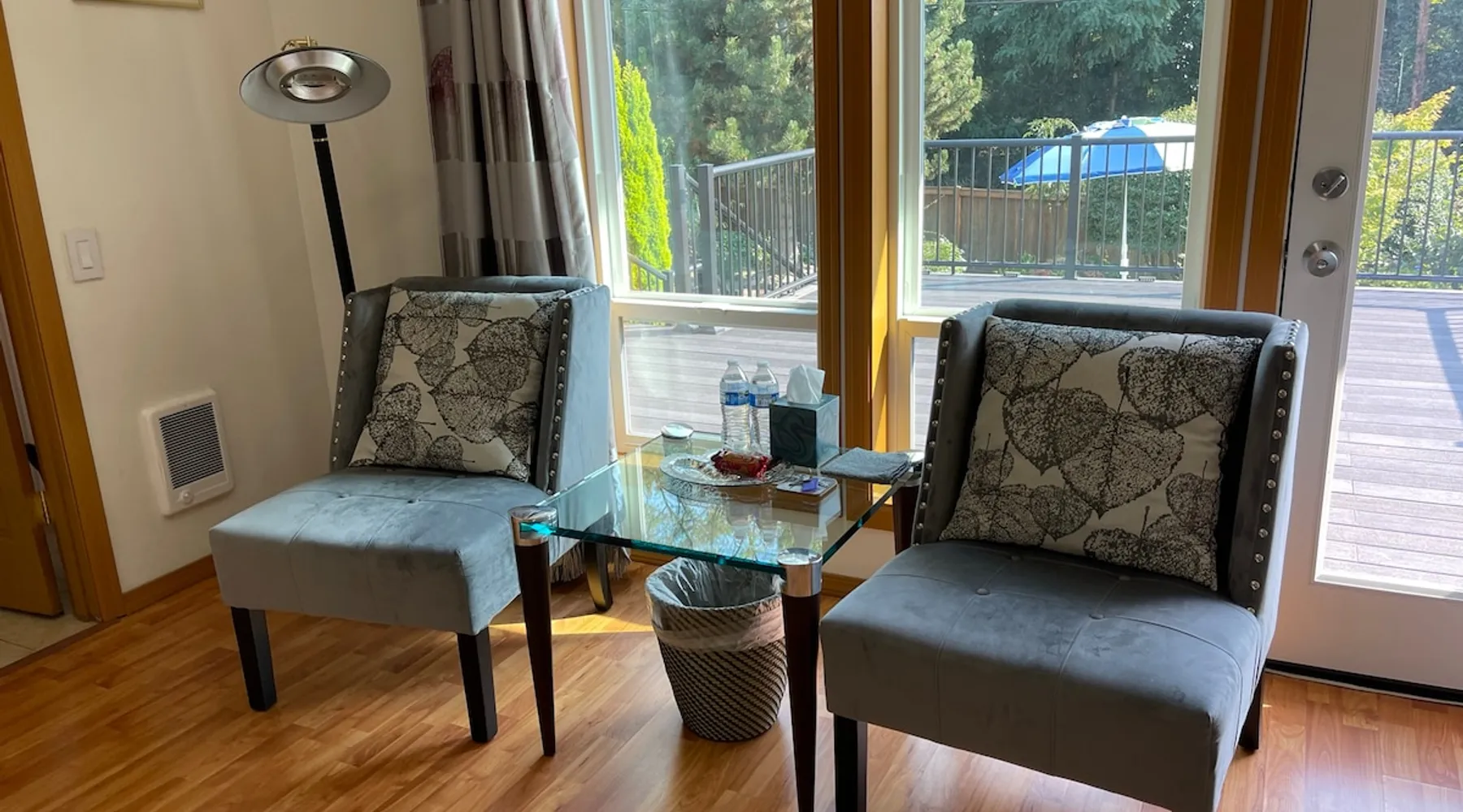 This room is a contemporary design, has its own entrance, private deck, beautiful garden, and convenient location for people who are traveling and want to see the city. The room is close to the link rail and several bus stops, only minutes away from the airport. Ride the link or bus to stadiums and downtown Seattle, South center Mall and the Amtrak station. Stay in our beautiful private room with a contemporary design, it really has a lot to offer! * Plenty of free parking space available, on side of yard fence. * Beautiful garden with all kinds of flowers, tress, patio set in the center of garden. * This room also has Its own deck over looking the garden, with a patio set to relax on. * Main entrance with key less lock, a door code is provided after booking, so that you can check in any time. * The room also has a private entrance thru the deck, you can go in and out any time without disturbing other people. * Spacious room with contemporary design, cute decoration, two full size beds, also extra lines and blanket are available in the bedroom closet for additional guests; ropes and shower towels also in the closet. * This room is big room, with two full size beds, so a max of 3 people can be accommodated. * Two separate bathrooms are available for guests to use, they are divided apart with one being toilet and sink only while the other being shower only. * Living room has a big flat screen TV and chairs for resting when needed. * Fully equipped kitchen, includes, dishwasher, coffer maker, full size refrigerator/freezer, toaster, wave oven and microwave. * House quiet hours are from 10pm-7am due to other guests maybe staying at the same time. * If the dates you need are not available, or if you need an additional room for extra guests that is coming with you, we have several other rooms available in the house. * Look in my profile and check out my other listings if needed. The kitchen along side with the bedroom and the shared bathrooms are allowed spaces for guests to use. I live in this property, guests can meet me in person, or text me , or call me any time for any questions and help. My house is in the very convenient location. * Several restaurants are near by, with walking distance about 5 to 10 min. 30+ restaurants in South Center Mall, driving distance about 5 to 10 minutes. * Grocery store, pharmacy, laundry mat , library, gas station, all around with walking distance about 5 minutes. * Several public transportation around my house. * Airport rental car facility , driving distance about 5 minutes. * Bus #124, directly go to down town Seattle, about 30 minutes , walking distance to bus stop about 5 min. * Bus *128 , to South center Mall, witch is biggest mall in North America. Walking to bus stop about 2 min. * Both #124 and #128 also link to rail station within 5 min. * Link rail, bring you to down town Seattle and university of Washington. To link rail, about 12 min. walking distance. Or you can take Bus #128, two stops to link rail station. Walking to #128 bus stop about 2 min. Due to other guests maybe staying in the house at the same time, unexpected noise may appear; such as walking to the bathrooms at night, guests coming in and out of the main entrance that may have a late check in due to delayed flights or early flight leaving in the morning. The garden area may not be at its best at all times, because as we all know in order to keep a clean and beautiful garden maintenance is needed at all times. I will try my absolute best to keep all areas clean and neat while all guests are staying in the house at the same time. Please keep in mind that since I can not overwatch every single detail in the house 24/7, so if you do come across something that needs my attention please let me know right away, and I will try to take care of it ASAP; I appreciate the understanding.