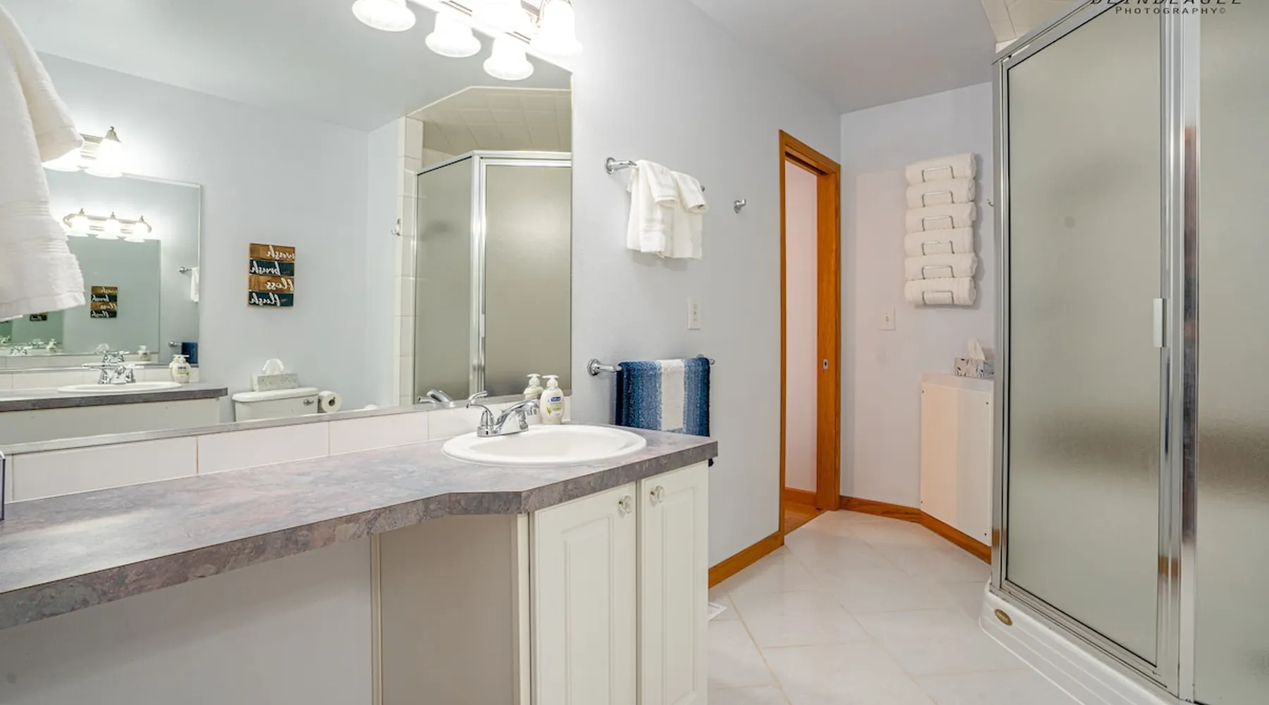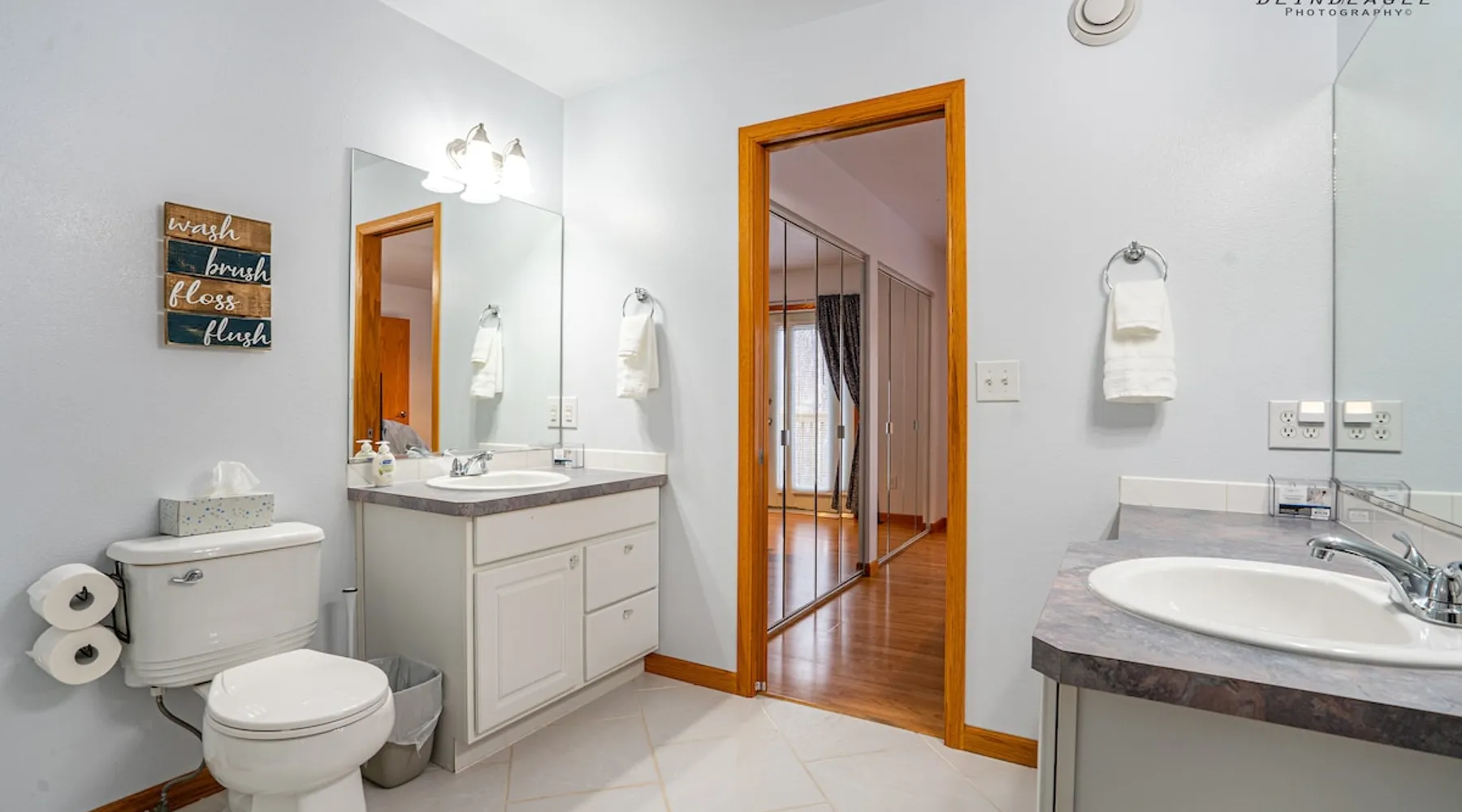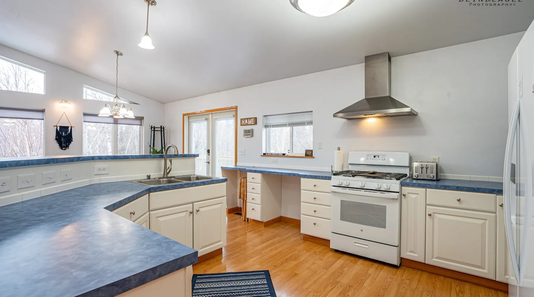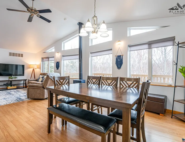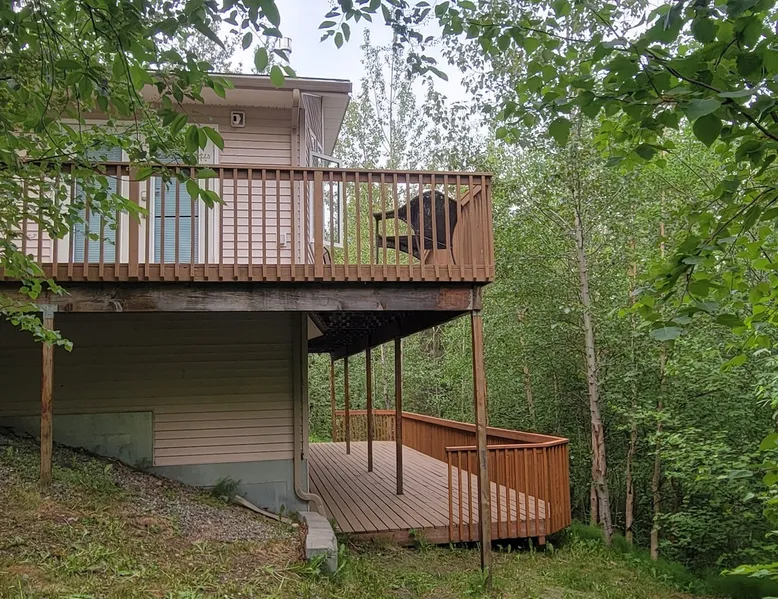 Gather your family, group, or team at the 2,400 sq. ft. Hickory Tree House halfway between Palmer and Wasilla. With 2 living areas, 2 decks, and 2 sets of bedrooms & baths, the layout is perfect for 2 families or groups seeking their own spaces. The little ones will love Kid's Corner with its games, books & more. Enjoy quiet and privacy on the 4 acres of treed, scenic beauty, within close proximity to many attractions and recreational spots. As you follow the illuminated pathway to the guest entrance, you'll be greeted by French doors with a keyless entry system that leads to the open-concept great room. The room boasts cathedral ceilings, an abundance of windows that offer scenic views and natural light, and plush seating for ultimate relaxation. Get cozy by the gas fireplace or enjoy your favorite shows on the 55" streaming TV using your own login credentials. You can also watch a movie from the DVD collection or read a book from the library located in the kitchen island. The fully equipped kitchen with newer appliances provides ample space for meal prep, with a large island, plentiful counter space, double sinks, and a chef-preferred gas range. Additionally, you'll find small appliances like a toaster, coffeemaker, slow cooker, rice cooker, and blender, as well as a convenient coffee station with Keurig and complimentary K-cups. The dining table seats 8 guests (plus included TV trays) and offers spectacular views. Outside, there are two decks where you can enjoy the scenic beauty while unwinding. The property has four acres of treed land, plus nearby hiking trails and recreational activities provide ample entertainment. You'll sleep comfortably in any of the six available beds, with two bedrooms on each level plus a queen sofa-bed in the lower-level living area. The upper level offers a king bed with access to the upper deck and a second bedroom with two twin beds. The bathroom with double vanities and a large shower is shared between the two bedrooms. The lower level has two more bedrooms, one with a queen bed and the other with two twin beds, a bathroom with dual sinks, a jetted tub, and a walk-in shower. The lower level also has a living area with a smart TV, a pull-out queen sleeper sofa, and a workspace for remote work. The kid's corner is perfect for children, with beanbag chairs, toys, puzzles, and games to keep them entertained. You are welcome to use the entire house, including both the upper and lower decks, as well as the yard. Please note that the garage, shed, utility room, and storage closet are locked to guests. We prioritize your privacy and comfort and aim to facilitate a hassle-free and pleasurable stay. Should you have any inquiries or issues during your visit, please do not hesitate to contact us. The Hickory Tree House is situated in Palmer, right in the middle of the stunning and picturesque Mat-Su Valley. It's conveniently located off a main highway and is only a short distance away from various recreational opportunities and popular attractions. Distances to nearby attractions: – Williams Reindeer Farm: 14 miles – The Musk Ox Farm: 8 miles – Pioneer Falls Trailhead: 18.2 miles – Arkose Brewery: 8 miles – Alaska Backcountry Tours: 16 miles – New Wave Watersports: 5 miles – Knik Glacier Tours: 26 miles – Noisy Goose Cafe: 7 miles – Turkey Red Restaurant: 7 miles – Downtown Palmer: 6 miles – MTA Event Center (hockey): 7 miles – Downtown Wasilla: 6 miles – Alaska State Fair: 8 miles – Palmer Municipal Airport: 8 miles – Settlers Bay Golf Course: 15 miles – Skeetawk Ski Area: 14 miles – Hatcher Pass: 20 miles – JBER: 37 miles – Anchorage: 43 miles – Anchorage Aurora Quest Northern Lights Tour: 50 miles – Ted Stevens International Airport: 48 miles – Matanuska Glacier: 50 miles – Talkeetna: 76 miles – Seward: 167 miles – Exit Glacier and Kenai Fjords National Park: 172 miles – Denali National Park: 200 miles – Kenai: 198 miles – Wrangell-St. Elias National Park: 211 miles – Valdez: 259 miles – Homer: 263 miles – Delta Junction: 296 miles – Fairbanks: 321 miles – North Pole: 333 miles – Arctic Circle sign: 514 miles The residence is situated in a peaceful, well-established neighborhood near a main highway that is only a brief drive to shopping and dining options in Palmer or Wasilla. If you are traveling from out of state, we suggest renting a car as public transportation is limited. While a 4-wheel drive vehicle is not essential during the warmer months, it is preferable during the winter months.. The gravel driveway has sufficient space for parking up to 4 vehicles. On-street parking is not permitted. We welcome longer stays, travel nurses, military families relocating, digital nomads, and families needing temporary housing due to insurance claims. Please don't hesitate to contact us with questions or for further information. We love pets and welcome one well-behaved and non-aggressive family dog. We kindly request that pets are not allowed on the furniture or the carpet or left unattended in the home. Pets must be on a leash when outdoors, and pet owners are responsible for any damages and cleaning up after their pets. Please keep the lower-level door closed as pets are not allowed on the carpet. If you have a second dog, please contact us for authorization prior to booking. Our home is kid-friendly, and we have provided a Kid's Corner in the lower level with toys, games, and books for kids to enjoy. However, please note that the home is not completely child-proof, as there is a staircase leading to the lower level, a fireplace in the main living area, and several closet doors that have mirrored glass. Please use discretion to determine if our home is appropriate for your family. For your peace of mind, we recommend purchasing travel insurance from a reliable carrier for your trip. As per Airbnb regulations, we do not permit parties or events on the property.