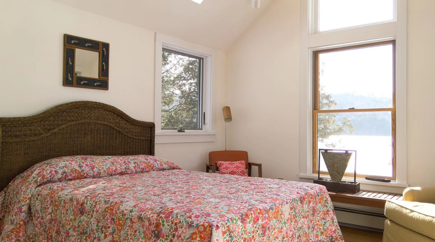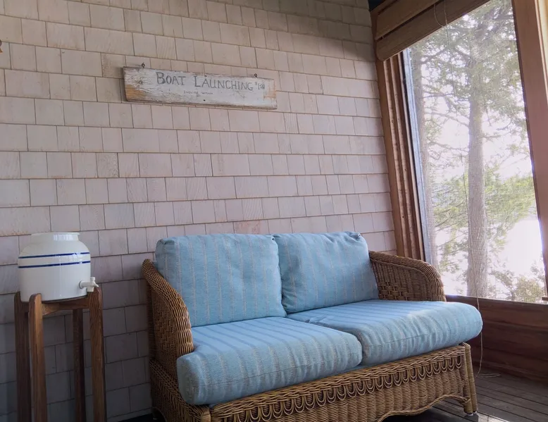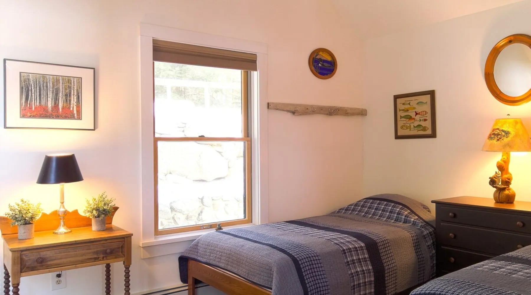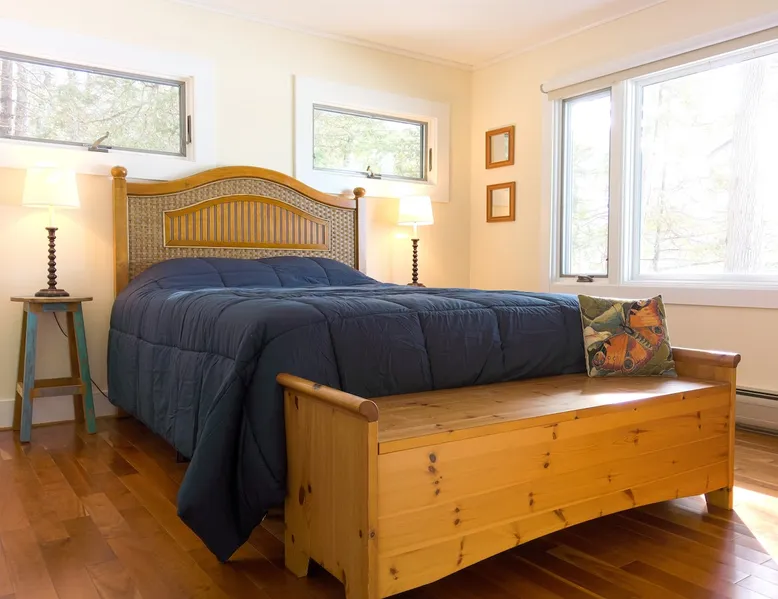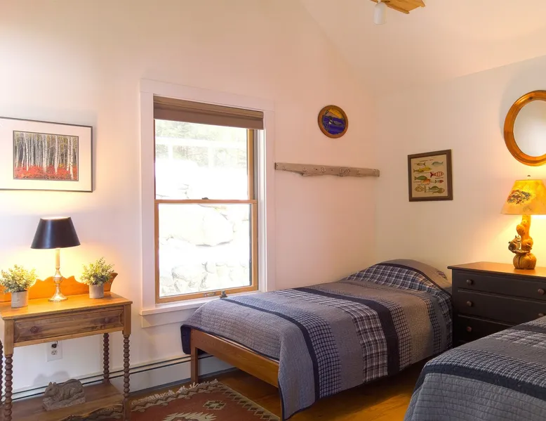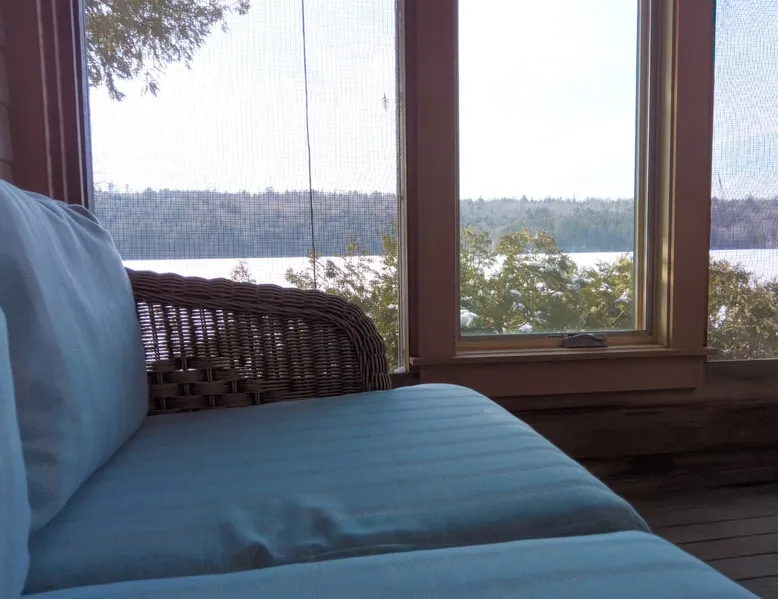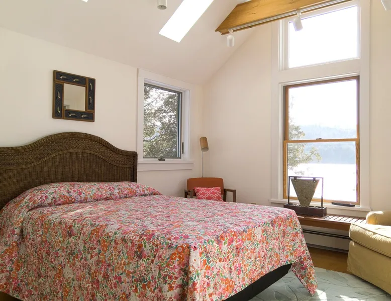 Shangri-La is a modern, warm and inviting three bedroom cottage tucked in the woods that sits on the water's edge overlooking Echo Lake and Beech Mountain. Complete with its own dock for sunbathing, swimming and boating. Shangri-La is the perfect retreat for getting away from it all, with the added advantage of being close to Southwest Harbor and Bar Harbor. With its central island location, maximize your trip by being in proximity to all the best things Mount Dessert Island has to offer. The space Main Level / First Floor: Steps from the driveway lead you to the front entry screened in porch. From there, enter the cottage's modern kitchen with built in dishwasher, commercial grade convection cook top and oven, microwave and well stocked dishware, cooking pots/pans, and utensils. Off the kitchen is an open floor layout with farm table that seats eight and living room with comfortable seating, blue tooth speakers, and wall-mounted 60 inch flat screen tv with Netflix. Off the living room is the rear screened in porch overlooking Echo Lake, the swimming/boat dock and outdoor deck. The master bedroom suite has its own full bath, and queen bed with incredible views of Echo Lake and Beech Mountain. The second bedroom is off the living room down the hall with two twin beds. Upper Level / second floor: Stairs from the hallway between the living room and second bedroom lead to a second floor bedroom with queen bed and 1/2 bath, that sits above and looks across Echo Lake. This bedroom has a cathedral ceiling, skylights and a full wall of windows and is perched at tree top level, giving it a bird's nest feel, looking down and across on Echo Lake towards Beech Mountain. Outside: Off the living area and dining area is a lake side screened in porch and deck with gas grill, comfortable furniture and outdoor patio table and chairs. At the base of the deck is the dock where you can walk out about 20 yards out onto the lake to sunbathe, swim, read a book, nap, or launch a canoe or kayaak to paddle on the lake with the Loons.