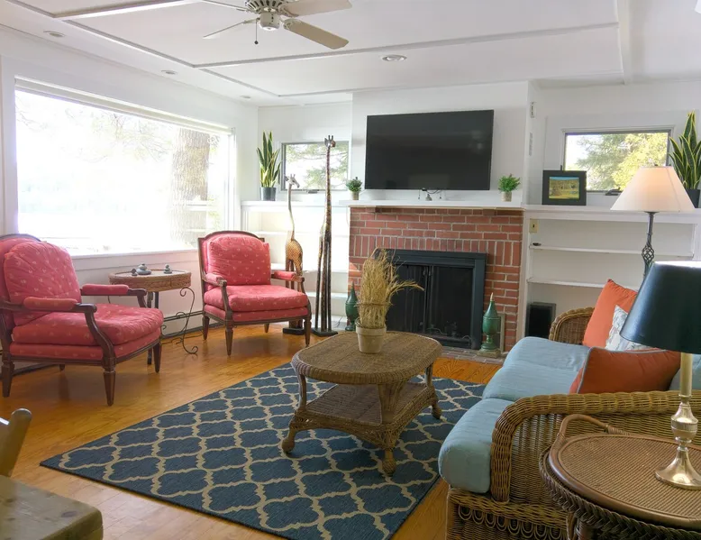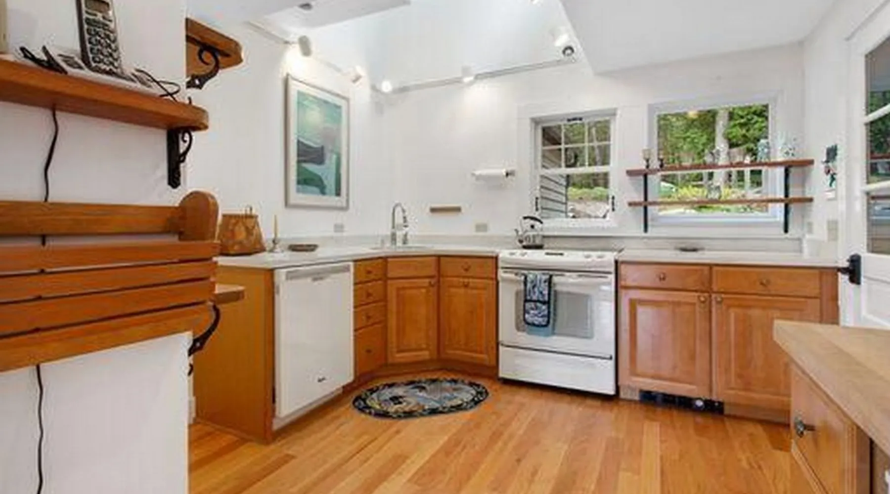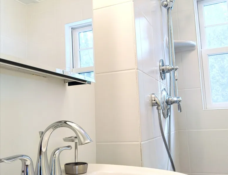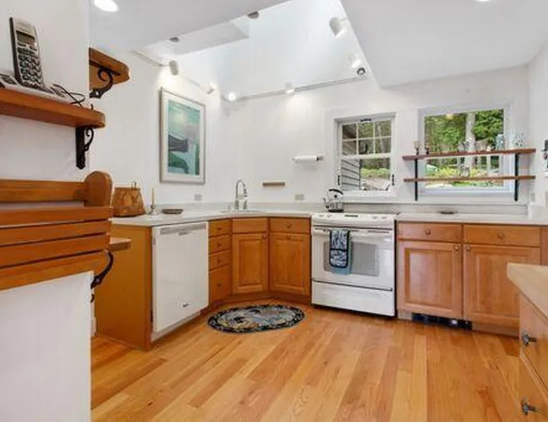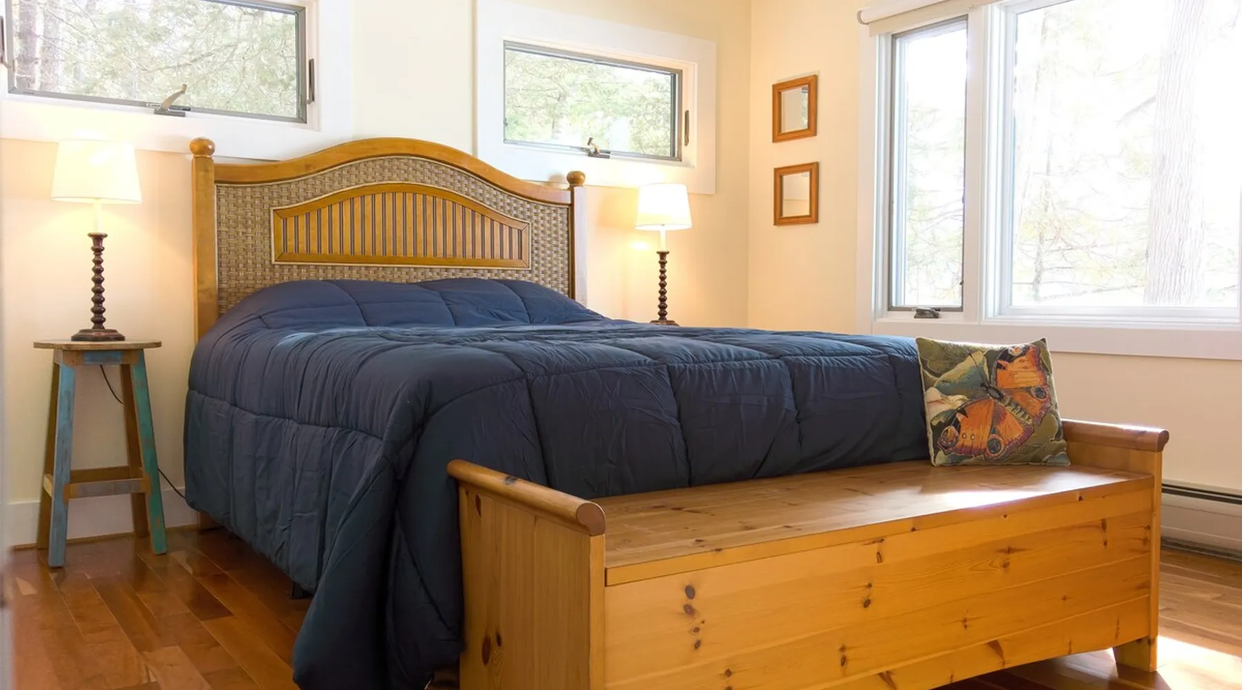 Shangri-La is a modern, warm and inviting three bedroom cottage tucked in the woods that sits on the water's edge overlooking Echo Lake and Beech Mountain. Complete with its own dock for sunbathing, swimming and boating. Shangri-La is the perfect retreat for getting away from it all, with the added advantage of being close to Southwest Harbor and Bar Harbor. With its central island location, maximize your trip by being in proximity to all the best things Mount Dessert Island has to offer. The space Main Level / First Floor: Steps from the driveway lead you to the front entry screened in porch. From there, enter the cottage's modern kitchen with built in dishwasher, commercial grade convection cook top and oven, microwave and well stocked dishware, cooking pots/pans, and utensils. Off the kitchen is an open floor layout with farm table that seats eight and living room with comfortable seating, blue tooth speakers, and wall-mounted 60 inch flat screen tv with Netflix. Off the living room is the rear screened in porch overlooking Echo Lake, the swimming/boat dock and outdoor deck. The master bedroom suite has its own full bath, and queen bed with incredible views of Echo Lake and Beech Mountain. The second bedroom is off the living room down the hall with two twin beds. Upper Level / second floor: Stairs from the hallway between the living room and second bedroom lead to a second floor bedroom with queen bed and 1/2 bath, that sits above and looks across Echo Lake. This bedroom has a cathedral ceiling, skylights and a full wall of windows and is perched at tree top level, giving it a bird's nest feel, looking down and across on Echo Lake towards Beech Mountain. Outside: Off the living area and dining area is a lake side screened in porch and deck with gas grill, comfortable furniture and outdoor patio table and chairs. At the base of the deck is the dock where you can walk out about 20 yards out onto the lake to sunbathe, swim, read a book, nap, or launch a canoe or kayaak to paddle on the lake with the Loons.