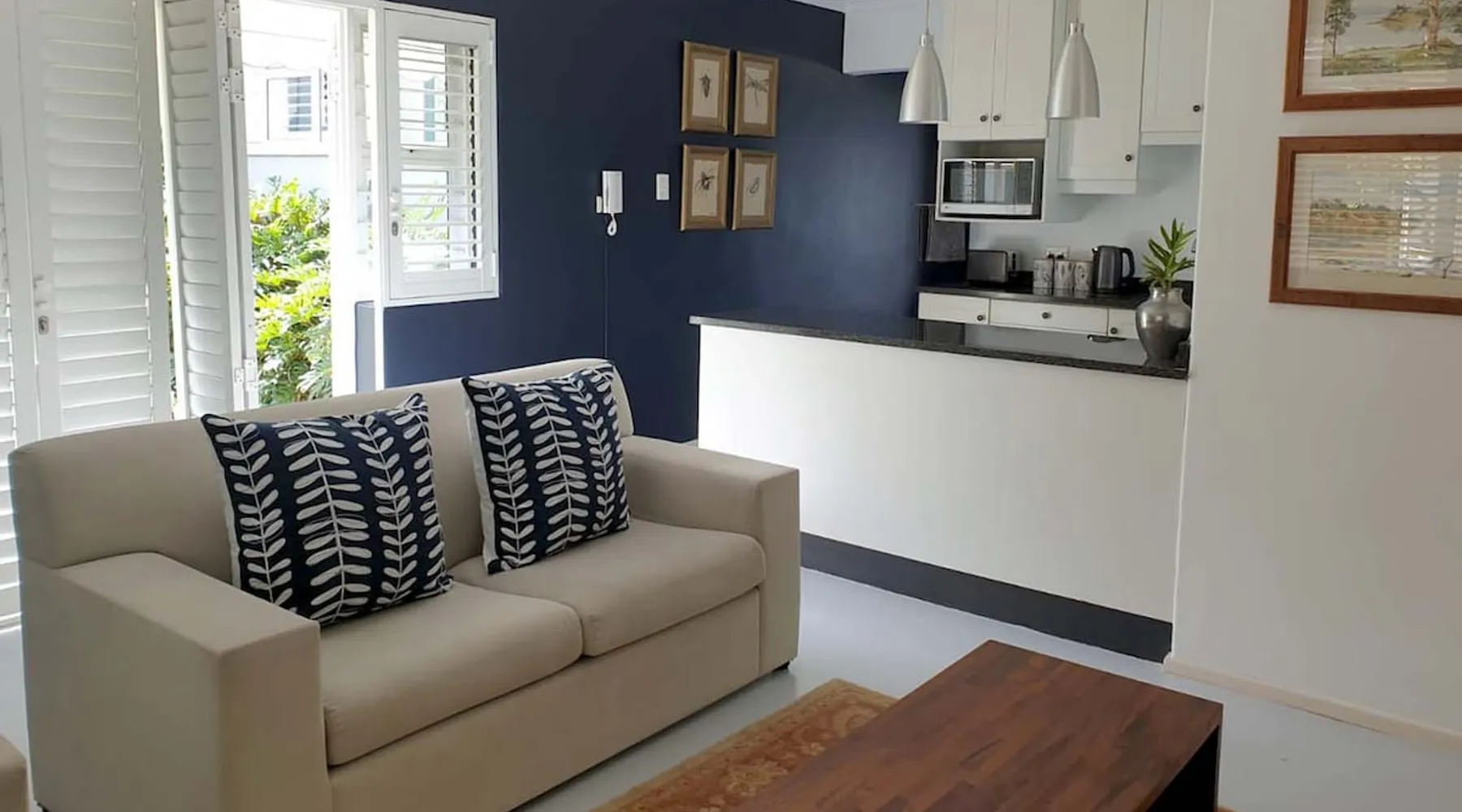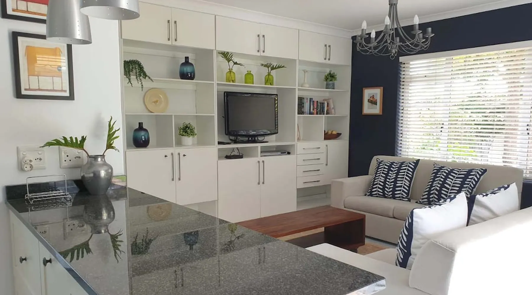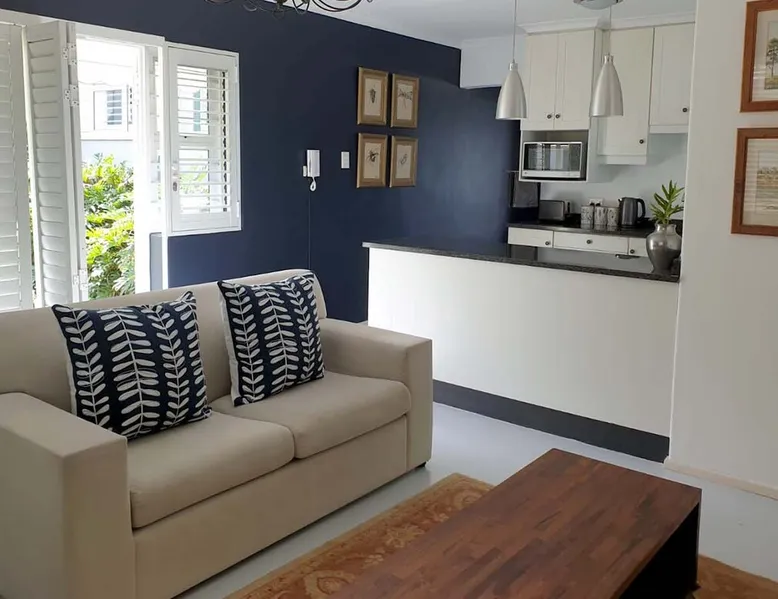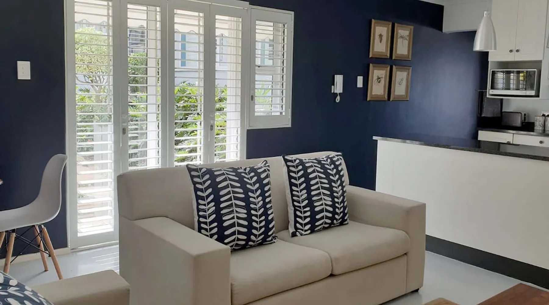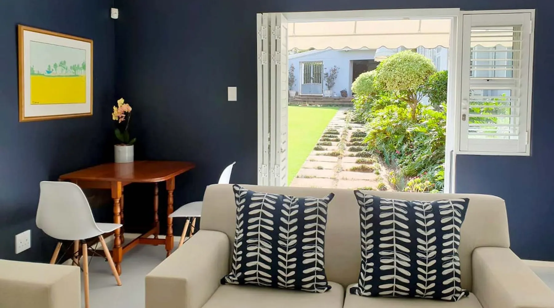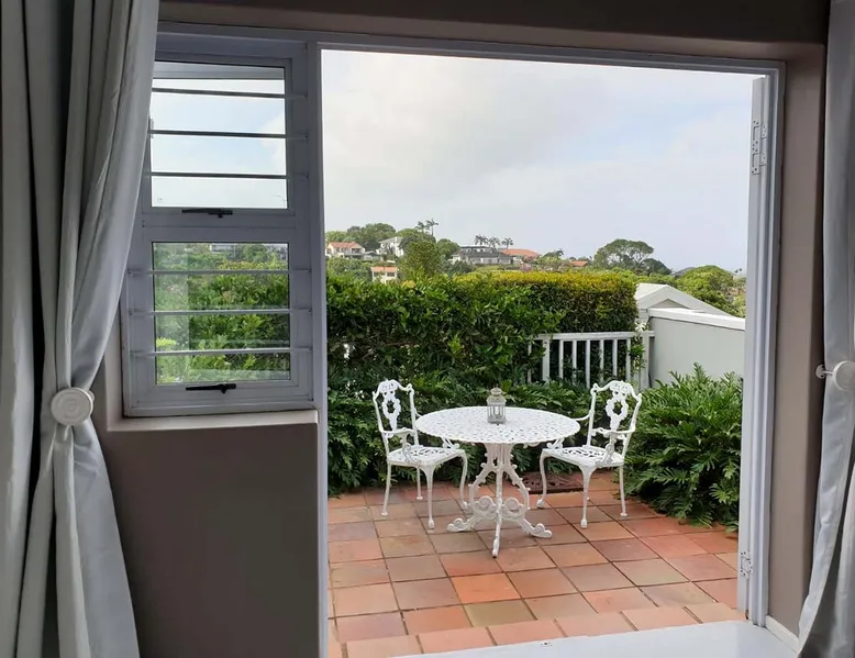 Fully self-contained, safe and private apartment, boasting gorgeous garden and seaviews in Durban North. Light and airy, with French doors opening from the bedroom onto a private patio overlooking a lush valley stretching out to sea. Positioned on a shared property, the unit is ideally situated close to shops & restaurants and 10 mins from Morningside on one side, and Umhlanga on the other. The property has back-up electricity and emergency water supply in the event of area outages. The space The apartment is modern and comfortable, with an air-conditioned bedroom (queen bed) leading out onto a private patio with lovely sea views. The unit has a spacious open-plan kitchen and lounge, including a small table for meals and/or use as a work station. The bathroom boasts a large walk-in shower. For those wanting an alternative to take-out and eating out, the apartment boasts a spacious and fully functional, equipped kitchen with granite tops, gas hob (no oven) and microwave, full fridge/freezer to ensure you can prepare home cooked meals. Place an advance order through Checkers Sixty60 or Woolies Dash for delivery and we’ll happily stock the fridge ready for your arrival. There is complimentary wifi with high-speed fibre connection, wide flatscreen TV and DStv Premium. Guest access The apartment, with separate and private access, is attached to the main house and shares a front garden and main street entrance, with secure, off-street parking in the driveway, available for one car. We live and work on the property and, while we are available at any time to assist you, we respect your privacy. Other things to note The Gatehouse is ideal for couples, solo travellers and business guests. It is particularly suited to women travelling alone, as we are always on site, the property is fully secured and the road is patrolled by a private security guard 24/7. A washing machine is available for use in the apartment, along with a drying rack, iron and board. For guests staying longer than a week, we offer a once-weekly free apartment cleaning service, including linen change. We also offer a laundry and ironing service during the week, at an additional fee. Family dog: staying at the Gatehouse involves sharing a common main garden and entrance with us and our friendly miniature English bull terrier. Although your space and patio is separate and private, and our dog is not able to access the unit, you will no doubt be greeted by him in the common garden as you come and go. If dogs are not your thing, the Gatehouse may not be the ideal stay for you. Loadshedding: We encourage guests to download the Eskom se Push app and select our current area zone (confirmed at time of stay) to keep abreast of outage periods during your stay. Some lights in the unit are longlife bulbs and will remain on during loadshedding. A powerful rechargeable Magneto lantern torch is available in the unit. A UPS device keeps wifi up and running for at least four hours during any outage, and the kitchen is fitted with gas. At certain times, where appropriate, a back up generator is used. Water issues: our area/region can experience unscheduled water cuts on rare occasions. Fortunately our property has a safe, back-up water system which allows for uninterrupted water supply to the unit during any area outage.