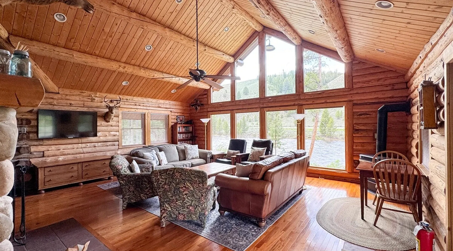 Beautiful rustic cabin in the heart of the Sawtooth Valley in Central Idaho. The space This cozy cabin features both rustic and modern touches. The proximity to everything the Sawtooths have to offer is unparalleled. Fish for your breakfast or dinner right out the back door. Cook your fresh trout on the wood-fired kitchen stove or on the grill. Sip your coffee or a cold beer on the porch while you watch bald eagles and osprey catch their next meal. Keep an eye out for "our" fox, who usually wanders by around dusk. Head out for a beautiful mountain hike with several trailheads within walking distance of the cabin. You will not find a better home base for all of your summer adventures than Casino Pines! Guest access The road from the highway is less than a mile long. Although it's a gravel road, it's easily traversed and does not require high clearance or 4WD. Guests access the cabin via a smart lock with a code unique to each stay. Other things to note This beautiful log cabin is one of just a few cabins located in the Sawtooth National Recreational Area, which sports world-famous fishing, white water rafting, and hiking. The free-standing cabin is on a private dirt road off Highway 75 just a few miles from beautiful Stanley, Idaho. Enjoy this relaxing getaway within walking distance of spectacular hikes, world-class fishing and rafting, or just relax in the mountain air on a porch or in a hammock with your favorite book! Fish for your breakfast out your back door and cook your catch on the beautiful vintage-style wood-burning stove in the kitchen. This cabin has a private main-floor bedroom with a queen bed as well as two sleeping lofts with two more queen beds, a full bed, and two single beds. In the scenic Sawtooth Valley, this clean and cozy cabin provides a beautifully appointed but rustic space where you can escape the hustle and bustle of daily life and relax to the sound of the rippling river and the wind in the pines. The cabin is neat and clean while also surrounding you with a mix of both vintage and modern touches. Central Idaho is an area unlike any other. Every path you find will lead you to areas that are so untouched by humans that you wonder if you are the only one who has ever been there. The rushing rivers and towering mountaintops are more impressive everywhere you look. The beautiful wilderness area in the surrounding area will call you outside for a day of hiking, fishing, swimming, and exploring. Afterward, you can spend a relaxing evening under the stars with people you love around the fire pit enjoying ghost stories and s'mores! Stanley is designated as a Dark Sky Reserve, where the stars are so bright it feels like you can reach out and touch them. Stargazing is an incredible way to spend one of your nights here. As the day comes to an end, the cozy fireplace, handmade quilts and fluffy comforters, and the logs harvested by hand from the property and used in the construction of the cabin will call you back in. Your dreams will be filled with the excitement of the day and anticipation of what tomorrow might hold. We hope you enjoy this heavenly place as much as we do! Be sure to check out or cabin website for more photos and information about what to do in the area!