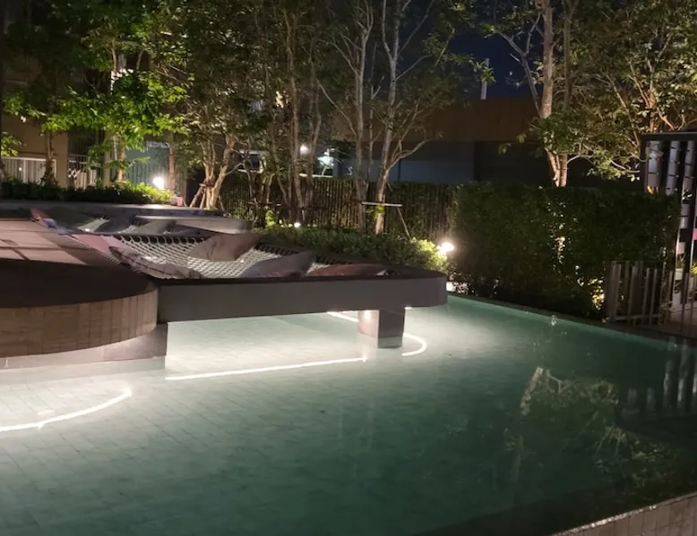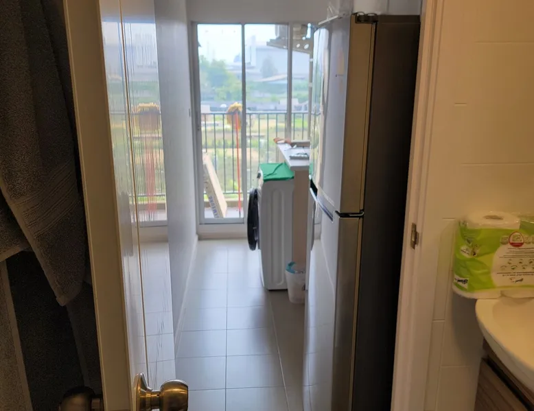 Great little place for a student or working professional. This is a condominium that is brand new. There is a pool, pond, gym, sauna, office area, meeting room area, movie theater. Unit is 27 sqm Free WIFI Large fridge 14 cu ft 43" Android tv 800 international channels incl. Posture Foam mattress vinyl sealed hypoallergenic Reverse osmosis water filter Microwave Rice cooker Induction stove Hot water maker Cooking and eating utensils Vacuum Iron and ironing board Fully furnished The space South facing room keeps cool. T.M. 30 visa paperwork included for 28 day stays or longer. Electricity water and Wifi included in price. Electricity typically runs ฿1000-฿1500 water ฿100 and WIFI ฿1000 Free... 7-11, 50 meters away Bangkok university 400 meters Future Park 10 minutes by cab Rangsit University 15 minutes Water, electricity, and internet fees are already included in the cost of the accommodation. Clean and inviting room suitable for students or working people. Plum Condo is a brand new condo recently completed and is a famous brand from Pruksa. The room size is 27 sq.m. It has many facilities such as swimming pool, fitness center, sauna, multipurpose room, meeting room and home theater for entertainment and free WiFi in common area. And it's only 50 meters closer to 7-11. In-room amenities - 43 inch flat screen TV with internet access and 800 international TV channels - Mattress made of 5 feet foam, suitable for relaxing. - 14 cu. ft. large refrigerator - Washing and drying machine - Drinking water purifier -Electric rice cooker - Microwave - pans and cooking pots - Water heater - Vacuum cleaner - Electric stove for cooking - Steam iron and ironing board Only 500 meters to Bangkok University!!! Guest access Community areas must be reserved through phone application. Other things to note The shuttle bus runs every 15 minutes from the 7-11 to the main road for public transportation. Starts at 6:30 am. If you have a vehicle you must notify before checking in. Motorbike parking is free car parking has expense.