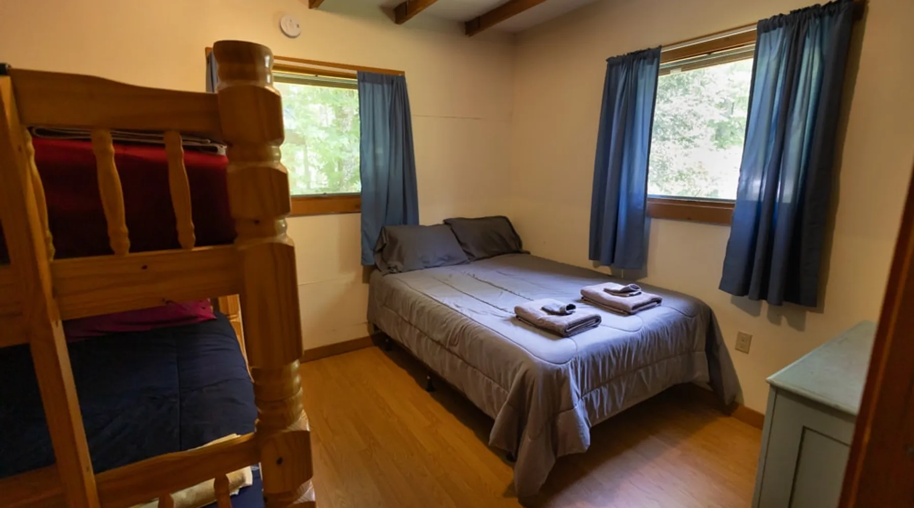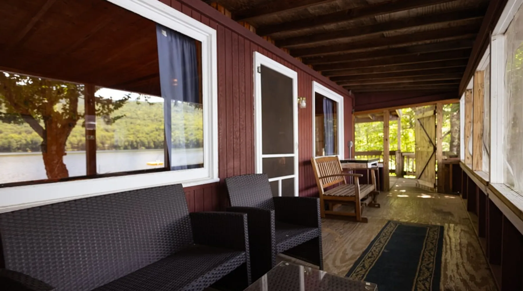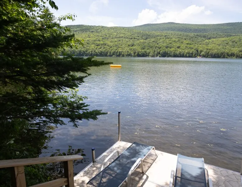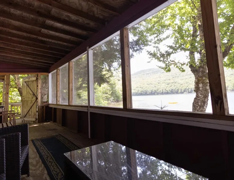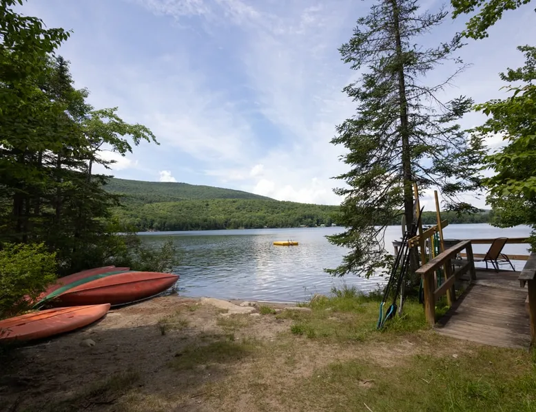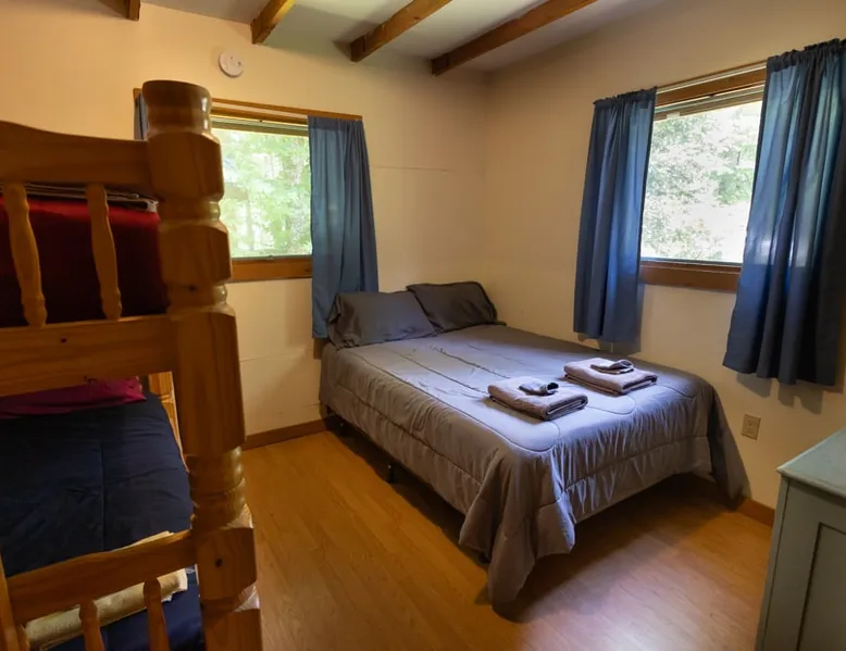 Enjoy expansive views of Lake Armington from the screened in porch, and swimming with Fido (maximum 1 dog) from the gently sloping sandy beach area. Have fun casting from the attached private dock (sorry, no motorized boats) or traversing the lake on the included paddleboards, canoes or kayak (shared with 3 other cabins at the beach area).
