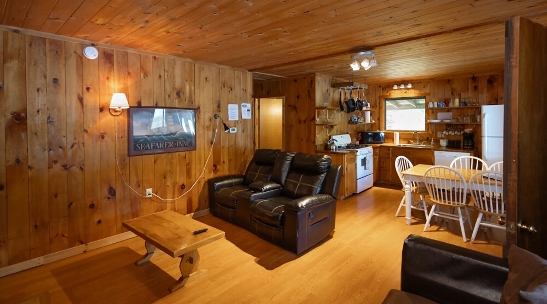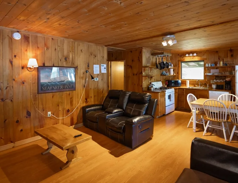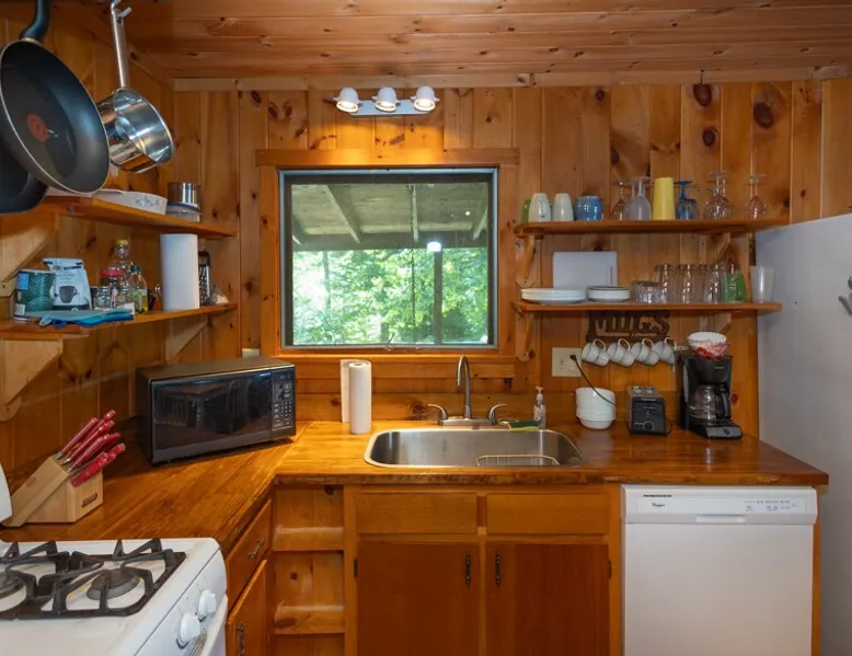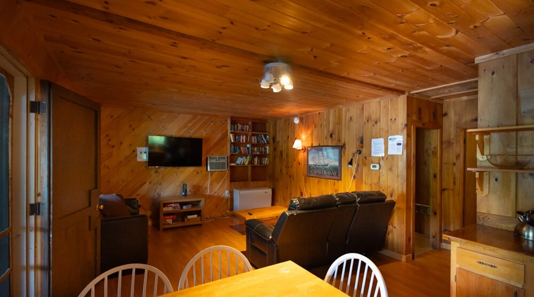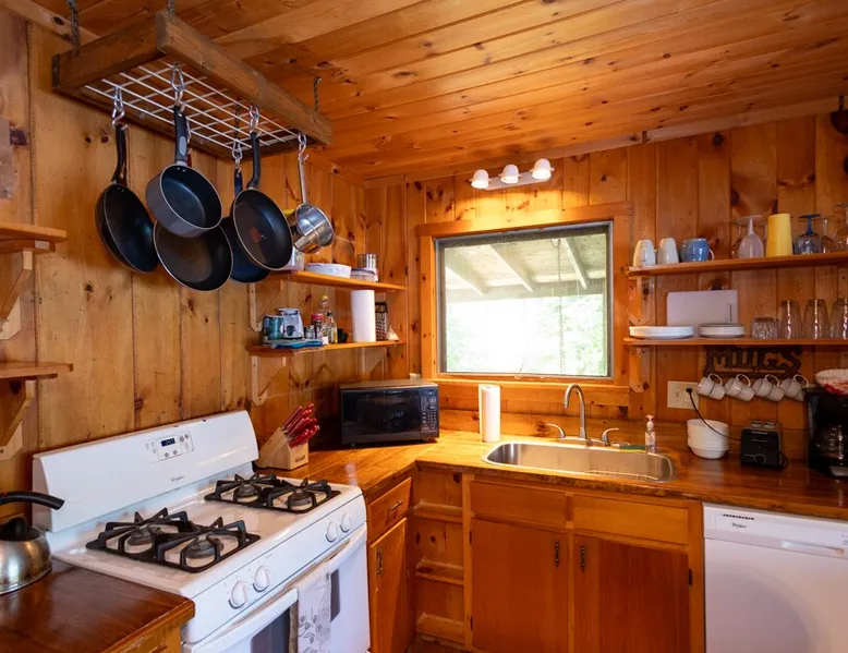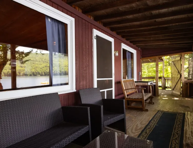 Enjoy expansive views of Lake Armington from the screened in porch, and swimming with Fido (maximum 1 dog) from the gently sloping sandy beach area. Have fun casting from the attached private dock (sorry, no motorized boats) or traversing the lake on the included paddleboards, canoes or kayak (shared with 3 other cabins at the beach area).