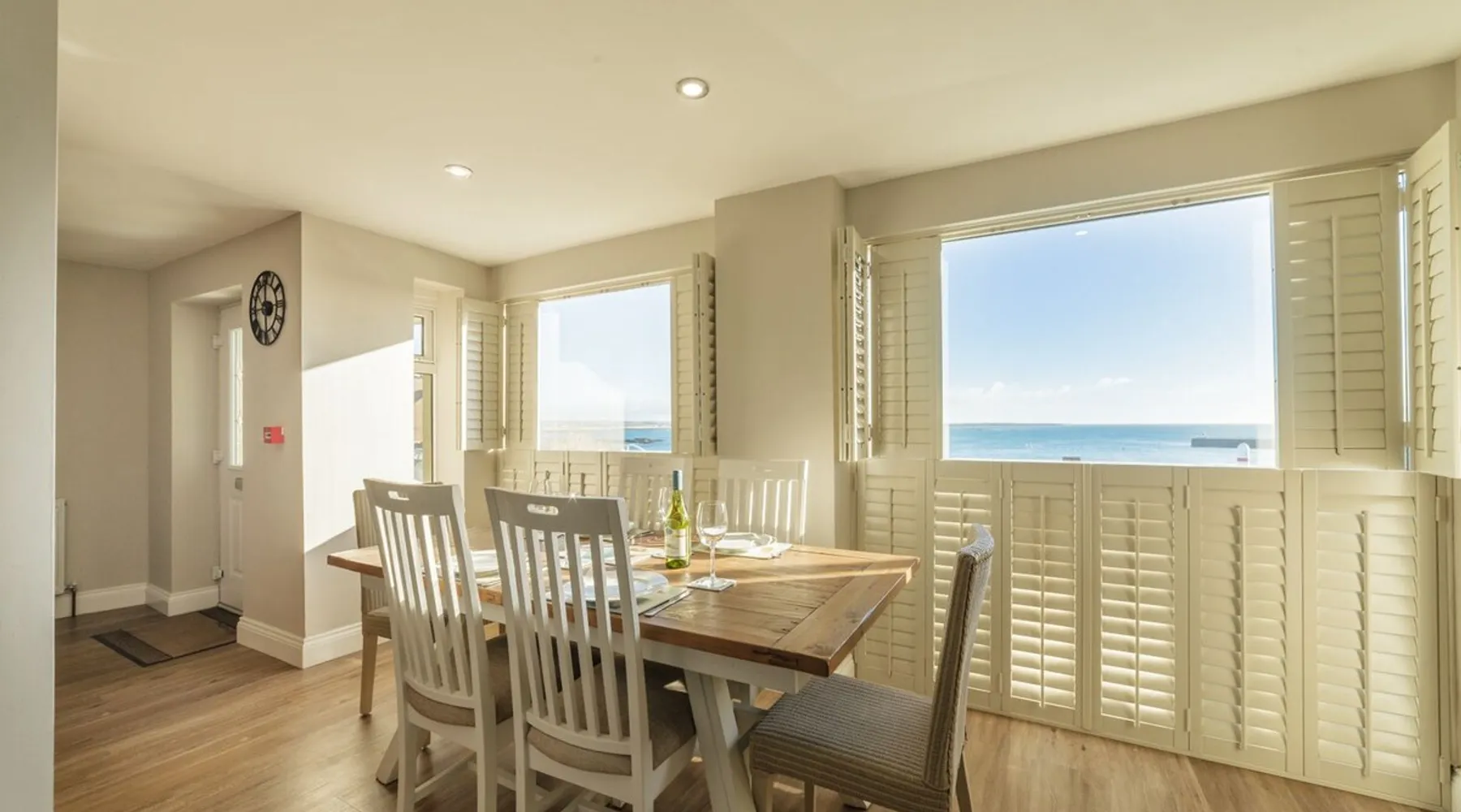 Carrick Bay Apartment is a stylishly appointed single level ground floor self-catering apartment in Port St Mary, Isle of Man. Guests can experience the spectacular views stretching across Port St Mary bay all the way towards Castletown and the Langness peninsula. Carrick Bay Apartment is perfect for a small family or group looking to enjoy the south of the Isle of Man. It is also pet friendly, accepting two well-behaved dogs. Visit Isle of Man rating: 4 Star Gold The space The open-plan living area which extends round to the kitchen is comfortable and the large shuttered windows allow plenty of natural light in to the apartment, making it an especially pleasant area to socialise in. The apartment features two bedrooms, one king-size and one twin, and two bathrooms with walk-in showers, one of which is an en-suite. Holiday Let features Kitchen: Oven, hob, fridge with ice box, dishwasher, microwave, washer/dryer, toaster and a Nespresso coffee machine. Lounge: Large comfortable corner sofa, one chair, TV and coffee table. Bedroom 1: King size double bed, built in wardrobe, bedside tables, dressing table, hairdryer, mirror and stool En-suite bathroom: Shower, wash hand basin and WC Bedroom 2: Twin beds, built in wardrobes, bedside tables, dressing table, hairdryer, mirror and stool Bathroom: Shower, wash hand basin and WC Parking: Private parking space available to the rear of the property. Changeover Day: Flexible - arrival 4:00pm - departure 10:00am. Pets: 2 well-behaved dogs accepted (not in the bedrooms). Baby Equipment: Cot and high chair can be hired on booking. Power & Heating: Heating & Electricity included Wifi: Unlimited free Wifi included Bedding & Linen: Bed linen and towels provided, please bring your own beach towels. Shop: 0.2 ml Pub: 0.1 ml Bus Stop: 0.01ml Accessibility: This is a ground floor apartment with two walk-in showers. There are two steps up into the property from the front and steps down to access the property from the rear private car park. Damage: Important! We are committed to protecting our properties which is why we now take a £35 fee from each booking as a damage waiver. This is included in the price you pay and covers you for up to £500 worth of accidental damages to the property that could occur whilst you are staying. Registration Details 654824