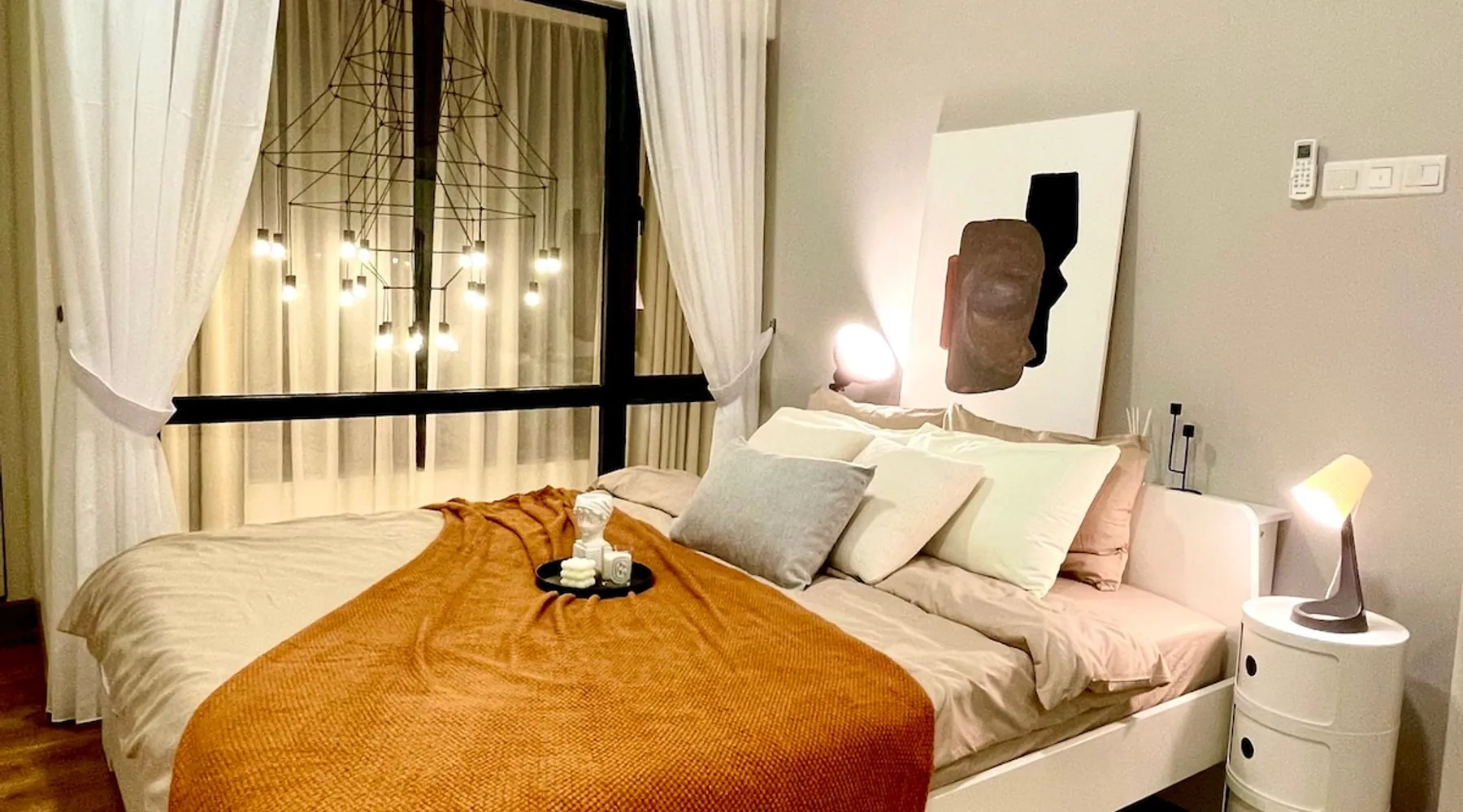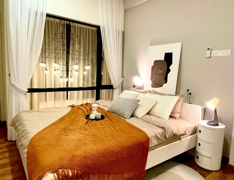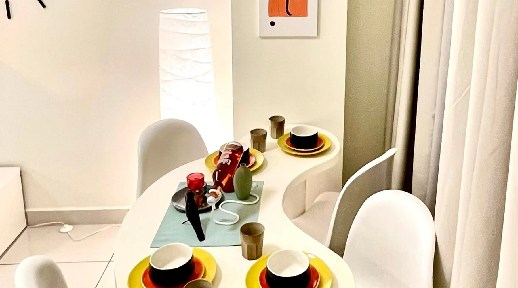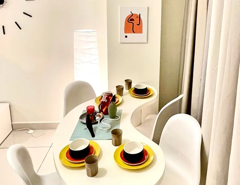 The design of Frankenthaler was inspired by the art museums. At Frankenthaler, we feature abstract furniture and fittings which are aesthetically pleasing yet functional. The artistic 2-bedroom duplex is the sublime fusion of relaxing spaces and artworks. It is set to give the staying guests a vibrant lift from the hectic and routine lifestyle. The space Interior Design & Furnishings List: Foyer • Door bell • Surface LED eyeball Entrance • 3-colour switchable led surface light • Hanging shoe rack • Magazine rack with mock magazines Living Room • Art exhibition designer 3-seater sofa • Y-Shape designer 1-seater sofa • TV Cabinet • Wall hung art canvas • Art canvas on the TV cabinet • Designer stand lamp • Designer irregular stackable storage box • Designer metal swinging chair • Designer irregular lines living room carpet • Art exhibition themed decorations • 3-colour switchable LED surface light • Designer huge wall clock • Designer cloud-like piano finishing coffee table • Wall hung picture frames • Designer day & night curtains for double volume ceiling height • Designer Paper-made Japanese standing lamp • 2 hp air conditioner • Khind tower fan Kitchen • Toshiba front load 7.5kg & Toshiba 7kg dryer (hidden under the newly extended island cabinet) • Hood + Hob (electric stove) • Decorations • Kitchen cabinet • Hisense 2-door refrigerator, net capacity: 255 litres • 3-colour switchable LED surface light • Kitchen sink Dining Area • Designer irregular piano finishing dining table • Cutleries, ceramic plates & cups • Dining table decorations • Wall hung art canvas • Designer dining chairs • Designer art themed hanging light Power Room • Toilet mirror (96cm x 100cm) • Toilet bowl • Bidet • LED daylight surface light • Washing basin Staircase • Exhibition box with art piece • Decoration signage • Designer wall 2-way light Corridor • Warm white LED surface light Master Bedroom • Designer queen size bed frame & mattress, attached with bed frame, blanket • Designer bedside designer lamp • Xiaomi designer Wi-Fi standing fan • Plenty of pillows • Throw blanket • Bed decorations • Designer double sliding door loose wardrobe (236cm height x 200 width x 60cm depth) • Wall hung picture frames • Full height day curtain • 1 hp air conditioner • Warm white LED surface lights • Bedside designer storage column box • Designer bedroom carpet Master Bedroom En-suite Bathroom • Toilet mirror 96cm x 100cm • Toilet bowl • Water heater shower • Washing Basin • Wall hung picture frame Junior Bedroom • Designer queen size pull-out sofa bed • Designer bedside clamping table lamp • Designer bedside storage column box • Open concept horizontal shelving unit • Decorations on the shelving unit • Wall hung picture frames • 1 hp air conditioner • 1 exhaust fan • Warm white LED surface light • Xiaomi Designer Wi-Fi standing fan • Throw sofa pillows • Extra bed pillows • Decorated sofa cloth • Designer bedroom carpet Guest access Easy access to: • Jalan Duta; • DUKE (Duta-Ulu Kelang Expressway); • NKVE (New Klang Valley Expressway); • PLUS highway; • Federal highway; • Penchala Link Surrounding Amenities under 10 minutes driving distance based on Maps assuming smooth traffic: • BilaBila Mart Convenience Store (at Arte Mont Kiara Ground Floor) • Arté 66 Restaurant & Bar (at Arte Mont Kiara Level 66) • Zetter Suite Professional Hotel Operator (at Arte Mont Kiara) • Kompleks Kementerian Dalam Negeri, drive 4 minutes, 1.9km • Jalan Solaris banks, commercial shop-office & restaurant, drive 4 minutes, 1.5km • Publika banks, commercial shop-office & restaurants, drive 5 minutes, 1.8km • Future MRT Circle Line Underground Station at MATRADE (will commence operation in 2027), drive 5 minutes, 1.1km • Mont Kiara International School, drive 4 – 6 minutes, 2.5km • Kiara 163 Retail Park, 7 – 10 minutes, 3.1km Parking Lot at Level B2, 1 covered car park provided