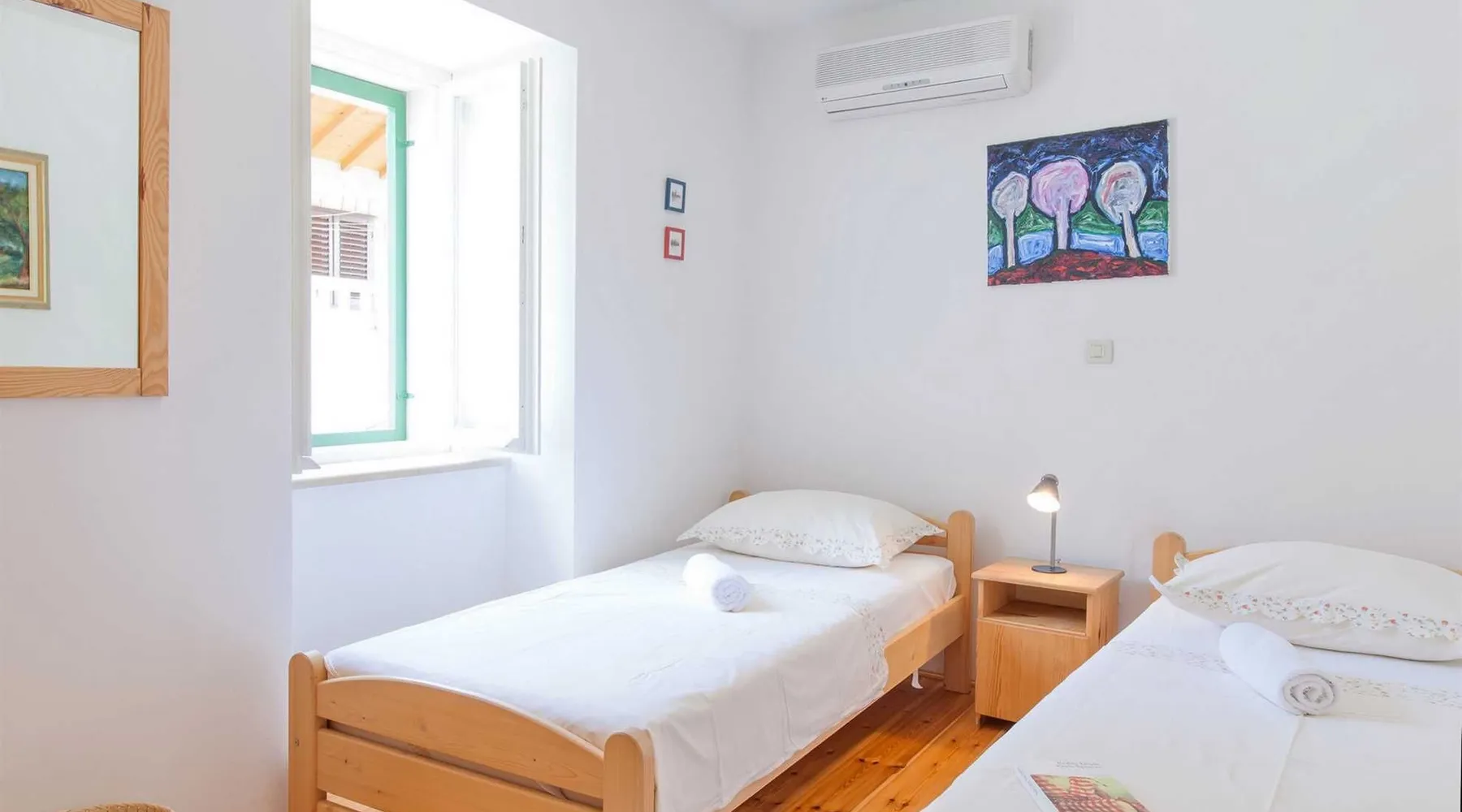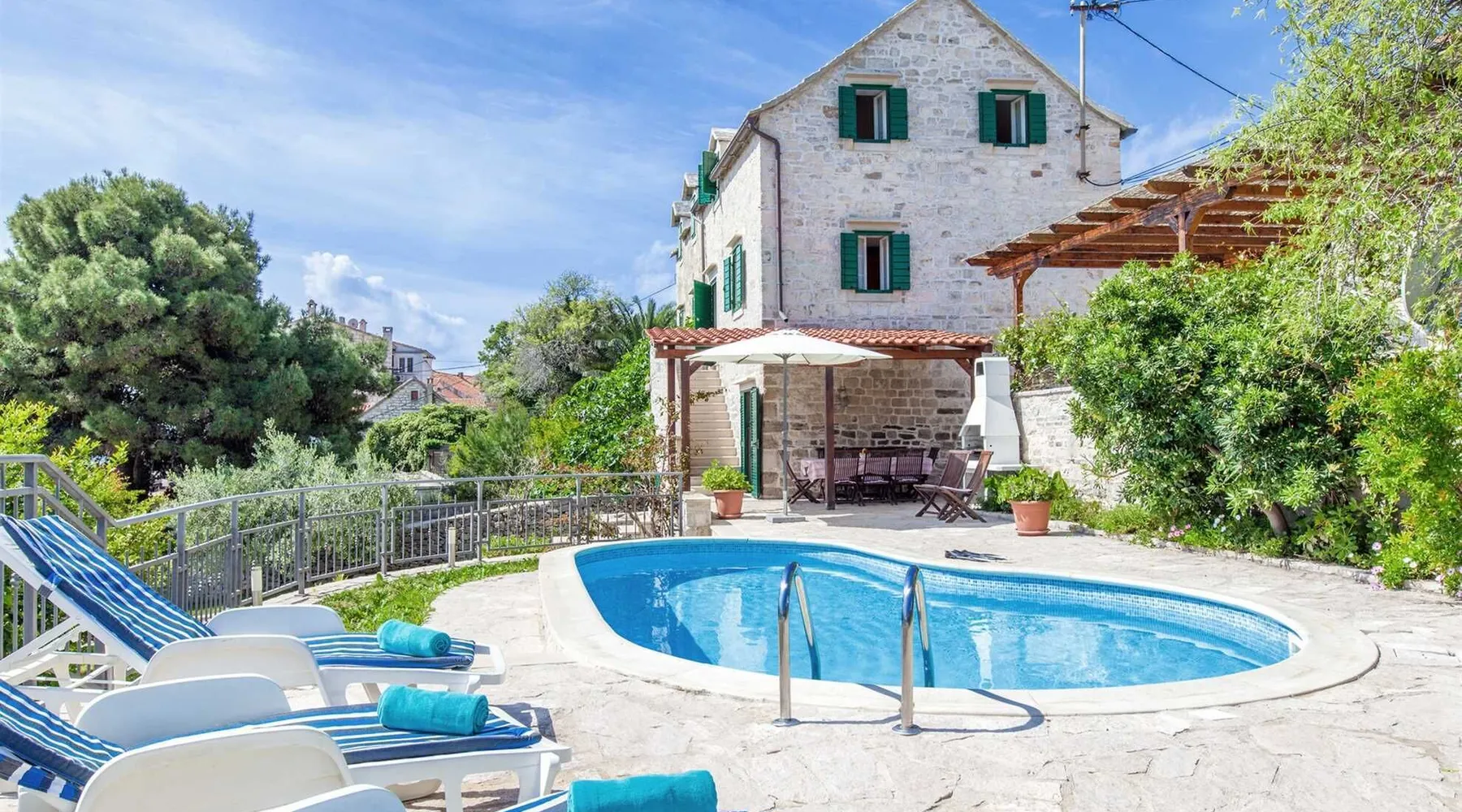 Located in the center of Sumartin, villa under the name which in Croatian means „tranquility”, has everything you need on your vacation: beautiful view of the sea, vicinity to the beach, ferry and bus station, and it is surrounded by numerous bars, taverns - restaurants of traditional Dalmatian food, and supermarkets. If you ever wondered whether it is possible to buy fish taken from the sea in that given moment, we give you the answer: it's possible! And it is possible right here: this traditional stone house is located in the port where fishing boats full of seafood arrive daily. You can buy them right from the friendly fishermen or at a nearby store. Of course, do not feel obligated to swim in the sea (although we heartily recommend that you jump into our clean sea) because the villa, in its carefully landscaped garden, has a pool (heatable) with deck chairs which you can use after lunch on the terrace with a magnificent view of the islands and the whole place. Beautiful view is provided from the upper floors where the bedrooms are: two with double beds and bathroom and a bedroom with two single beds will give you a perfect feeling of home because of the wooden furniture and a small but consistent and modern regulated space. *Extra cleaning upon request: 250 EUR *Tourist tax payable in advance or upon arrival: 2.5 EUR/ person/ night , one time registration fee 10 EUR per booking. Welcome to our apartment in Sumartin, a quaint and serene town on the beautiful island of Brač, Croatia. The town offers a variety of activities and attractions for you to explore during your stay. Just a short 5-minute walk from the apartment, you’ll find gorgeous pebbly beaches, perfect for a relaxing day of sunbathing. The area is also home to several local restaurants offering authentic Croatian cuisine, with a focus on fresh seafood, a nod to Sumartin’s long fishing tradition. Take a short stroll to the Franciscan Monastery, where you can admire its beautiful architecture and explore the museum, which houses church artifacts, an ethnographic collection, and rare books in the library. For nature lovers, Sumartin is surrounded by stunning landscapes ideal for cycling and hiking. Enjoy scenic trails leading to spots like the St. Roko hilltop chapel, offering breathtaking views. A short ferry ride takes you to Bol, home to the famous Zlatni Rat (Golden Cape) beach. You can also catch a daily ferry service to Makarska on the mainland for more exploration. Sumartin's crystal-clear waters are perfect for a range of watersports, including diving, snorkeling, sailing, and kayaking. For a unique local experience, consider joining a wine and olive oil tasting tour, where you can visit local wineries and olive oil producers to learn about their craft and sample their products. Sumartin is located on the eastern tip of Brač Island, and a car is recommended to explore further. Discover natural wonders like Vidova Gora, the highest peak in the Adriatic, and the stunning Lovrečina Bay beach. Don’t miss the vibrant local market, where you can pick up fresh produce, local delicacies, and souvenirs. For those interested in fishing or boat tours, there are local trips available to take you around the islands. In Sumartin, you’ll enjoy the perfect blend of tranquility, warm hospitality, and the charm of this captivating island destination.