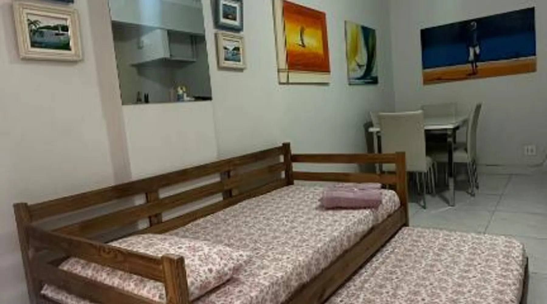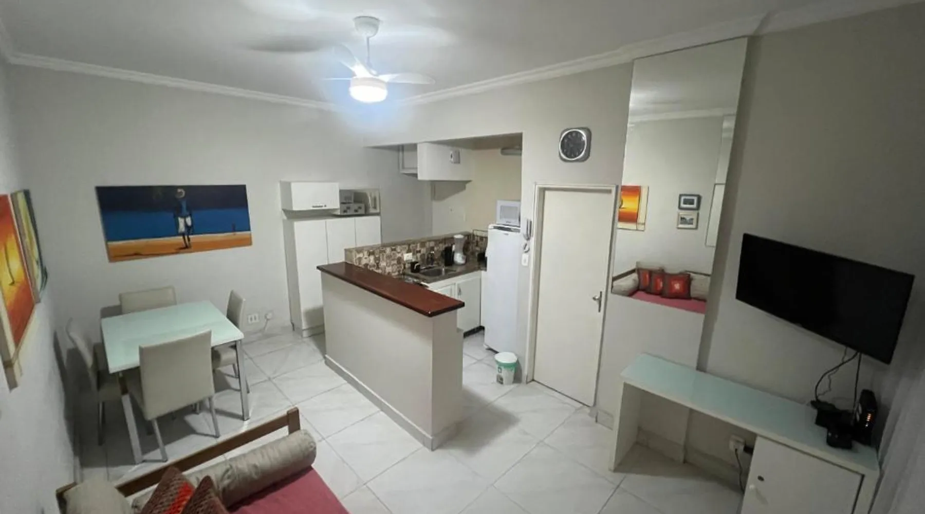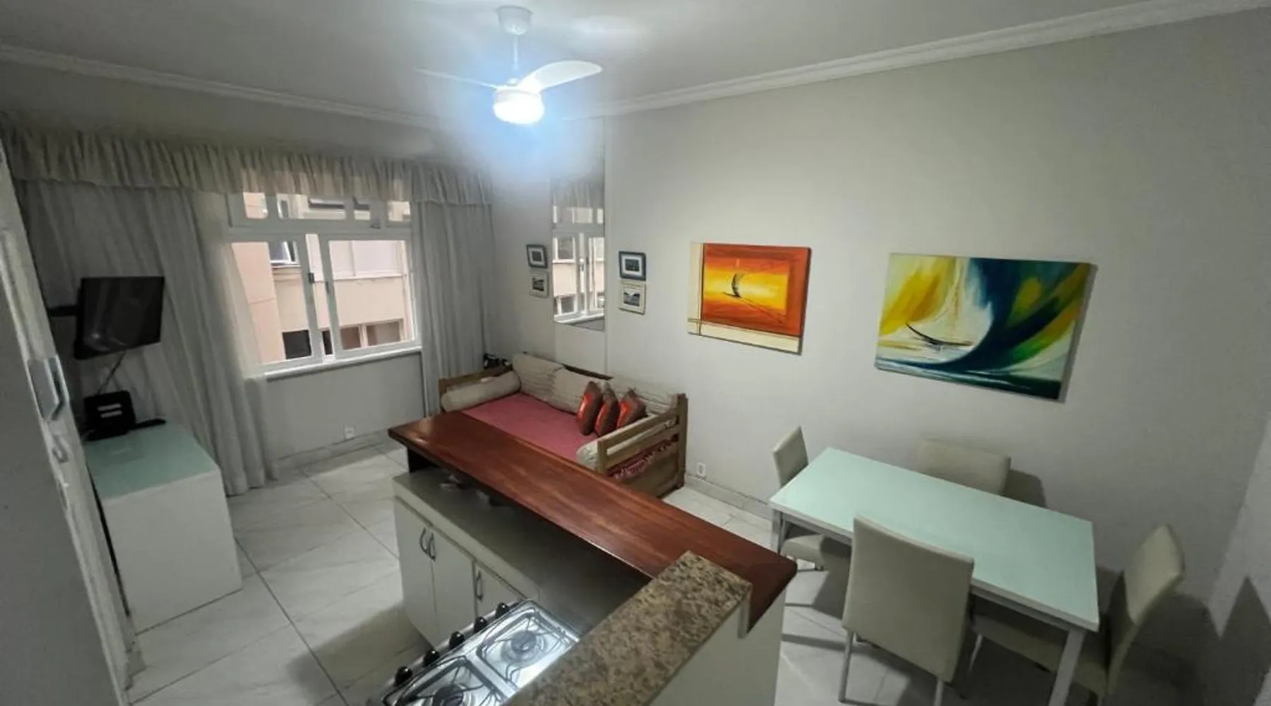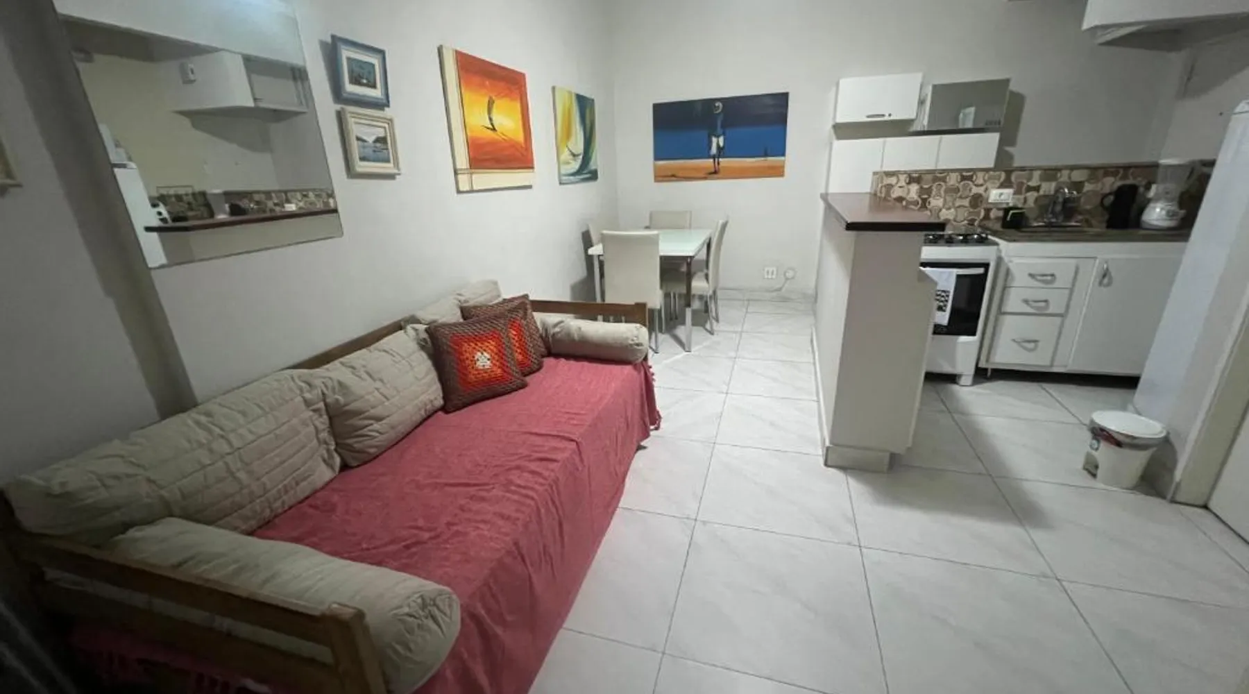 Beachfront Location: Aconchegante Beira-Mar Copacabana Passos da Praia in Rio de Janeiro offers direct beachfront access and stunning sea views. Copacabana Beach is just a 4-minute walk away, while Rodrigo de Freitas Lake lies 2.4 mi from the property. Comfortable Accommodations: The recently renovated apartment features one bedroom, one bathroom, and a spacious living room. Guests enjoy air-conditioning, a fully equipped kitchenette, washing machine, and free WiFi throughout the stay. Convenient Facilities: The property includes a elevator, full-day security, and a dining area with a table and chairs. Additional amenities include a sofa bed, parquet floors, and a TV, ensuring a comfortable and relaxing stay. Nearby Attractions: Santos Dumont Airport is 6.2 mi away, while Sugarloaf Mountain and Rio de Janeiro Botanical Gardens are within 3.1 mi. Guests can also enjoy kayaking or canoeing in the surrounding area. This air-conditioned apartment includes 1 living room, 1 separate bedroom and 1 bathroom with a shower. In the kitchen, guests will find a stovetop, a refrigerator, kitchenware and an oven. The apartment offers a washing machine, a dining area, a wardrobe, a flat-screen TV with cable channels, as well as an inner courtyard view. The unit has 2 beds.