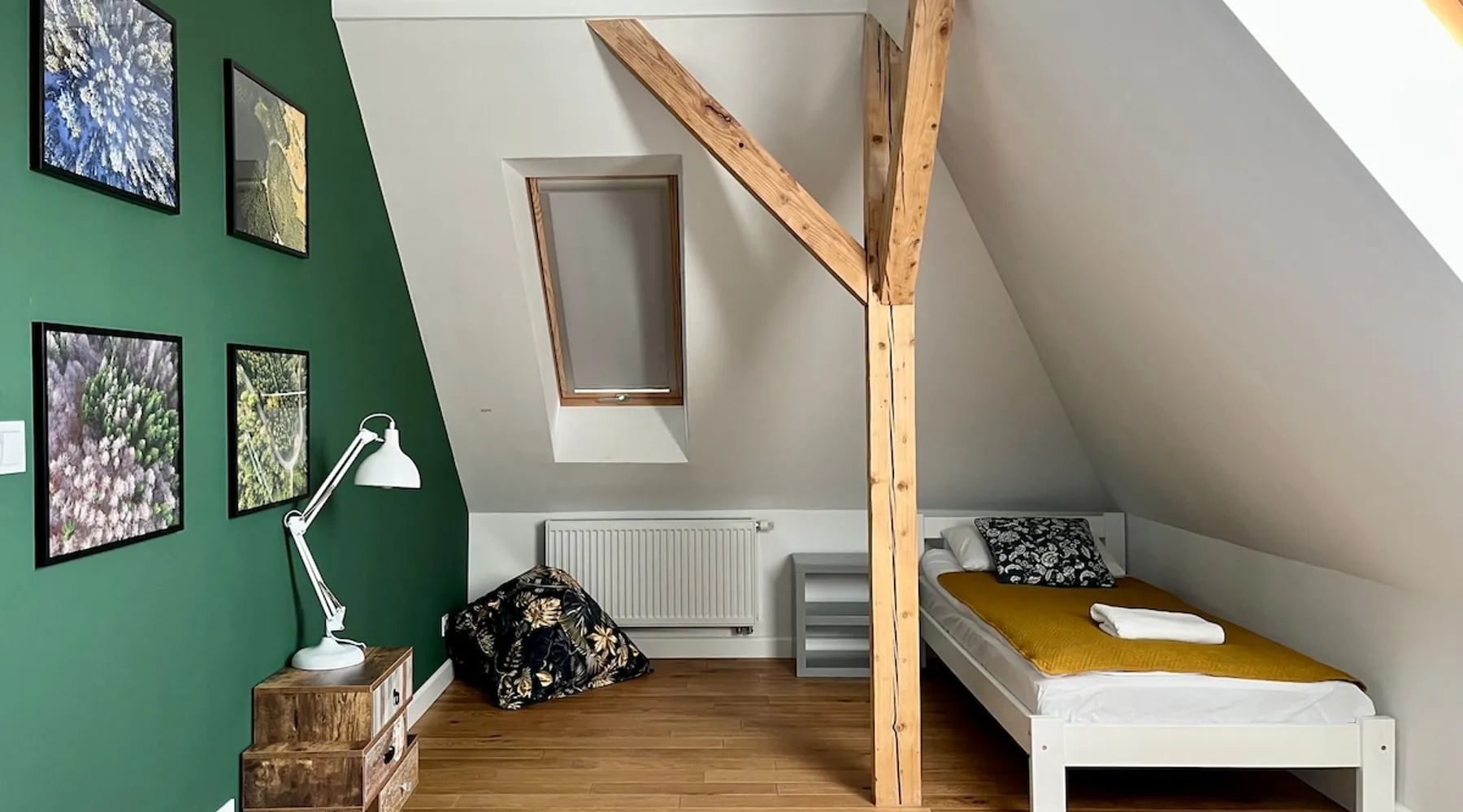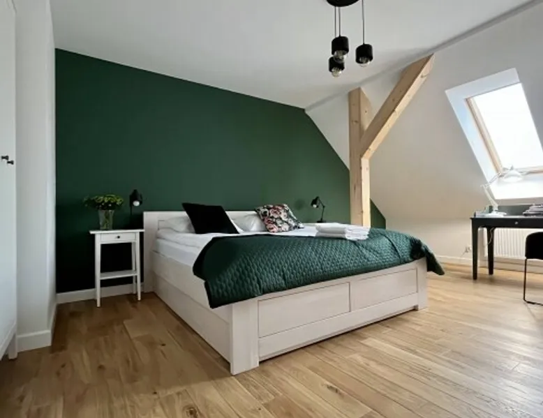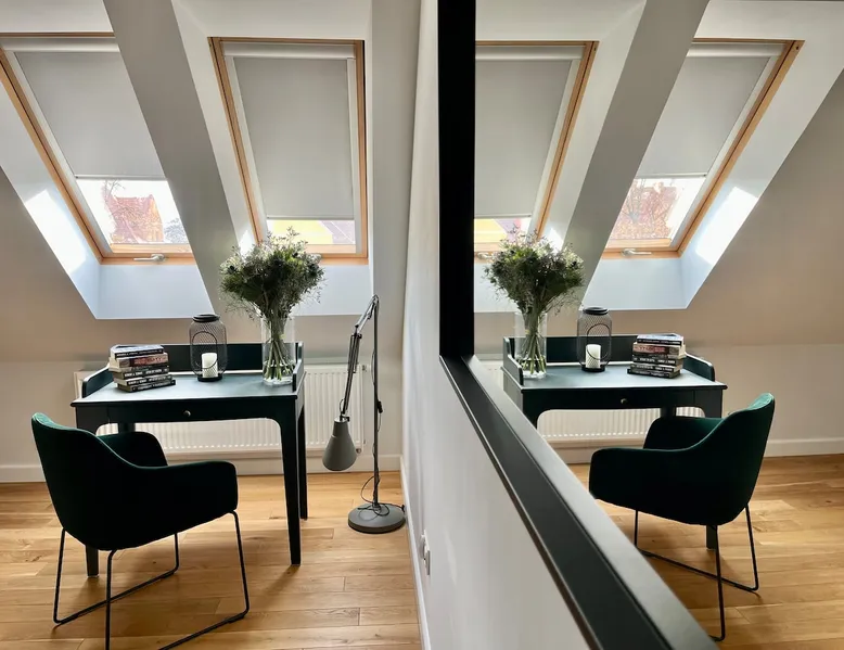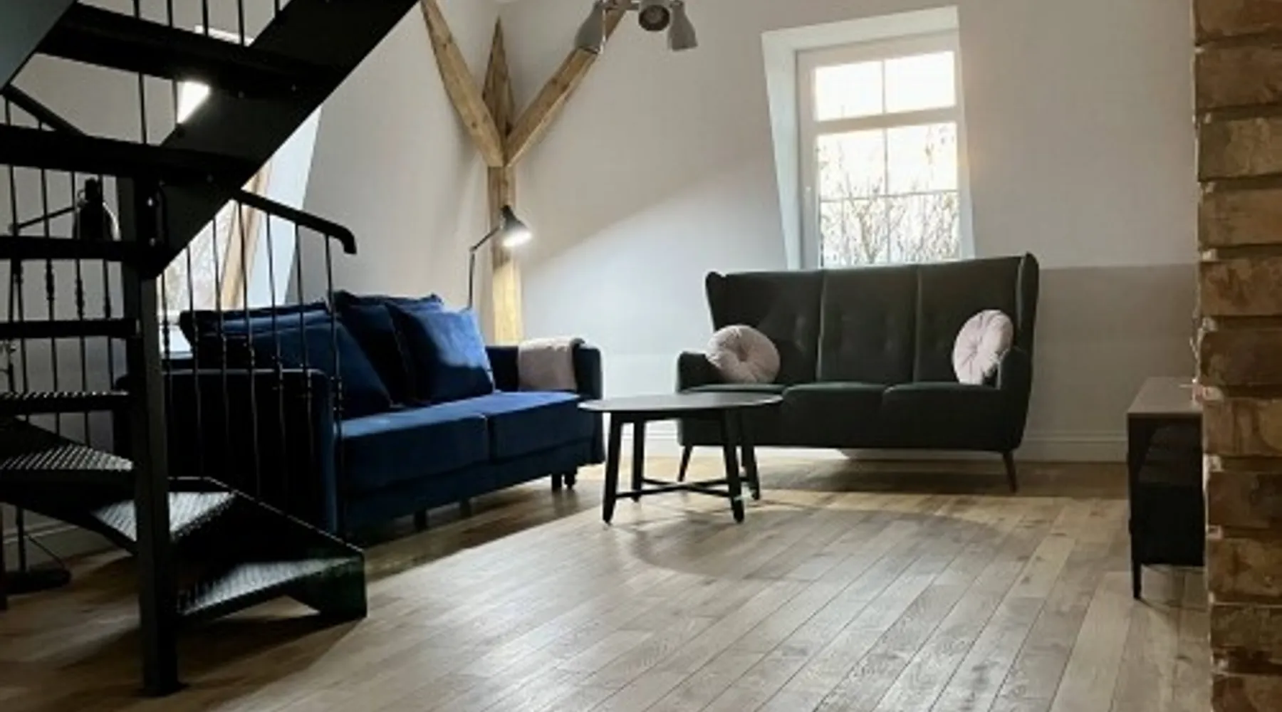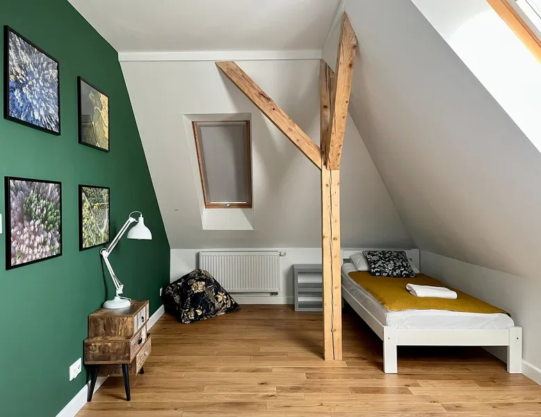 Our “lemon band” was joined by author of fantasy and science fiction books Robert J. Szmidt. Our adventure with this author began with the “Apocalypse according to Mr. Jan,” but readers also know him from the Pola cycle of long-lost battles or the Rat of Wrocław. The Rats of Wrocław , Robert J. Szmidt was invited to participate in the Metro 2033 project, a universe created by various authors around the world created by Dmytr Glukhovski. The space Robert J. Szmidt's apartment is located in a centuries-old, perfectly preserved and restored brick brick tenement house. The works carried out with a renowned architectural studio and under the supervision of the conservator of monuments led to the creation of the most beautiful tenement house of Jelenia Góra. Staircases have preserved original railings, wooden grab rails, granite stairs, restored doors, steel pickups with German smelter numbers. In each of the staircases, you'll find references to different periods of Leonardo da Vinci's work. The building looks like an elegant hotel from the early 1920s. Decorated with greatness, a two-story apartment that can comfortably accommodate five people. Wood floors, brick, white, and green are the guiding elements of the interior design, designed by a recognized architectural studio. Its area is 80 meters/kw far outweigh hotel suites. The apartment consists of a living room with two comfortable sofas, a separate kitchen, a bathroom with a shower, a toilet and two lockable bedrooms. One bedroom with a double bed and a separate workspace, the other with a double bed 140/200 and a single 90/200. Kitchen equipped with induction hob, fridge, electric kettle, Nescafe Dolce Gusto coffee machine and kitchen utensils Guest access Parking space assigned to the Apartment.