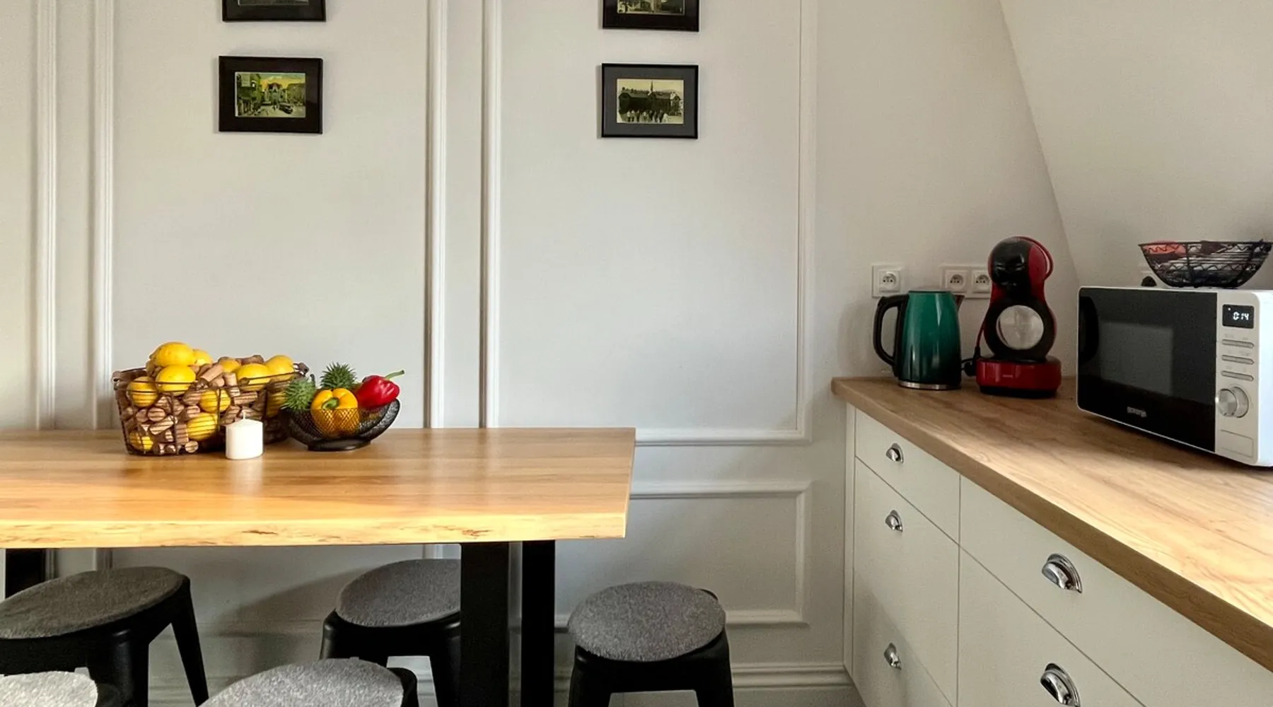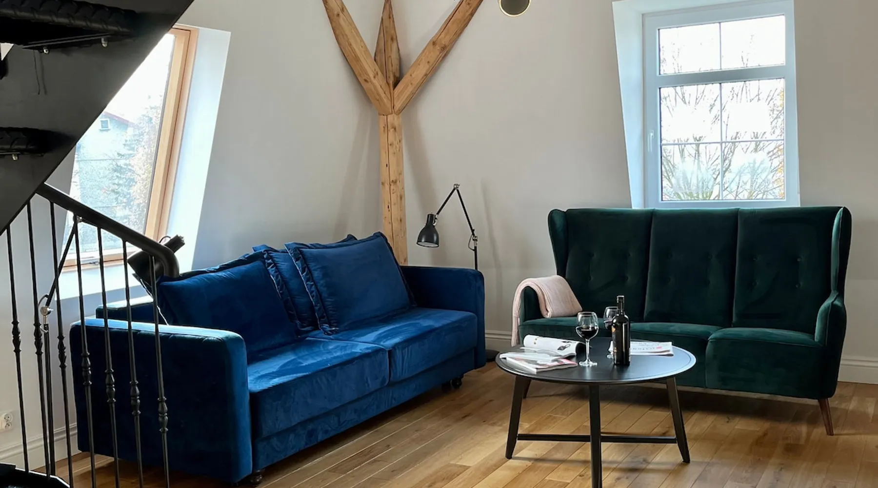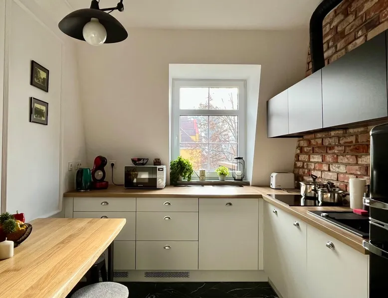Our “lemon band” was joined by author of fantasy and science fiction books Robert J. Szmidt. Our adventure with this author began with the “Apocalypse according to Mr. Jan,” but readers also know him from the Pola cycle of long-lost battles or the Rat of Wrocław. The Rats of Wrocław , Robert J. Szmidt was invited to participate in the Metro 2033 project, a universe created by various authors around the world created by Dmytr Glukhovski. The space Robert J. Szmidt's apartment is located in a centuries-old, perfectly preserved and restored brick brick tenement house. The works carried out with a renowned architectural studio and under the supervision of the conservator of monuments led to the creation of the most beautiful tenement house of Jelenia Góra. Staircases have preserved original railings, wooden grab rails, granite stairs, restored doors, steel pickups with German smelter numbers. In each of the staircases, you'll find references to different periods of Leonardo da Vinci's work. The building looks like an elegant hotel from the early 1920s. Decorated with greatness, a two-story apartment that can comfortably accommodate five people. Wood floors, brick, white, and green are the guiding elements of the interior design, designed by a recognized architectural studio. Its area is 80 meters/kw far outweigh hotel suites. The apartment consists of a living room with two comfortable sofas, a separate kitchen, a bathroom with a shower, a toilet and two lockable bedrooms. One bedroom with a double bed and a separate workspace, the other with a double bed 140/200 and a single 90/200. Kitchen equipped with induction hob, fridge, electric kettle, Nescafe Dolce Gusto coffee machine and kitchen utensils Guest access Parking space assigned to the Apartment.