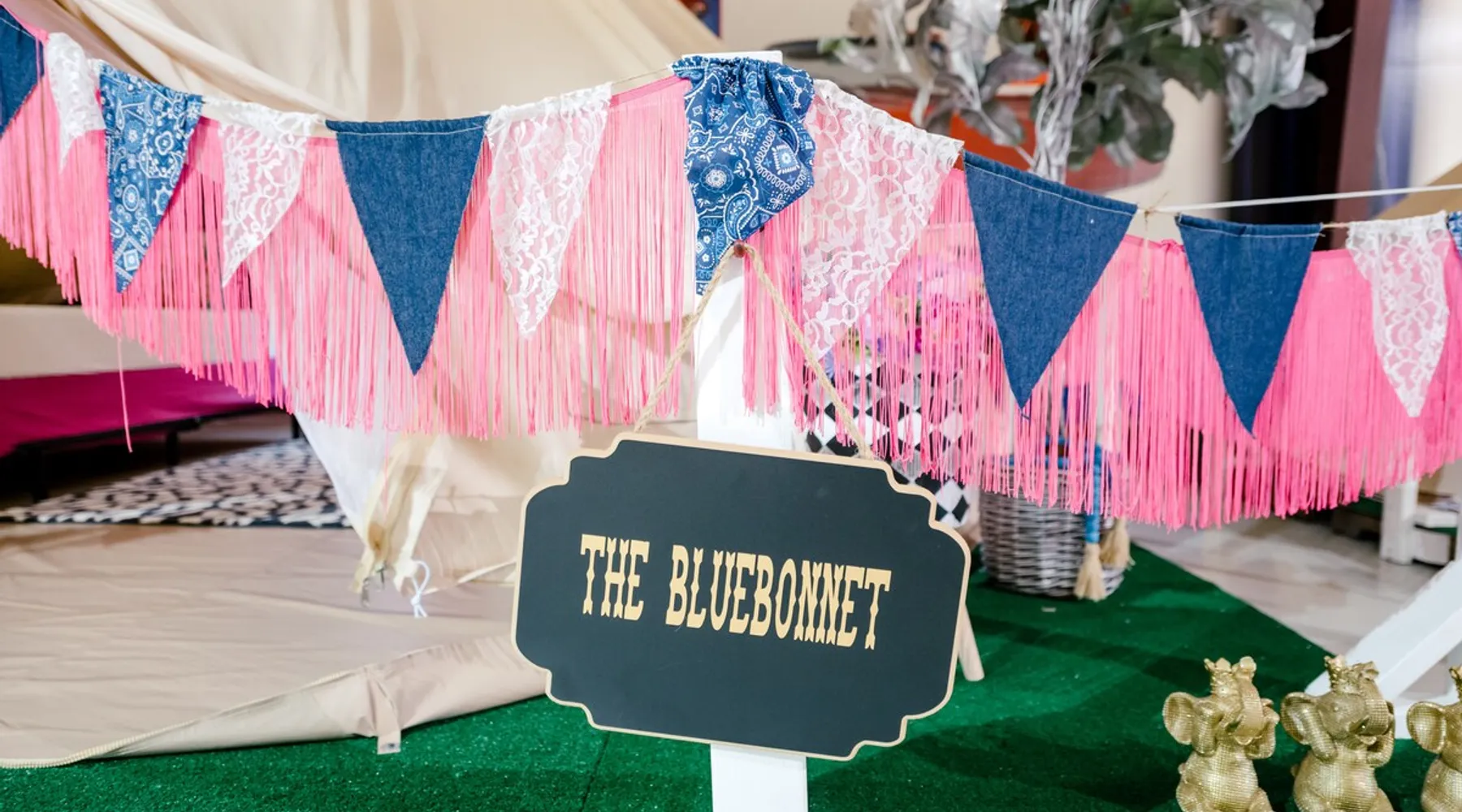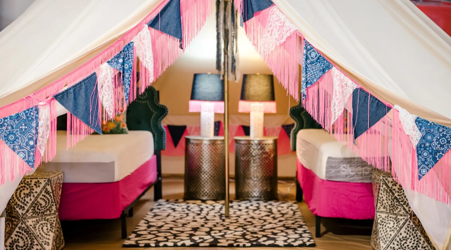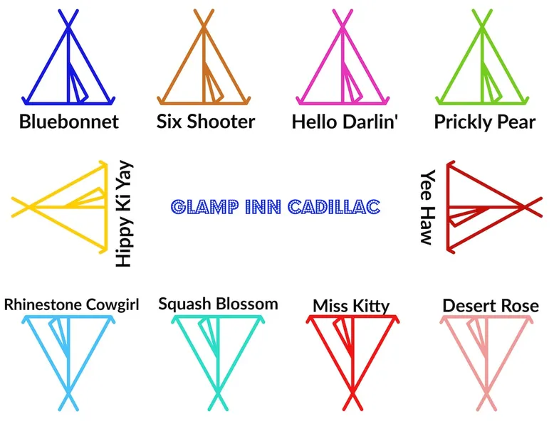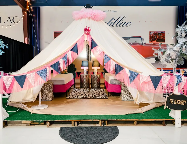 The Bluebonnet is located in the Glamp Inn Cadillac building, best suited for women during Antiques Week. Denim dreams reign supreme in this Texas-inspired tent. The Bluebonnet’s pretty lace and calming shades of blue embody the spirit of the official flower of the Lone Star State. Stay in the center of the action in this one-of-a-kind place. Please remember to pack like you're camping and BYOB, bring your own bedding and shower essentials.