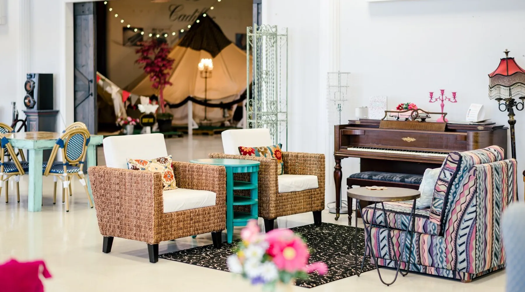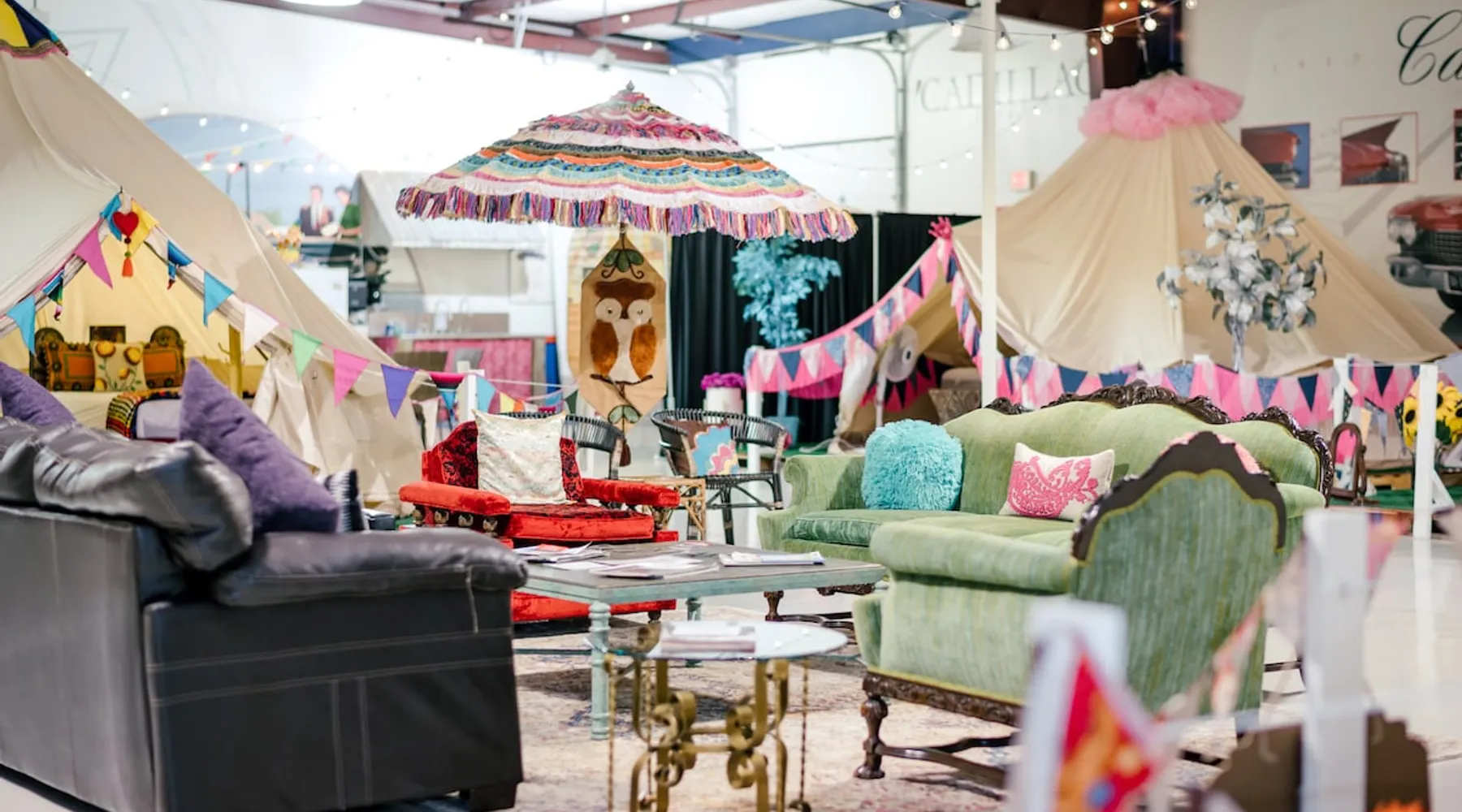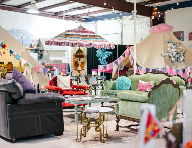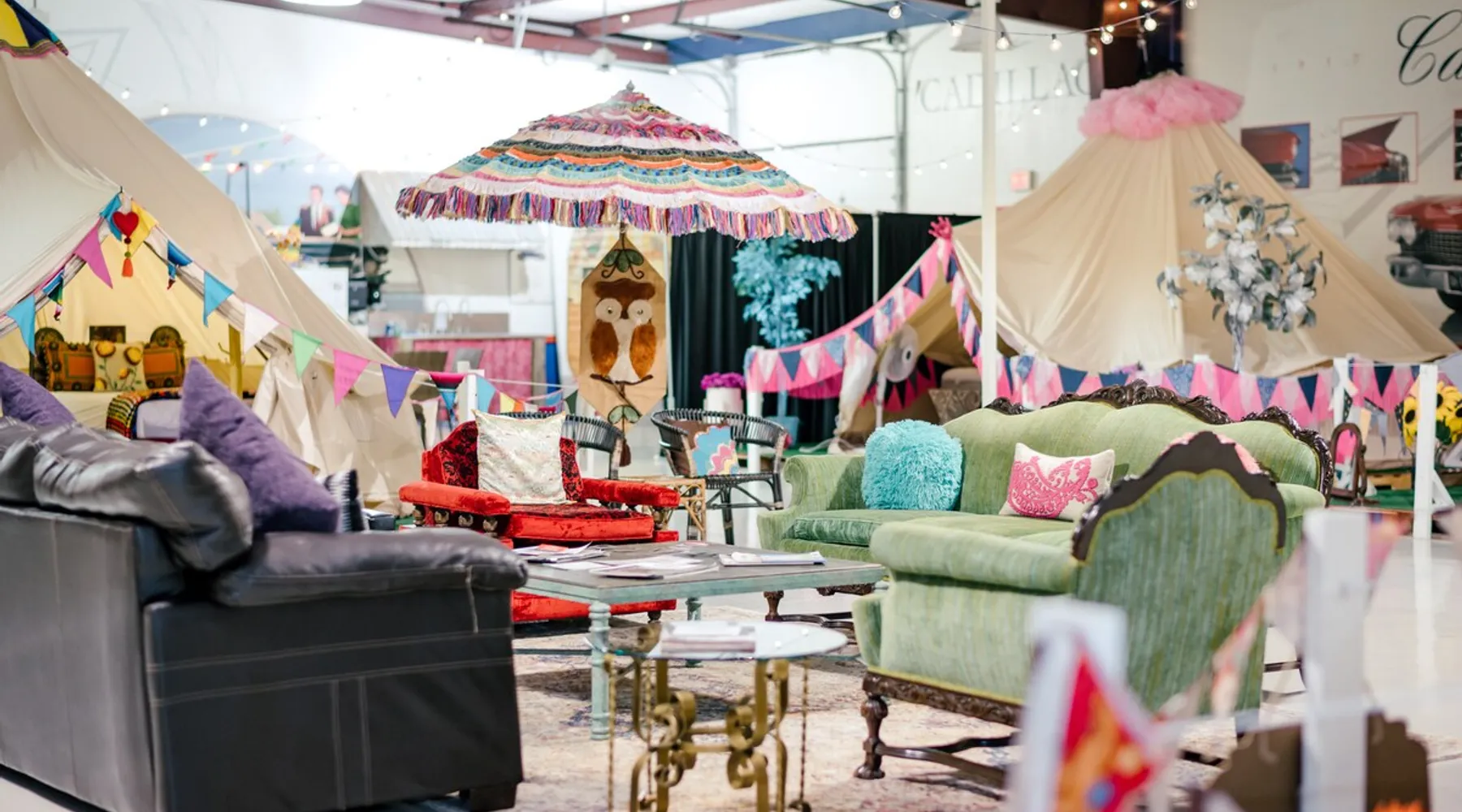 The Bluebonnet is located in the Glamp Inn Cadillac building, best suited for women during Antiques Week. Denim dreams reign supreme in this Texas-inspired tent. The Bluebonnet’s pretty lace and calming shades of blue embody the spirit of the official flower of the Lone Star State. Stay in the center of the action in this one-of-a-kind place. Please remember to pack like you're camping and BYOB, bring your own bedding and shower essentials.