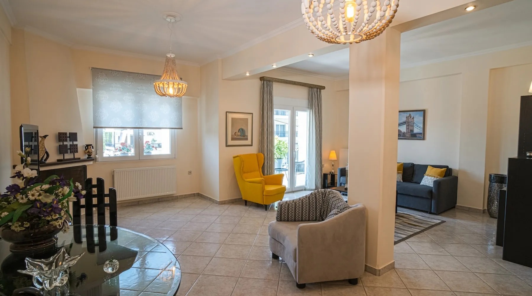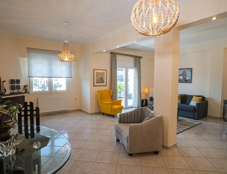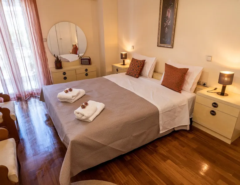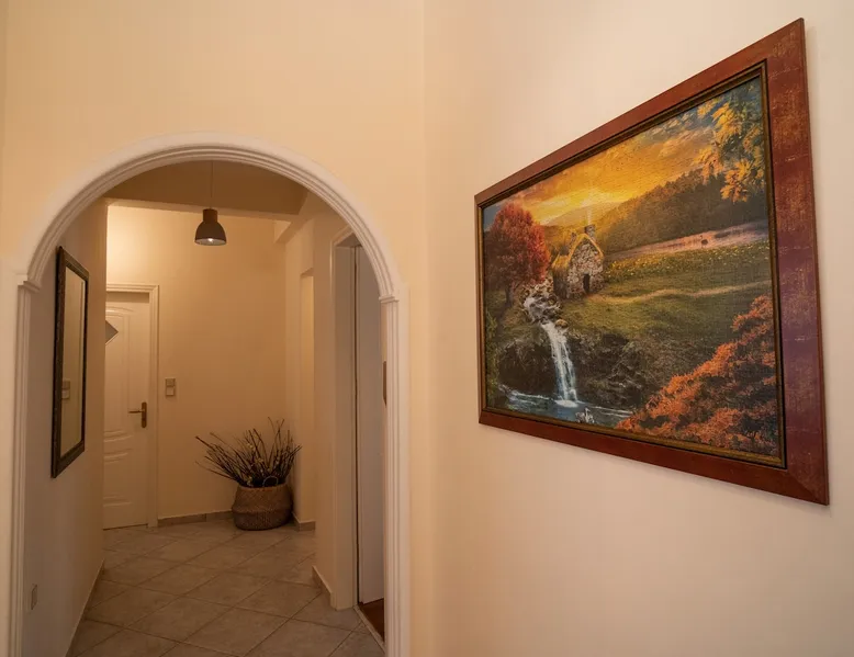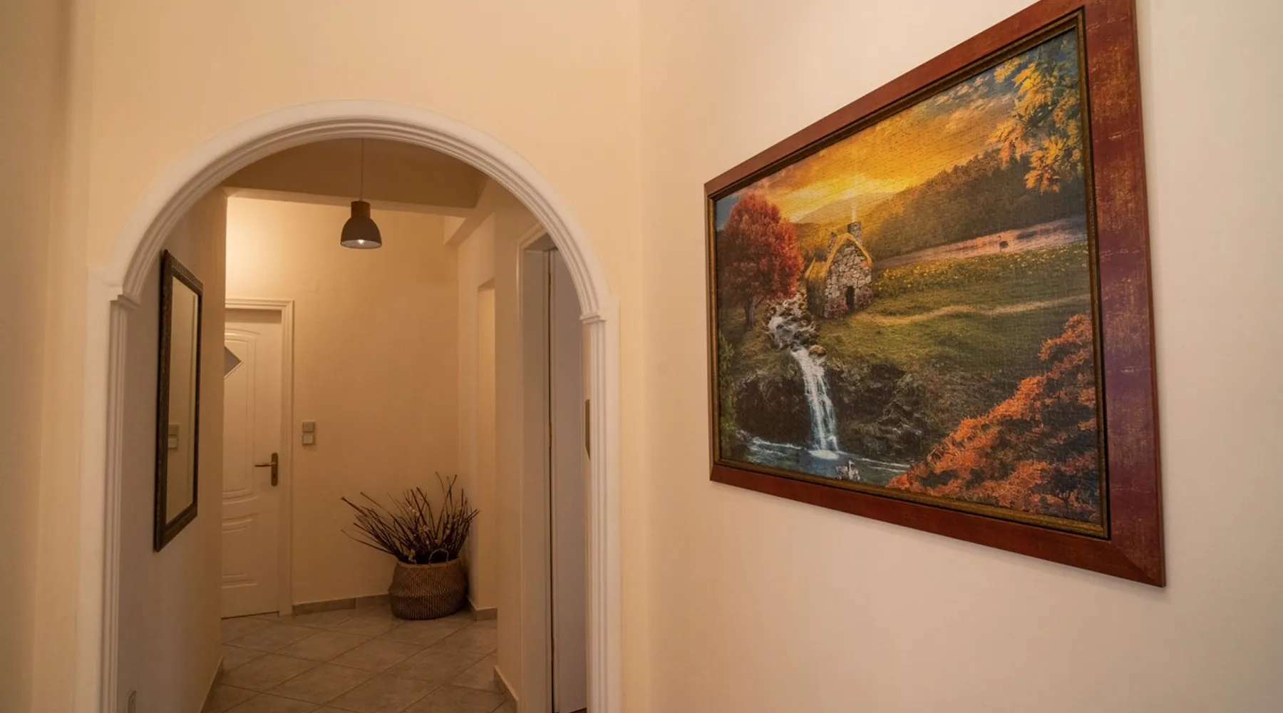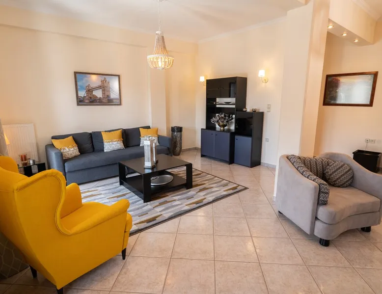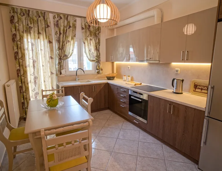 Modern, spacious, family apartment bright in a two-story house with impressive views of the rocks of Meteora. Ideal for couples, families or groups of friends to admire the natural beauty of the surrounding area. The apartment, 115 square meters, is located at the center of the city, is fully renovated and provides comfort and functionality to guests. The space A floor apartment of a two-storey detached house with two spacious,comfortable bedrooms,two v.c and bathtub semi-circular large,kitchen spacious,living room and living room huge and two terraces on the south and north side overlooking the rocks and monasteries of Meteora. Other things to note The property is a two-story apartment of a private house. Registration Details 00001186251