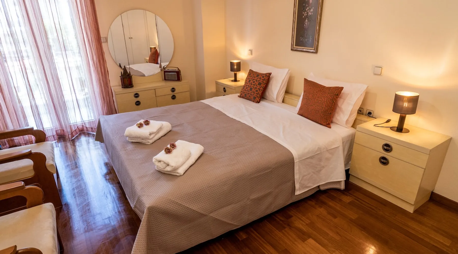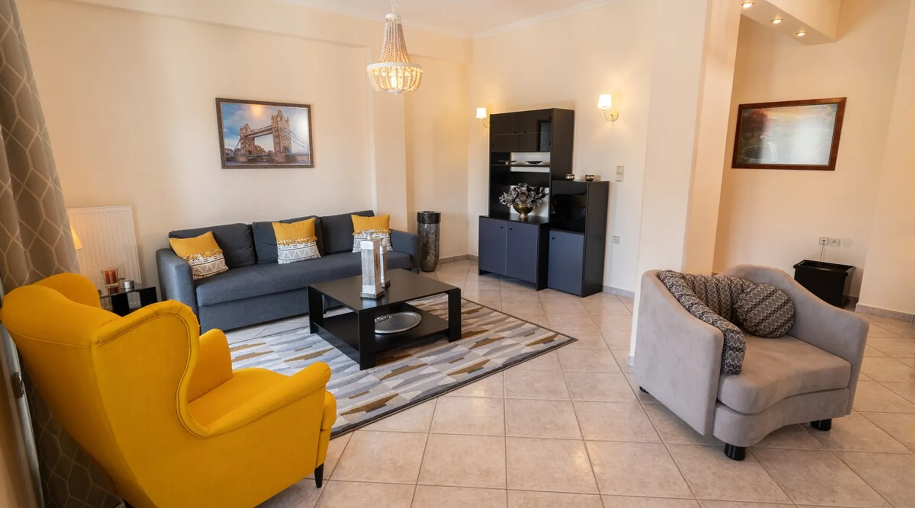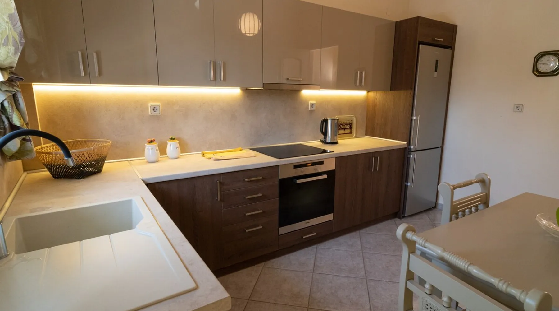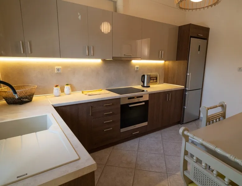 Modern, spacious, family apartment bright in a two-story house with impressive views of the rocks of Meteora. Ideal for couples, families or groups of friends to admire the natural beauty of the surrounding area. The apartment, 115 square meters, is located at the center of the city, is fully renovated and provides comfort and functionality to guests. The space A floor apartment of a two-storey detached house with two spacious,comfortable bedrooms,two v.c and bathtub semi-circular large,kitchen spacious,living room and living room huge and two terraces on the south and north side overlooking the rocks and monasteries of Meteora. Other things to note The property is a two-story apartment of a private house. Registration Details 00001186251