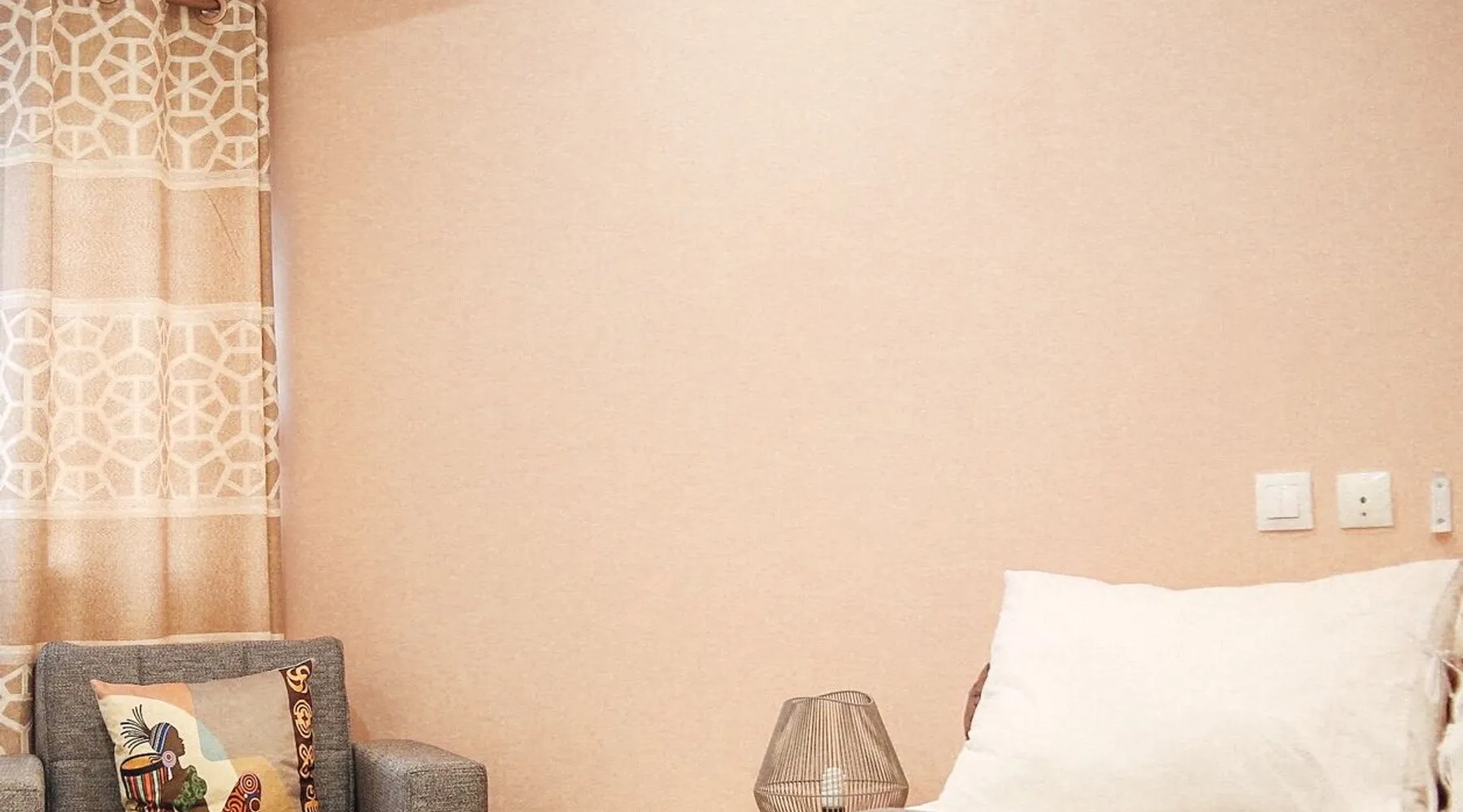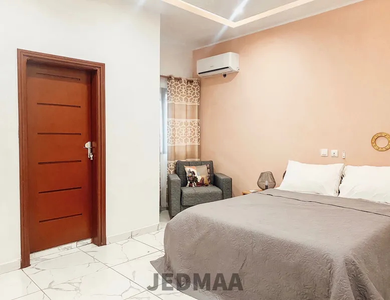 Cocody, Angré 8ème Tranche, Immeuble Dabah (non loin des Résidences DIPPOKA), Abidjan, District des Lagunes, 1489, CI Cet appartement composé de 4 pièces à savoir: - 3 Chambres + 3 Douches - 1 Grand Salon - 1 Balcon - 1 Cuisine - 1 Buanderie Les commodités: - Accès wifi - Chauffe eau - Canal + - SMART TV Services additionnels pour toutes reservation à partir de quinzaine: Conciergerie, Blanchisserie, Chauffeurs, Restaurations et bien d'autres