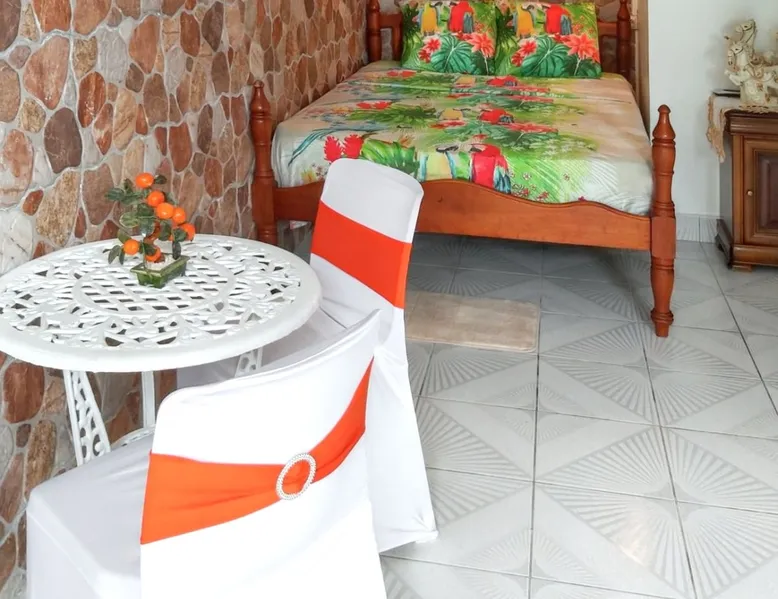 Discover charm and comfort in this spacious 150 m² studio in Bouillante, perfect for relaxation and play. Enjoy stunning views of the garden and sea from your private terrace. Here, you’ll find everything you need for a comfortable stay: air conditioning, kitchen facilities, and garden access. - From sea to mountains: fantastic views! - Private terrace with barbecue options. - Ideal for couples or solo travelers. The space Discover charm and comfort in this spacious 150 m² studio in Bouillante, perfect for relaxation and play. Enjoy stunning views of the garden and sea from your private terrace. Here, you’ll find everything you need for a comfortable stay: air conditioning, kitchen facilities, and garden access. - From sea to mountains: fantastic views! - Private terrace with barbecue options. - Ideal for couples or solo travelers. Exterior : The studio features a lovely, fully enclosed garden where you can relax among tropical plants. The private terrace is perfect for outdoor meals, equipped with garden furniture and a barbecue for cooking delicious meals. Enjoy sea views from your outdoor terrace, and let your children play on the large lawn. Parking is included, so you can explore the area with peace of mind. Studio : The spacious studio is furnished with modern surfaces and comfortable furniture. You will find a bedroom with a double bed and a separate bathroom with a shower. The kitchen is fully equipped with useful appliances, including a microwave, coffee maker, and dishwasher. There is also a workspace if you need to work from home. The spacious layout allows you to move freely, and you'll feel at home with all the necessary conveniences. Nearby attractions: - Malendure Beach: ideal for scuba diving and snorkelling. - Cousteau Reserve: a wonderful site for diving enthusiasts. - Guadeloupe National Park: hiking and discovering local fauna and flora. - Bouillante hot springs: relaxation and well-being await you. Access: Arriving by car is easy, and parking is available on-site. Bouillante is about 45 minutes from Pointe-à-Pitre International Airport, making your journey convenient. Additional information : - Cleaning, bed linens, and towels are included in the rental price. - Free parking is available on-site. - Pets are allowed upon prior request for a fee of 30 euros per stay. - No parties allowed. - Smoking indoors is allowed.