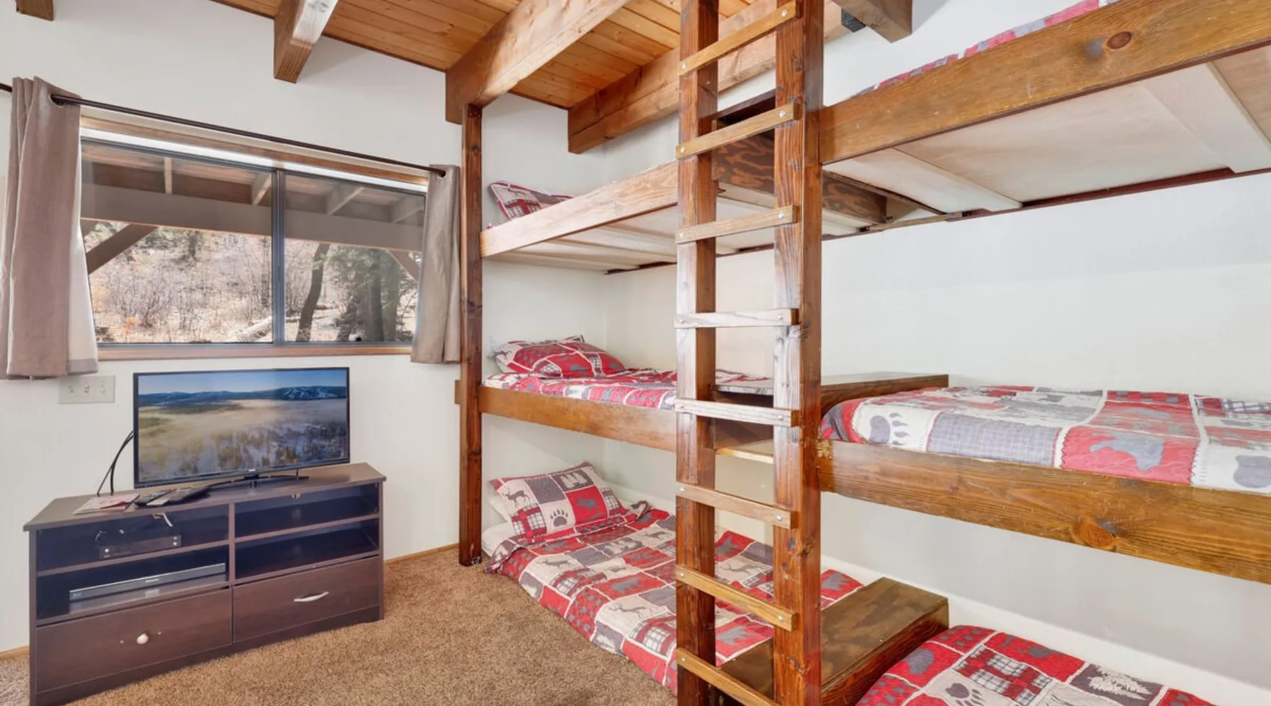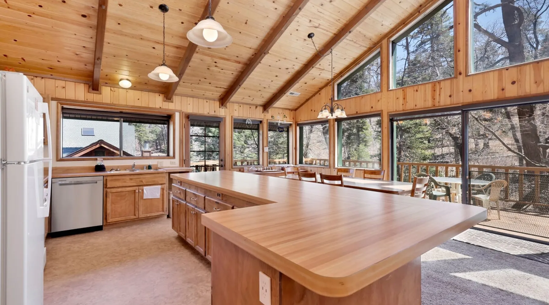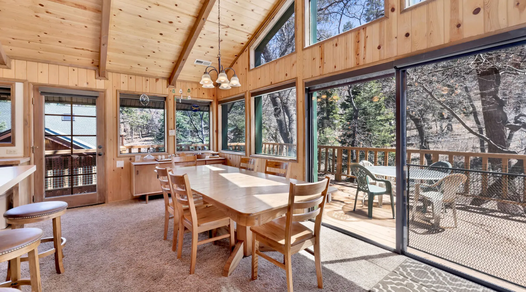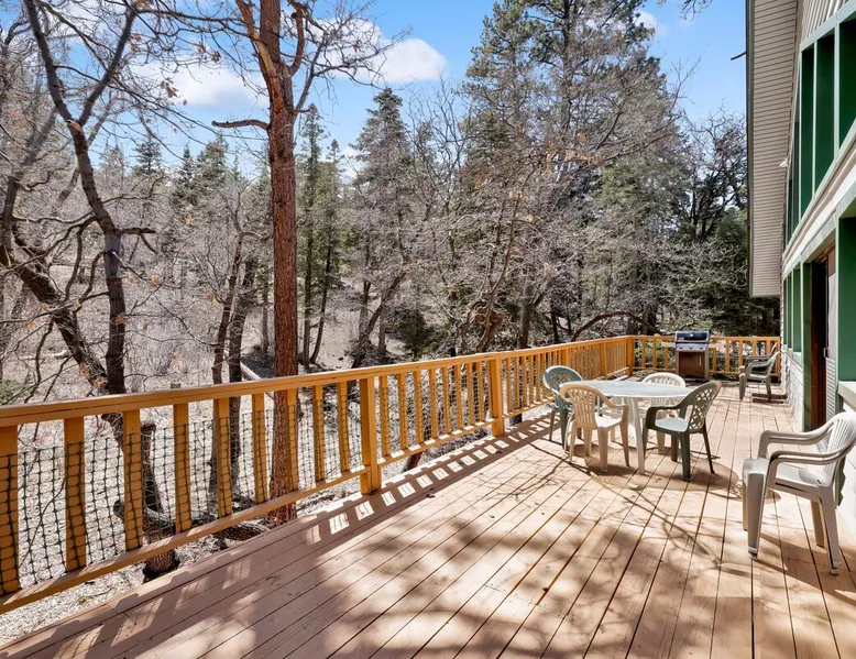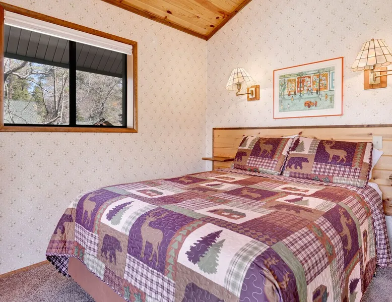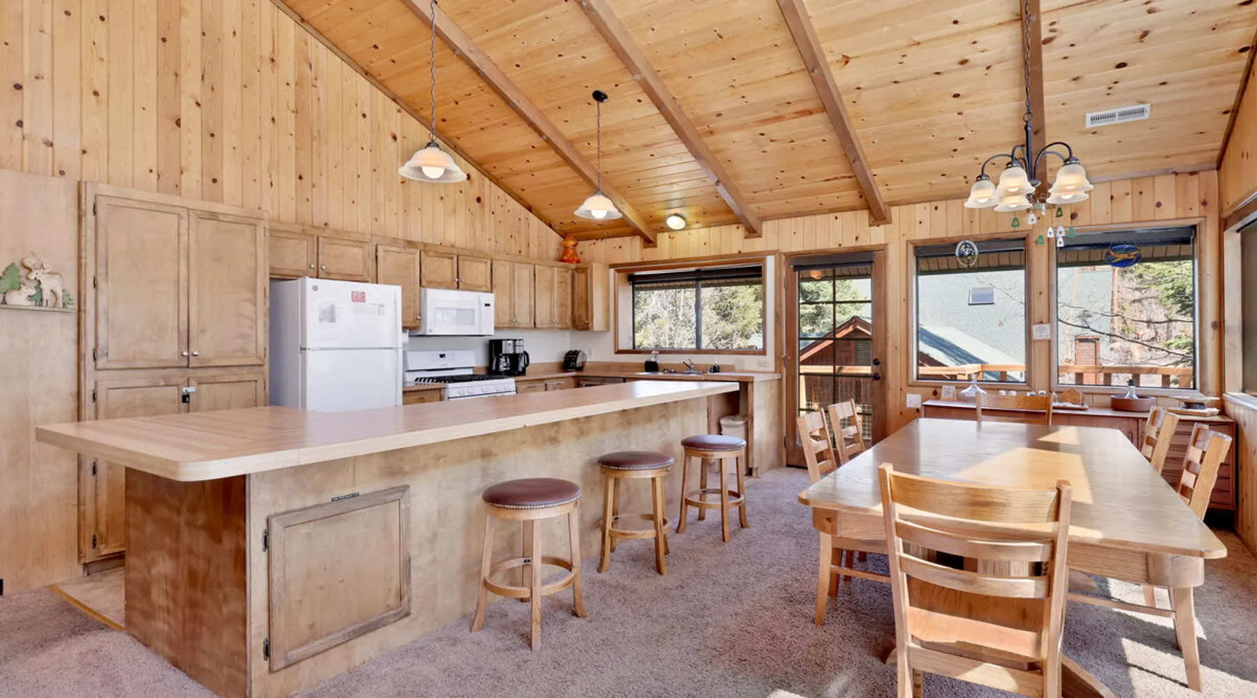 Wodehouse Big Bear- Perfect for Groups- Spacious Mountain Retreat Welcome to Wodehouse in Big Bear. Perfect for a family vacation or getaway with friends this spacious mountain chalet offers plenty of space and essentials to provide the perfect setting for a gathering in the mountains together any time of the year. Sitting on a quiet cul-de-sac in a prime central Moonridge neighborhood you are minutes from local activities including the lake, grocery stores, and ski resorts. The space Wodehouse Big Bear- Perfect for Groups- Spacious Mountain Retreat Welcome to Wodehouse in Big Bear. Perfect for a family vacation or getaway with friends this spacious mountain chalet offers plenty of space and essentials to provide the perfect setting for a gathering in the mountains together any time of the year. Sitting on a quiet cul-de-sac in a prime central Moonridge neighborhood you are minutes from local activities including the lake, grocery stores, and ski resorts. The open floor plan is perfect for entertaining a large group with a cozy living room area and toasty fireplace, ample dining spaces, and the equipped kitchen packed with cookware and appliances to whip up home cooked holiday meals and slope side snacks for the mountain. Enjoy six spacious sleeping quarters for your party when you are ready for a great night of rest along with three bathrooms and a washer and dryer on site- this home truly has everything you need. Venture from the mountain vibes inside the cabin to the great outdoors where you can be at one with nature among the pines as you soak up the rays on the beautiful sun decks, wrapping both levels of the cabin and boasting outdoor patio furnishings and a propane BBQ for your grilling adventures. Wodehouse is a perfectly placed and wonderfully furnished retreat no matter the season or the occasion for your visit to Big Bear- come experience this unique group retreat for yourselves today! Sleeping Arrangements: Bedroom 1: Queen Bed - Upstairs Entry Level Bedroom 2: Queen Bed - Upstairs Entry Level Bedroom 3: Queen Bed - Upstairs Entry Level Bedroom 4: Queen Bed - Upstairs Entry Level Bedroom 5: Queen Bed - Lower Bottom Level Bedroom 6: Two Triple Bunks, (6 Twins) TV w/ Cable, Deck Access - Lower Downstairs Level Bathroom Arrangements: Hallway Full Bath- Upstairs Entry Level Hallway 3/4 Bath (Shower Only)- Upstairs Entry Level Hallway 3/4 Bath (Shower Only)- Lower Downstairs Level -Sleeps 12 -5 Car Driveway Parking -NO PETS ALLOWED- Fines Imposed for Pets Found on Property -2,718 Square Feet City Permit #: VRR-2023-1808 Registration Details 2023-1808