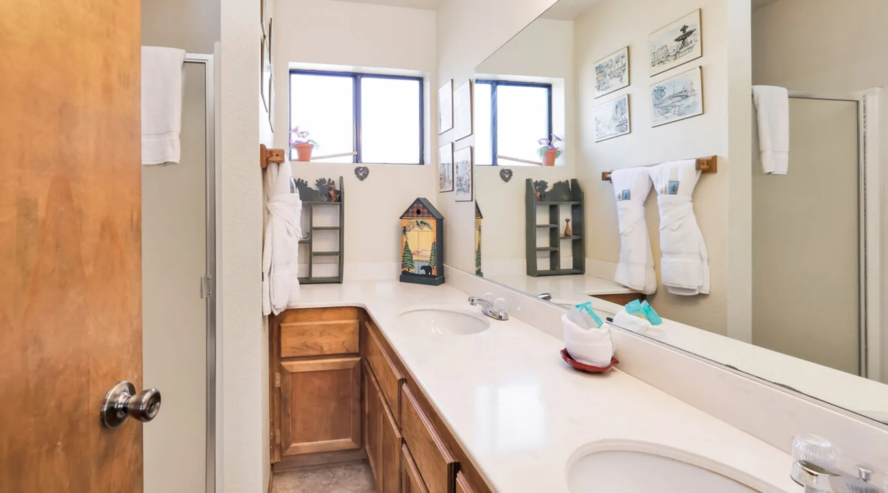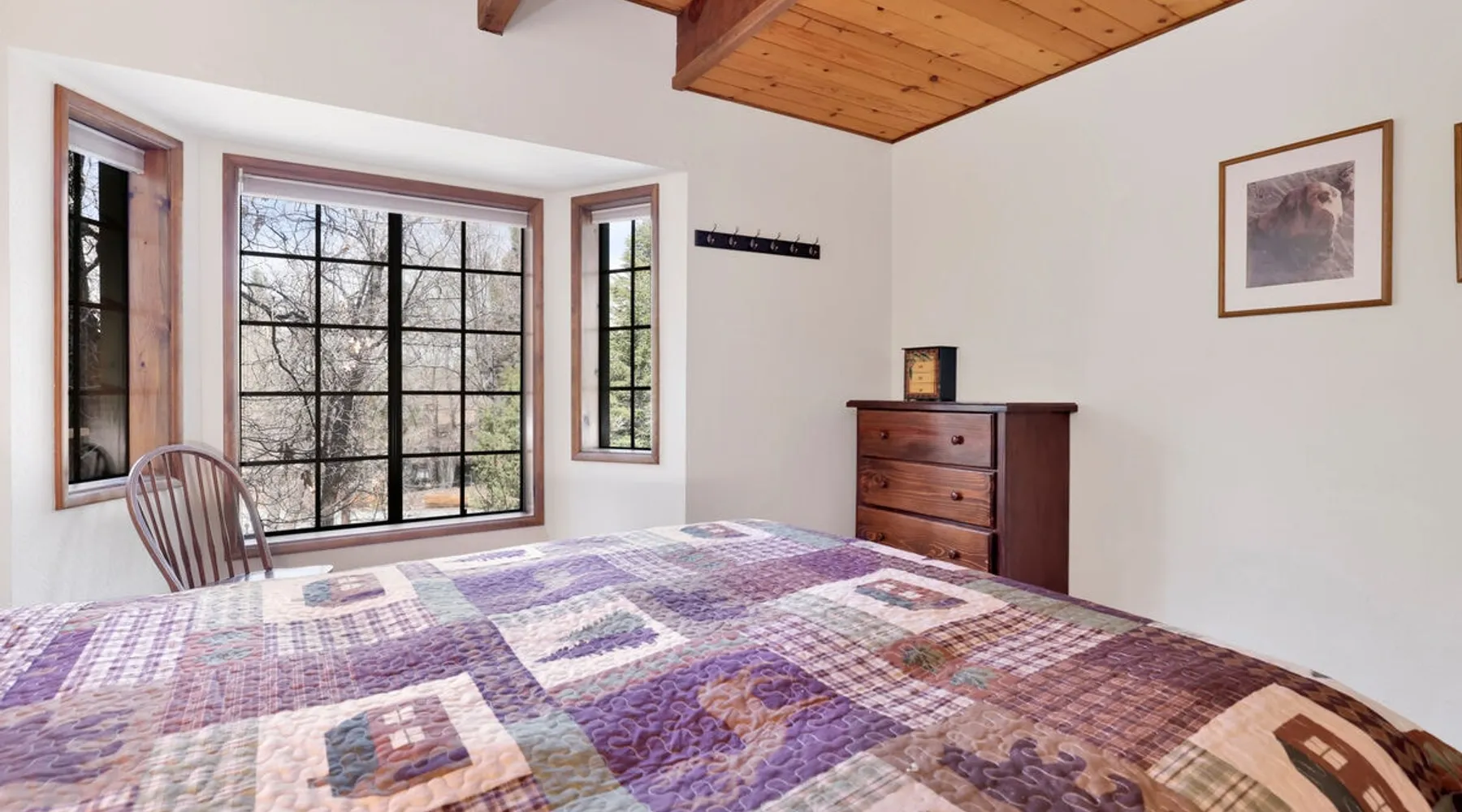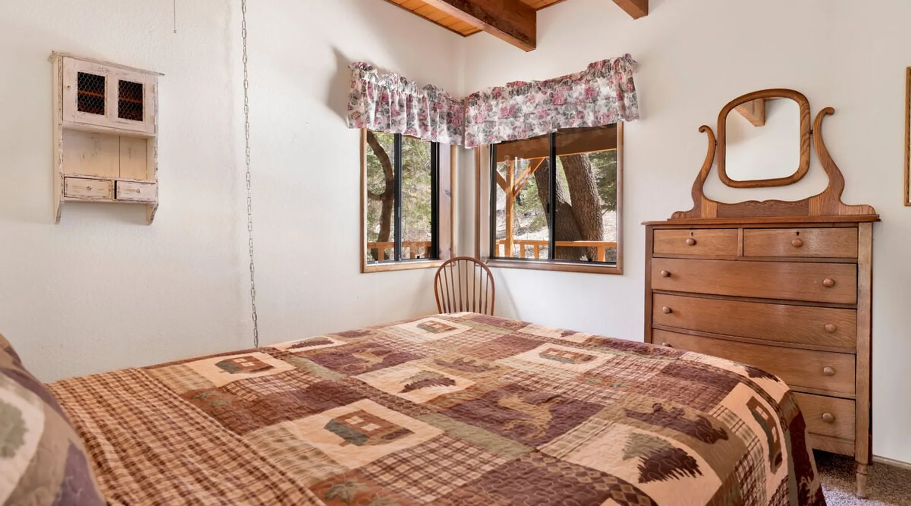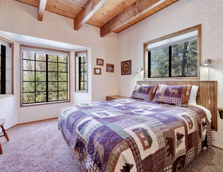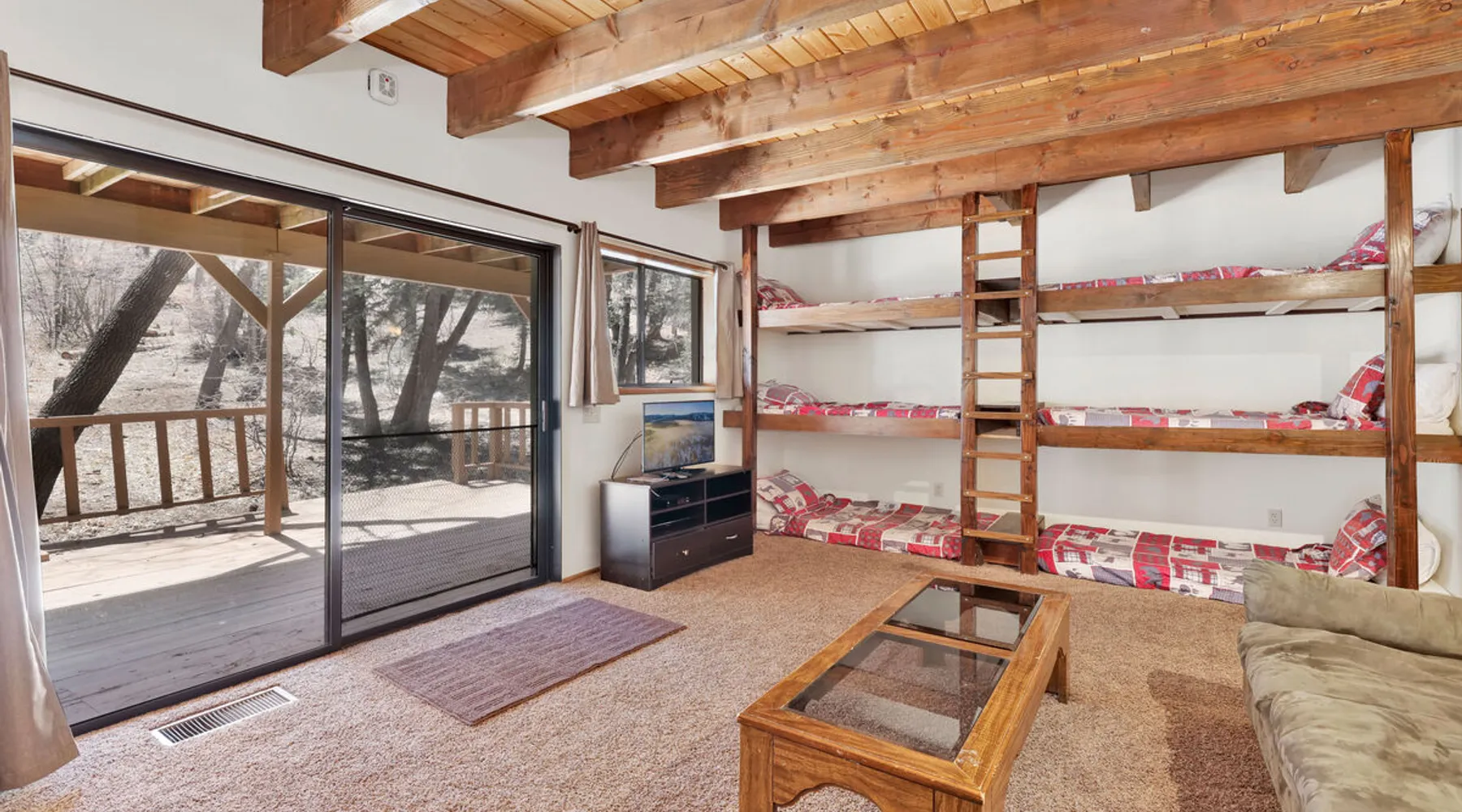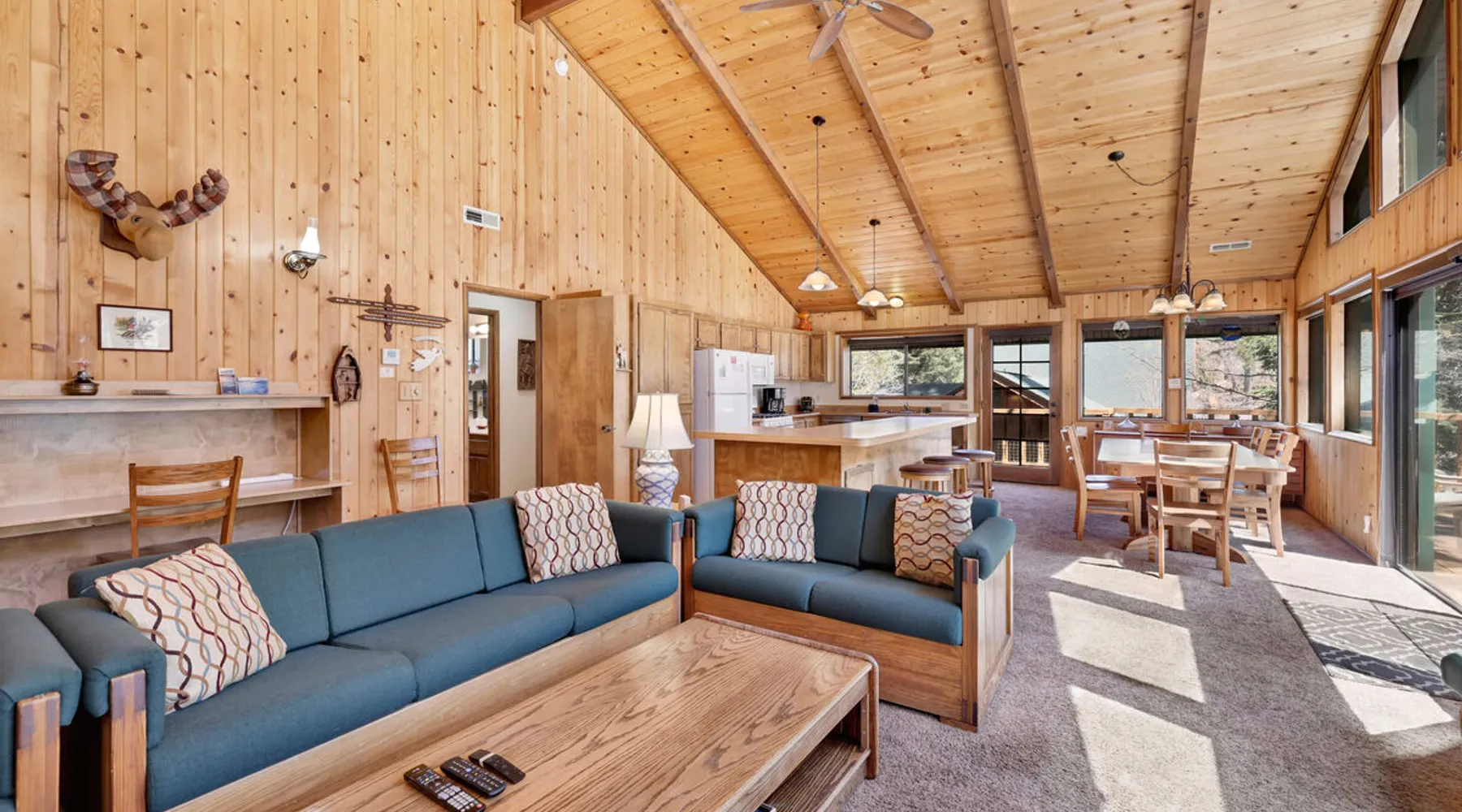Wodehouse Big Bear- Perfect for Groups- Spacious Mountain Retreat Welcome to Wodehouse in Big Bear. Perfect for a family vacation or getaway with friends this spacious mountain chalet offers plenty of space and essentials to provide the perfect setting for a gathering in the mountains together any time of the year. Sitting on a quiet cul-de-sac in a prime central Moonridge neighborhood you are minutes from local activities including the lake, grocery stores, and ski resorts. The space Wodehouse Big Bear- Perfect for Groups- Spacious Mountain Retreat Welcome to Wodehouse in Big Bear. Perfect for a family vacation or getaway with friends this spacious mountain chalet offers plenty of space and essentials to provide the perfect setting for a gathering in the mountains together any time of the year. Sitting on a quiet cul-de-sac in a prime central Moonridge neighborhood you are minutes from local activities including the lake, grocery stores, and ski resorts. The open floor plan is perfect for entertaining a large group with a cozy living room area and toasty fireplace, ample dining spaces, and the equipped kitchen packed with cookware and appliances to whip up home cooked holiday meals and slope side snacks for the mountain. Enjoy six spacious sleeping quarters for your party when you are ready for a great night of rest along with three bathrooms and a washer and dryer on site- this home truly has everything you need. Venture from the mountain vibes inside the cabin to the great outdoors where you can be at one with nature among the pines as you soak up the rays on the beautiful sun decks, wrapping both levels of the cabin and boasting outdoor patio furnishings and a propane BBQ for your grilling adventures. Wodehouse is a perfectly placed and wonderfully furnished retreat no matter the season or the occasion for your visit to Big Bear- come experience this unique group retreat for yourselves today! Sleeping Arrangements: Bedroom 1: Queen Bed - Upstairs Entry Level Bedroom 2: Queen Bed - Upstairs Entry Level Bedroom 3: Queen Bed - Upstairs Entry Level Bedroom 4: Queen Bed - Upstairs Entry Level Bedroom 5: Queen Bed - Lower Bottom Level Bedroom 6: Two Triple Bunks, (6 Twins) TV w/ Cable, Deck Access - Lower Downstairs Level Bathroom Arrangements: Hallway Full Bath- Upstairs Entry Level Hallway 3/4 Bath (Shower Only)- Upstairs Entry Level Hallway 3/4 Bath (Shower Only)- Lower Downstairs Level -Sleeps 12 -5 Car Driveway Parking -NO PETS ALLOWED- Fines Imposed for Pets Found on Property -2,718 Square Feet City Permit #: VRR-2023-1808 Registration Details 2023-1808
