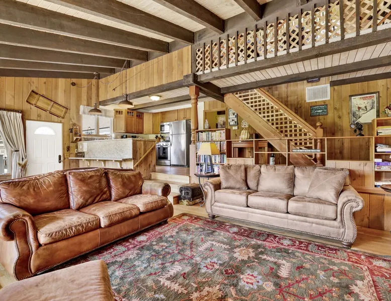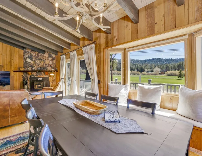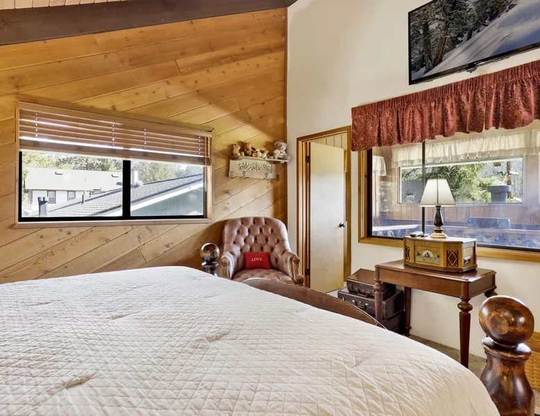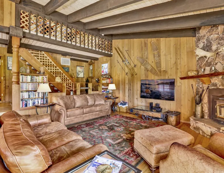 Welcome to Golf & Ski Retreat!! Perfect for a group of friends or family vacation to Big Bear your group will love this spacious and fully furnished two story home which faces the 4th hole on the Moonridge Golf Course and is within minutes by car to the ski resorts, stores, or downtown Village area for shopping, dining, or entertainment. You'll have the best the mountain right at your fingertips no matter the season you choose to visit. Come experience this relaxing home away from home today! The space Golf & Ski Family Retreat ~ Across from Zoo/Golf Welcome to Golf & Ski Retreat!! Perfect for a group of friends or family vacation to Big Bear your group will love this spacious and fully furnished two story home which faces the 4th hole on the Moonridge Golf Course and is within minutes by car to the ski resorts, stores, or downtown Village area for shopping, dining, or entertainment. You'll have the best the mountain right at your fingertips no matter the season you choose to visit. Boasting the necessities from home paired with modern comforts and cozy mountain furnishings you will love your stay here! Enter into a cozy and warm open concept main level which boasts beautiful golf course views, a cozy and warm living room area, formal dining area, and your equipped modern kitchen. You will love snuggling up here on the comfortable couches and watching the snow falling through the big open windows as you warm your toes together in from of the toasty wood burning fireplace. Pop on a movie on the flat screen TV with complimentary Cable and hi speed WIFI internet provided for you by the owners. Perfect for entertaining a dinner party or hosting your holiday meals here in the mountains the chef's kitchen is stocked with tons of counter space, cookware and utensils, general appliances, and even a dishwasher to ensure your cleanup is an absolute breeze. Gather together at the breakfast bar or formal dining table as you make memories and enjoy your meals together while enjoying the spectacular views. For your added convenience a separate laundry room area offers a washer and dryer for your wet snow clothes or long term extended visits to the mountains. The lower entry level hosts a spacious hallway bathroom and one of your sleeping quarters while the remaining bathroom and sleeping areas are upstairs on the second level - each is made up for your arrival with warm linens, blankets, pillows, and fresh shower towels for your group when you arrive. Venture outside to experience the amazing fenced and private property with the beautiful sun deck boasting outdoor patio furnishings and a propane BBQ for you to relax and unwind in the evenings as you grill up your freshly caught dinner from the lake. Golf & Ski Retreat is the ultimate vacation home for any group no matter the season- come experience this amazing home for your next Big Bear vacation! Sleeping Arrangements: Bedroom 1: King Bed, TV w/ Cable- Downstairs Entry Level Bedroom 2: Queen Bed- Upstairs 2nd Level Bedroom 3: Queen Bed + Twin Sofa Sleeper- Upstairs 2nd Level Living Room: Full Sleeper Sofa- Downstairs Entry Level Bathroom Arrangements: Hallway Full Bath- Downstairs Entry Level Hallway Full Bath- Upstairs 2nd Level -Sleeps 9 -3 Car Driveway Parking -NO PETS ALLOWED- Fines Imposed For Pets Found On The Premises -1,736 Square Feet City Permit #: VRR-2023-2459 Registration Details 2023-2459