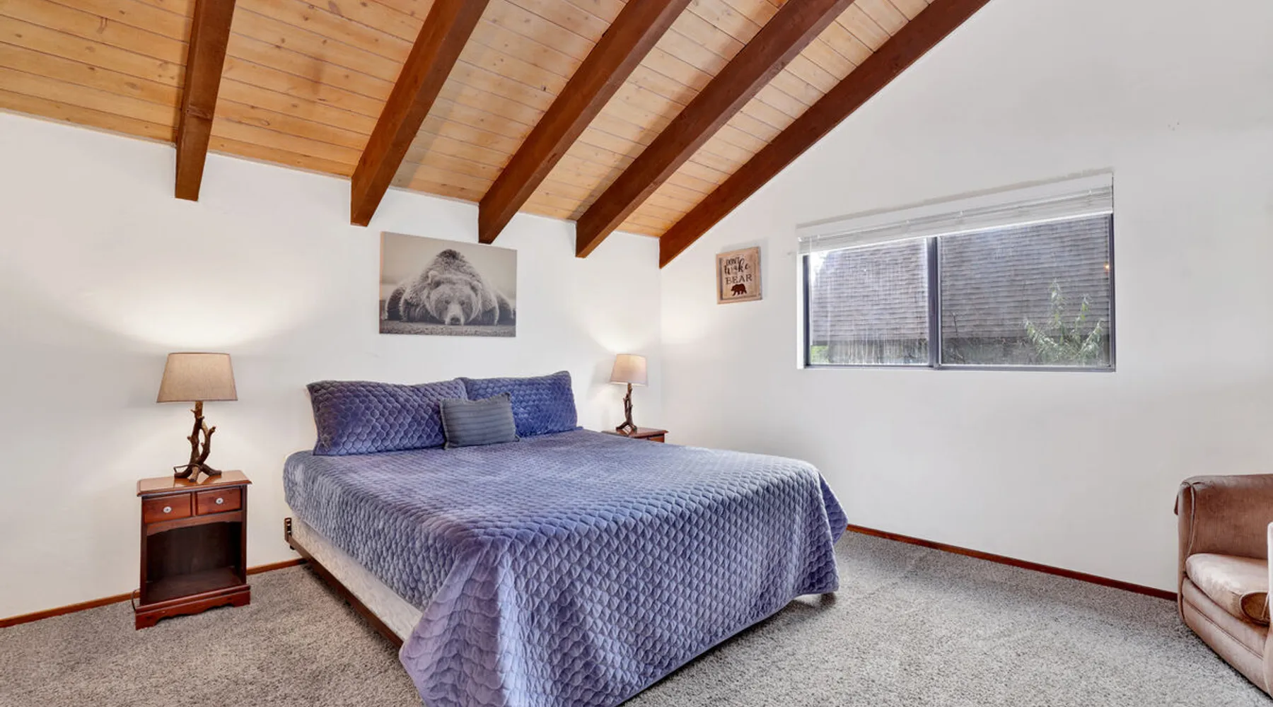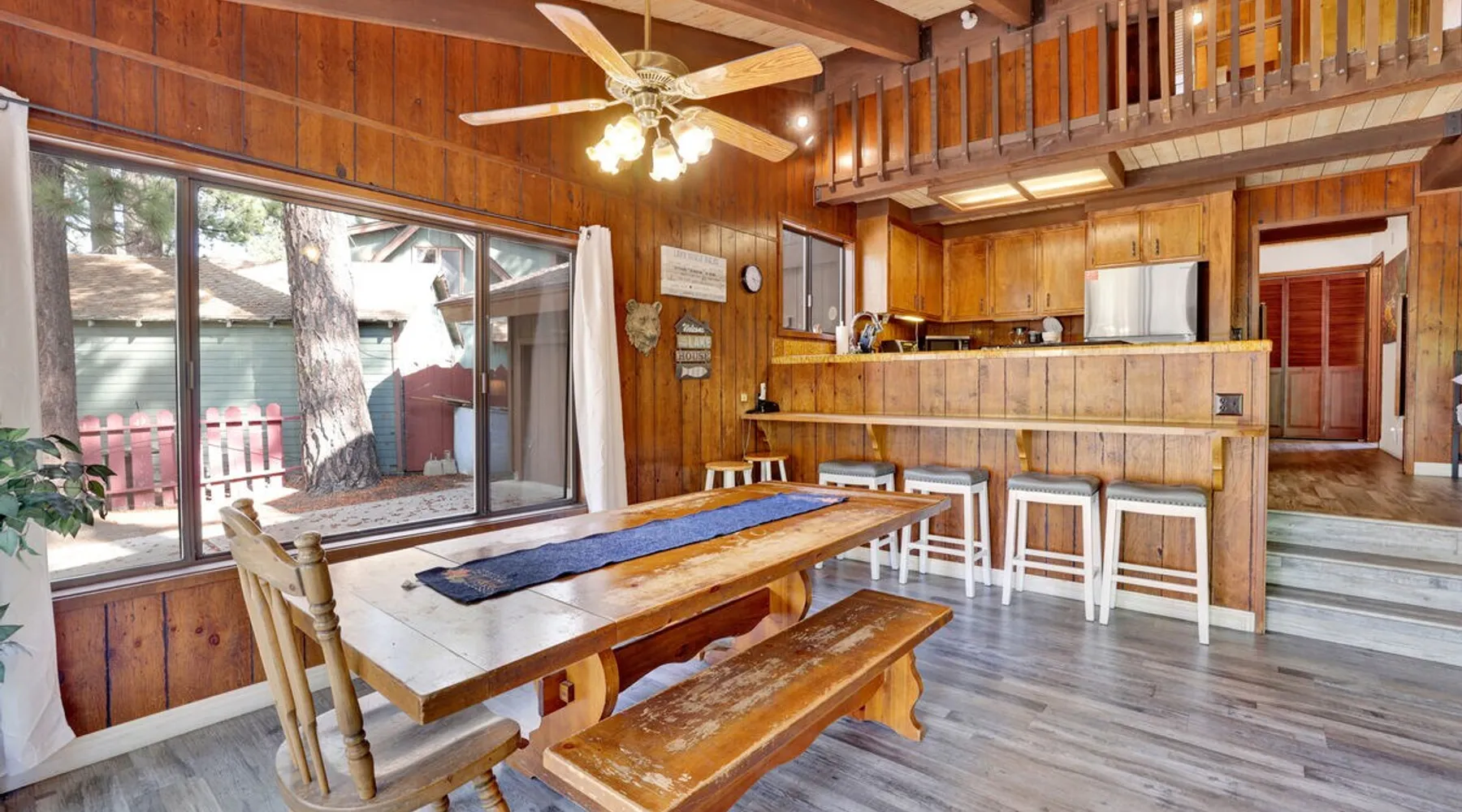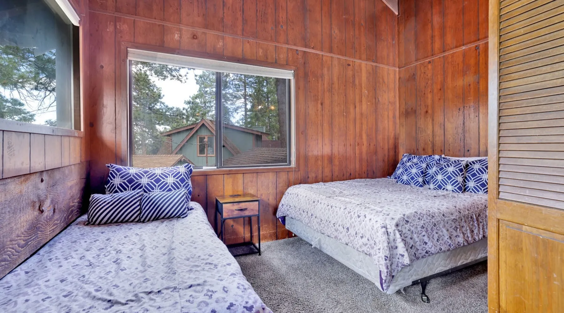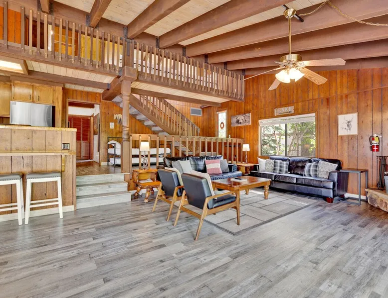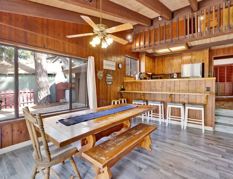 Lakeview Fishing House is the perfect destination for a family vacation or group of friends to enjoy the best of Big Bear including lake activities and a prime central downtown location within just minutes to local activities including hiking, fishing, boating, and the Village shops for dining options. Fully furnished with all that you need to enjoy a memorable vacation together under soaring pines and stars your group will love your visit here at your new home away from home in Big Bear! The space Enter on the lower level in the nicely renovated lower-level living room area complete with updated hardwood floors, leather furnishings, ample lake-view windows, and a toasty wood burning fireplace with a flat screen TV including Cable and complimentary hi speed WIFI internet are provided so you can snuggle up and watch a movie or enjoy the snow falling as you take in the view. The open floor plan leads into the spacious dining area complete with sliding glass doors accessing the redwood sun decks, a log table and breakfast bar are on hand providing plenty of space for your meals. The chef of your group will love the equipped kitchen, complete with stainless appliances including a dishwasher for your convenience, plus cookware and utensils are provided for you to whip up your home-cooked meals. For your added convenience enjoy a separate laundry room with a washer and dryer for those wet snow clothes or long term stays no matter the season your group chooses to visit Big Bear! Sprawling with two levels of comfortable space your sleeping areas and both bathrooms are made up for your group with warm linens, blankets, pillows, and fresh shower towels when you arrive for your visit. Outside the spacious pet friendly property is manicured in summertime grass and sits just across the street from the lake with a front sun deck that overlooks the lake and a great back yard complete with a Propane BBQ for your use. Sleeping Arrangements: Alcove Under Stairs: Twin Bed- Downstairs Entry Level Bedroom 1: Queen Bed + Twin Bed- Downstairs Entry Level Bedroom 2: King Bed- Upstairs 2nd Level Bedroom 3: Twin Bed + Full Bed- Upstairs 2nd Level Bathroom Arrangements: Hallway Full Bath- Downstairs Entry Level Hallway Full Bath- Upstairs 2nd Level -Sleeps 9 -3 Car Driveway Parking -2 Pets Welcome w/ Additional Fees -1,536 Square Feet City Permit #: VRR-2024-1079 Registration Details 2024-1079