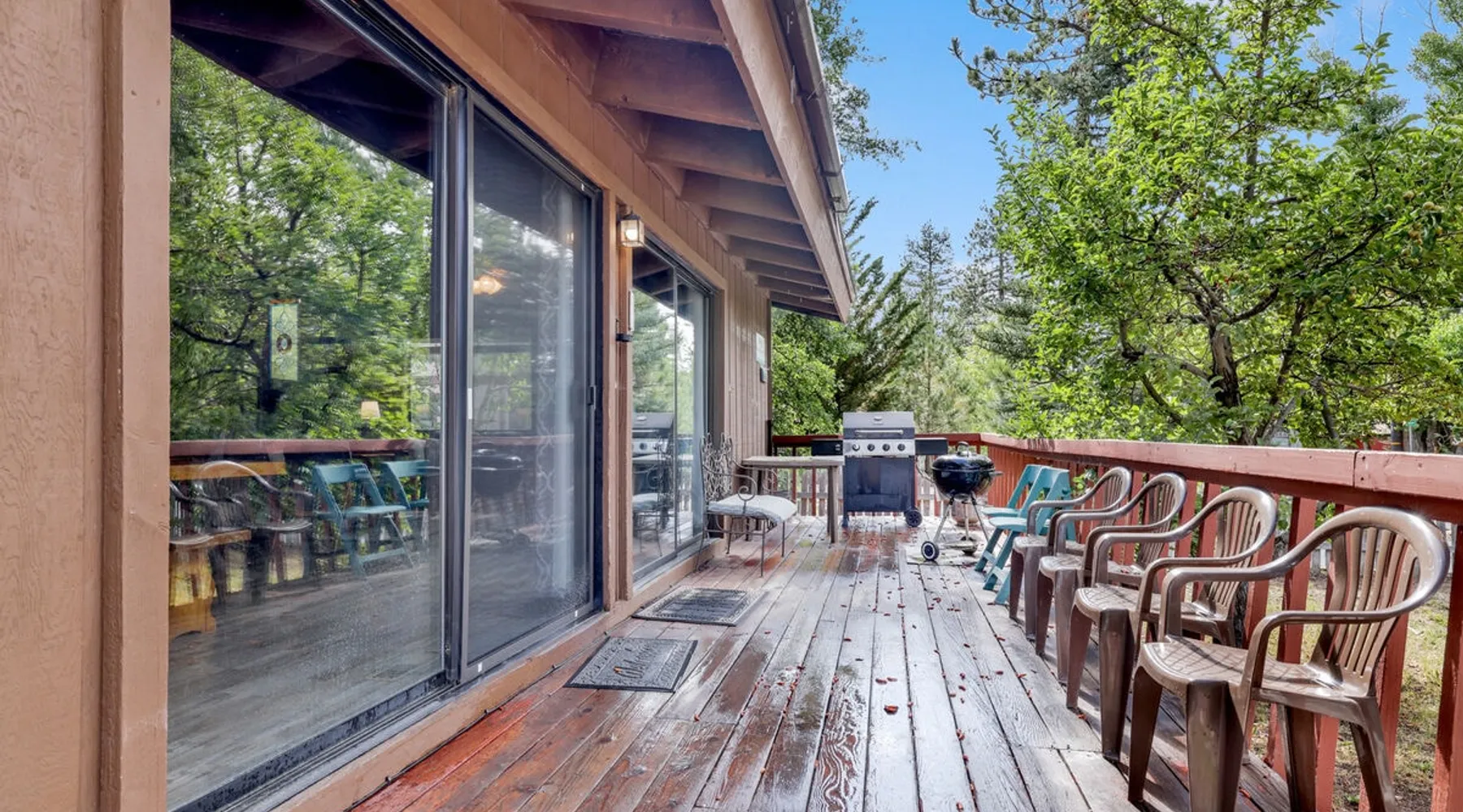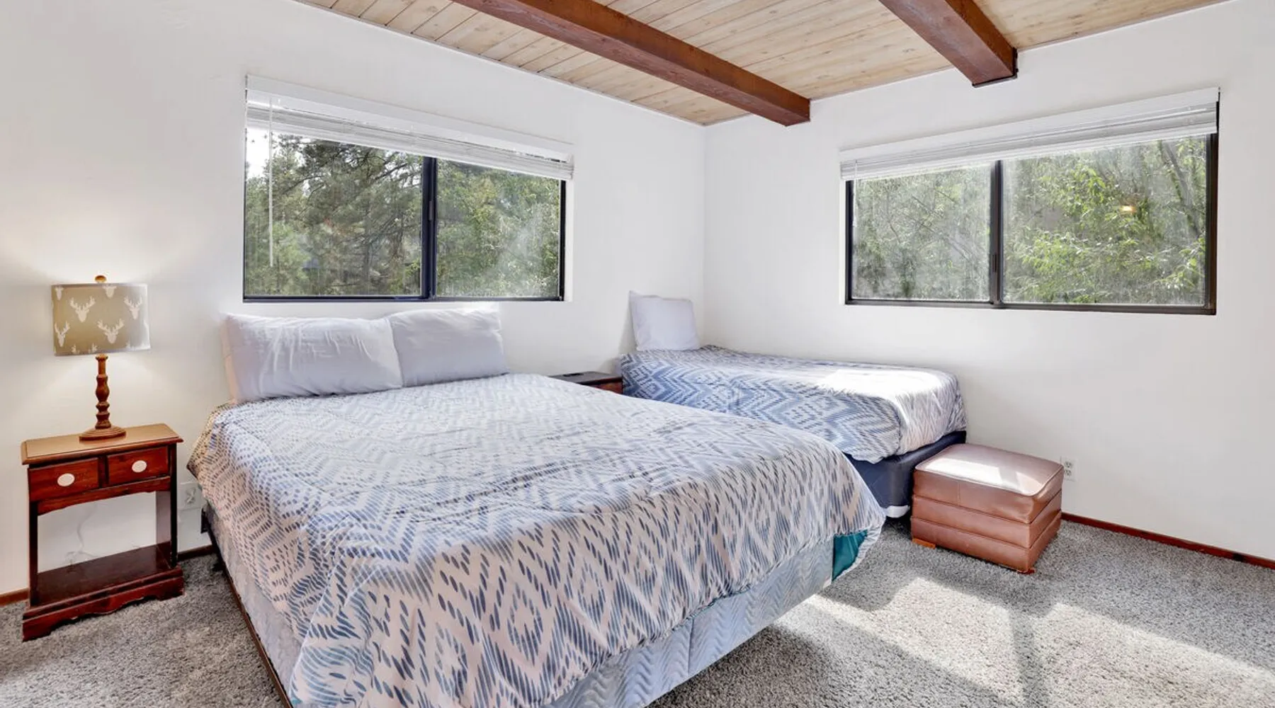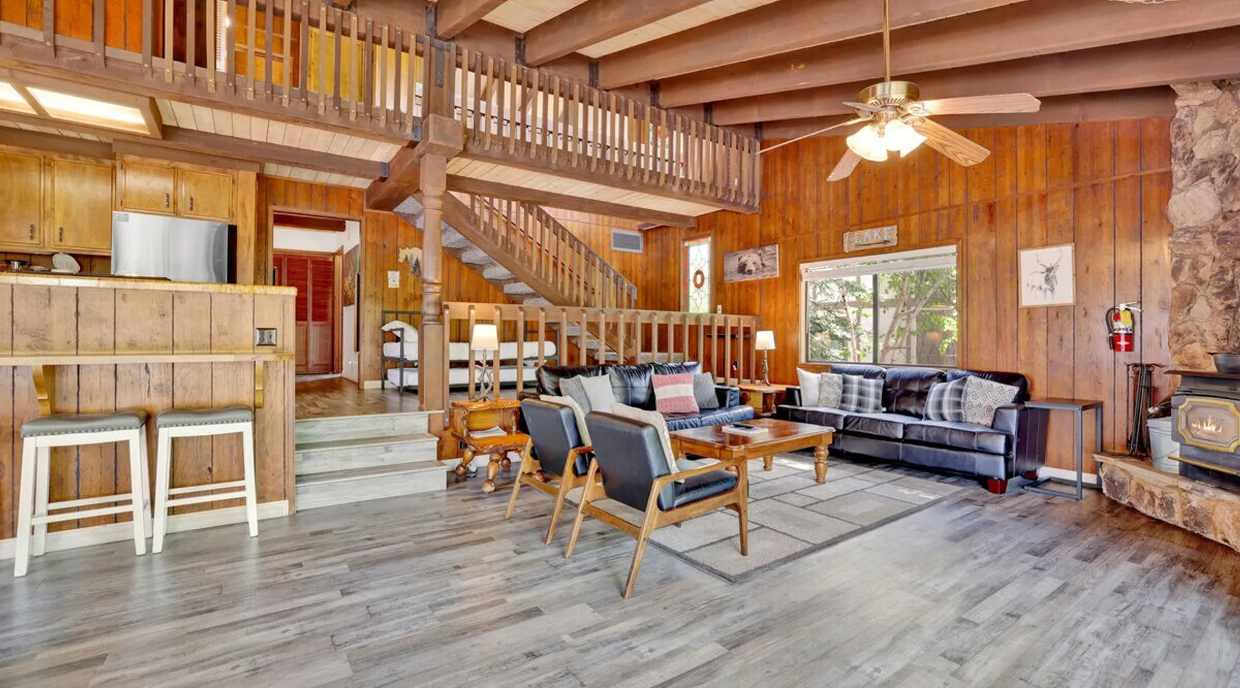 Lakeview Fishing House is the perfect destination for a family vacation or group of friends to enjoy the best of Big Bear including lake activities and a prime central downtown location within just minutes to local activities including hiking, fishing, boating, and the Village shops for dining options. Fully furnished with all that you need to enjoy a memorable vacation together under soaring pines and stars your group will love your visit here at your new home away from home in Big Bear! The space Enter on the lower level in the nicely renovated lower-level living room area complete with updated hardwood floors, leather furnishings, ample lake-view windows, and a toasty wood burning fireplace with a flat screen TV including Cable and complimentary hi speed WIFI internet are provided so you can snuggle up and watch a movie or enjoy the snow falling as you take in the view. The open floor plan leads into the spacious dining area complete with sliding glass doors accessing the redwood sun decks, a log table and breakfast bar are on hand providing plenty of space for your meals. The chef of your group will love the equipped kitchen, complete with stainless appliances including a dishwasher for your convenience, plus cookware and utensils are provided for you to whip up your home-cooked meals. For your added convenience enjoy a separate laundry room with a washer and dryer for those wet snow clothes or long term stays no matter the season your group chooses to visit Big Bear! Sprawling with two levels of comfortable space your sleeping areas and both bathrooms are made up for your group with warm linens, blankets, pillows, and fresh shower towels when you arrive for your visit. Outside the spacious pet friendly property is manicured in summertime grass and sits just across the street from the lake with a front sun deck that overlooks the lake and a great back yard complete with a Propane BBQ for your use. Sleeping Arrangements: Alcove Under Stairs: Twin Bed- Downstairs Entry Level Bedroom 1: Queen Bed + Twin Bed- Downstairs Entry Level Bedroom 2: King Bed- Upstairs 2nd Level Bedroom 3: Twin Bed + Full Bed- Upstairs 2nd Level Bathroom Arrangements: Hallway Full Bath- Downstairs Entry Level Hallway Full Bath- Upstairs 2nd Level -Sleeps 9 -3 Car Driveway Parking -2 Pets Welcome w/ Additional Fees -1,536 Square Feet City Permit #: VRR-2024-1079 Registration Details 2024-1079
