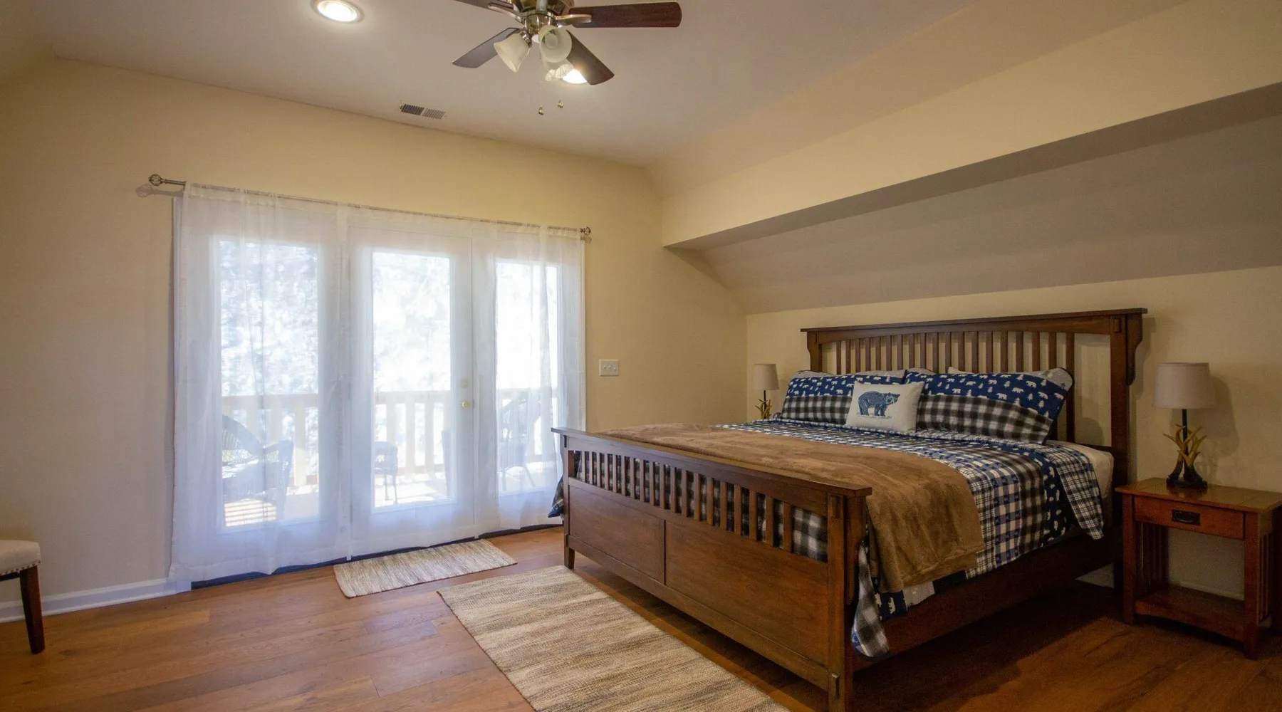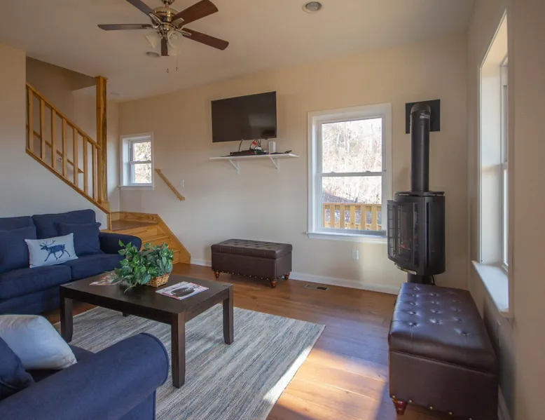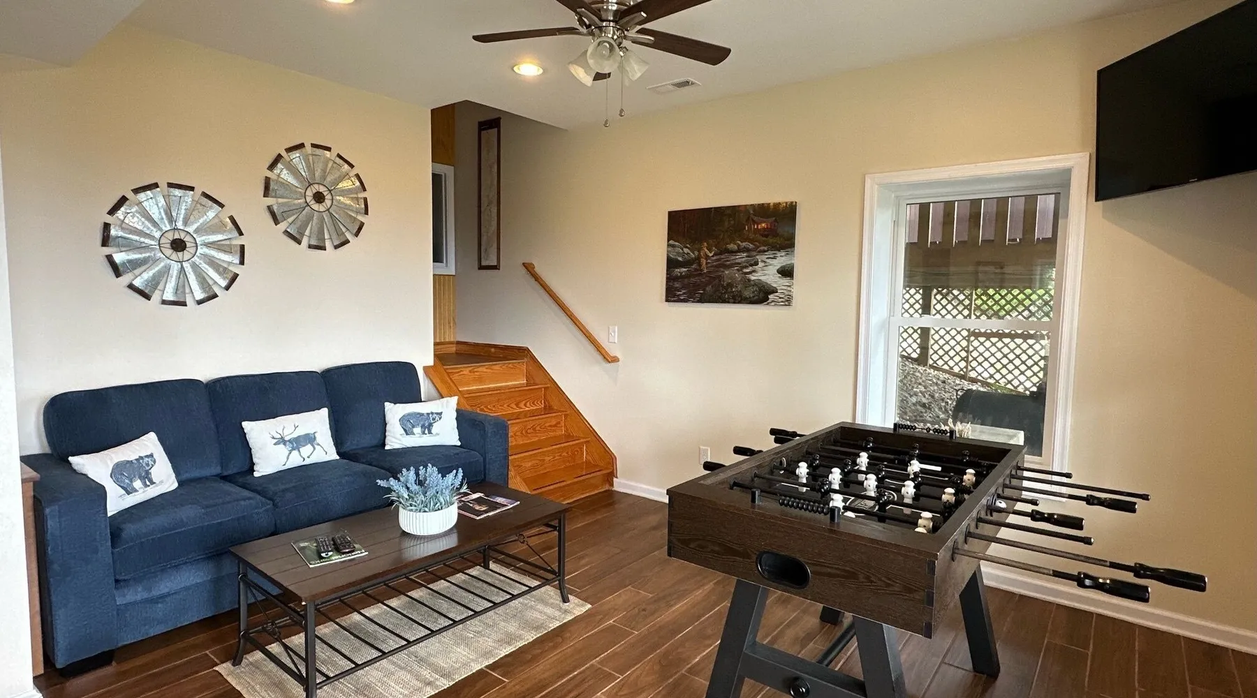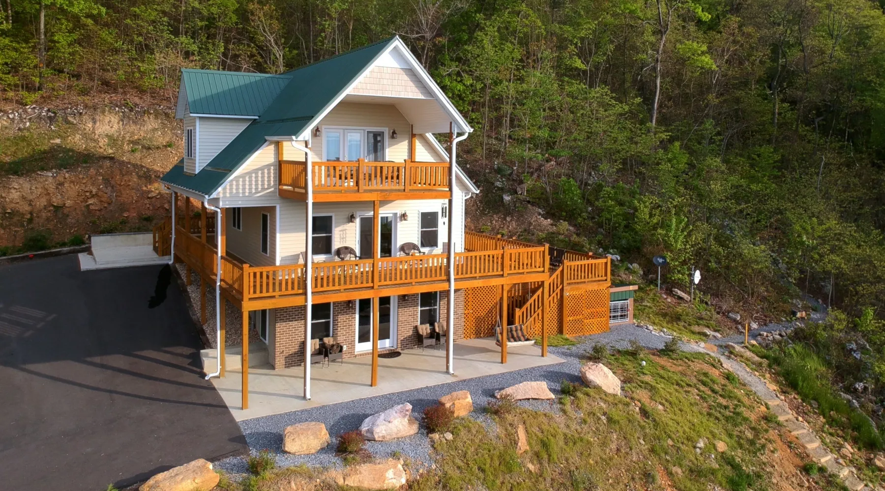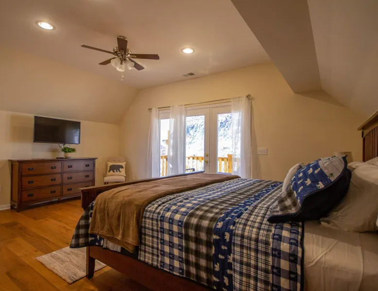 **Just installed- EV Charger- charge your electric vehicle right at the property!** Designed specifically for guests as a resort-style property, Shenandoah Manor is the perfect place for your getaway. Privacy, seclusion, and relaxation are just some of the things you'll find here, along with an abundance of wildlife- black bears, foxes, coyotes, raptors, deer, owls, wild turkeys, rabbits, and raccoons. Just a few short steps from the back door of Shenandoah Manor, you will find the George Washington National Forest, which offers opportunities for nature walks, hiking, and enjoying the peacefulness of nature. Recently built, no expense was spared in building a getaway that your family, friends, or group will talk about for years. This lodge is just a few miles from downtown Luray, the mighty Shenandoah River, and the National Park. Located at almost 2000 feet in mountain elevation, Shenandoah Manor offers fantastic views of Shenandoah National Park and surrounding George Washington National Forest- along with beautiful four-season views of the Shenandoah River. Two king, two queen, 1 full bed and 4 twin beds will comfortably sleep 14. The kitchen offers modern cooking, double ovens, a refrigerator, a dishwasher, and everything you need for a great meal. If you'd rather cook outside, we've got you covered with a gas grill. Challenge each other to a game of horseshoes or cornhole (cornhole is available during the summer months)! Go fishing in the pond! Sit around the fire pit, relaxing and toasting marshmallows. New Feature! A playground for the kids has just been added- they can swing and slide to their hearts' content! On rainy days, there is still plenty to do inside. With a game room featuring a pool table and foosball table, you'll be having fun for hours! Free, fast Wifi internet and Dish TV with hundreds of channels will keep you connected. There is a landline phone with free local and long-distance calls. There are board games to rummage through. Everywhere you turn, this house has what you're looking for! The property is also close to a host of attractions, including Luray Caverns, Cooter's Dukes of Hazzard Museum, The Civil War Museum, and more! Some things to note about Shenandoah Manor: Check-in is at 3:00 p.m., and check-out is at 11:00 a.m. Early check-in or late check-out may be available; feel free to ask us! Please try to limit the number of cars per reservation to 5 or fewer. The base rate includes 4 guests. Additional guests are extra. Please read the itemized charges carefully! Dogs are welcome! The weight limit is 50 pounds per dog, and the pet fee is $75 per dog. Unfortunately, we can't accept cats. Sorry about that! PLEASE NOTE: During winter months, a four-wheel drive (4WD) or all-wheel drive (AWD) vehicle is required. Shenandoah Manor has a security camera located on the property, which is pointed toward the driveway.