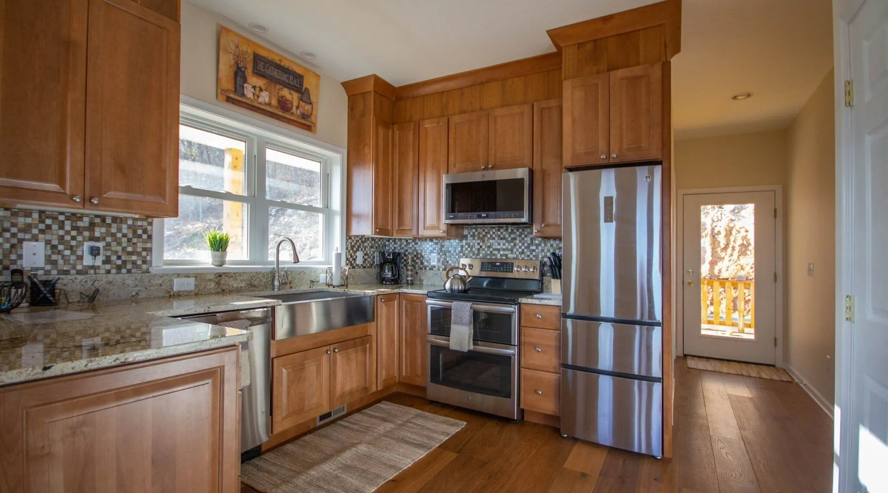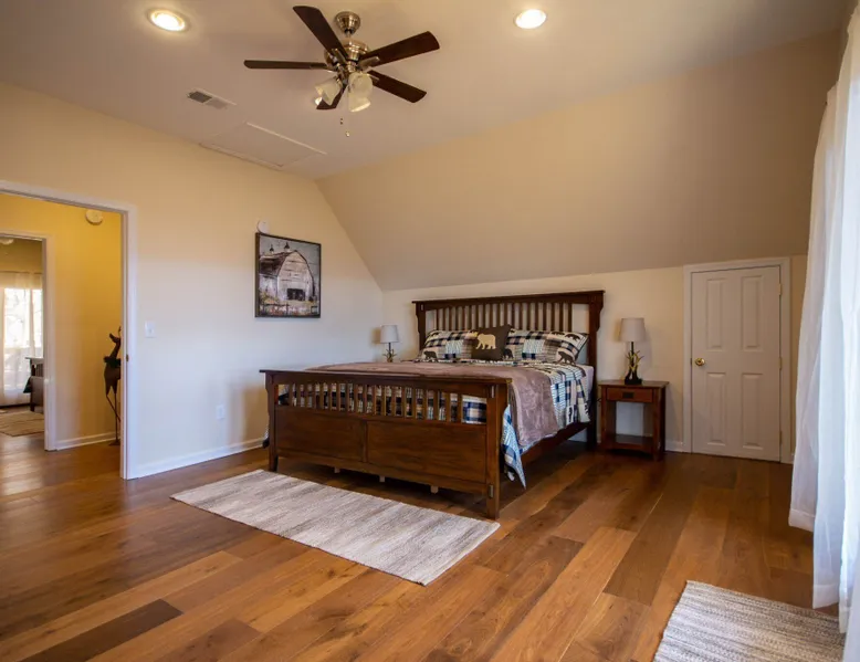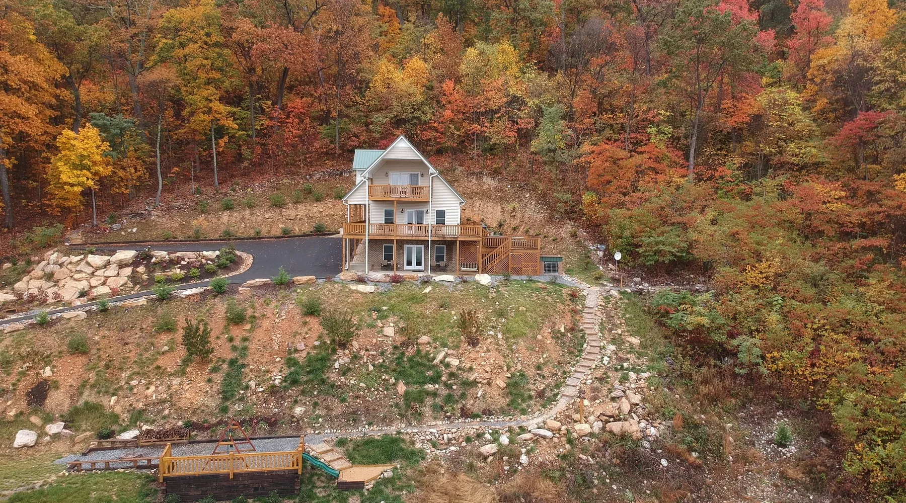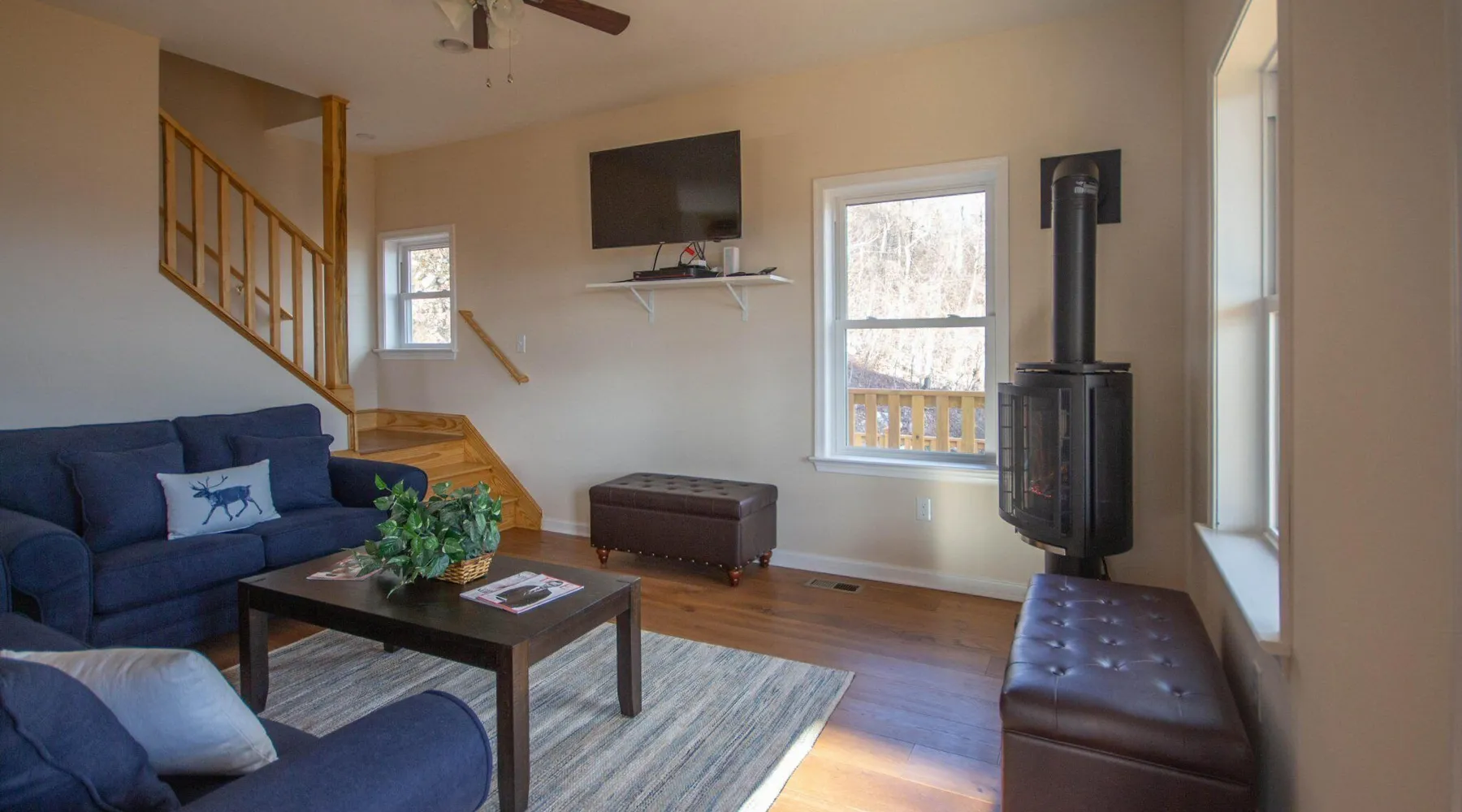 **Just installed- EV Charger- charge your electric vehicle right at the property!** Designed specifically for guests as a resort-style property, Shenandoah Manor is the perfect place for your getaway. Privacy, seclusion, and relaxation are just some of the things you'll find here, along with an abundance of wildlife- black bears, foxes, coyotes, raptors, deer, owls, wild turkeys, rabbits, and raccoons. Just a few short steps from the back door of Shenandoah Manor, you will find the George Washington National Forest, which offers opportunities for nature walks, hiking, and enjoying the peacefulness of nature. Recently built, no expense was spared in building a getaway that your family, friends, or group will talk about for years. This lodge is just a few miles from downtown Luray, the mighty Shenandoah River, and the National Park. Located at almost 2000 feet in mountain elevation, Shenandoah Manor offers fantastic views of Shenandoah National Park and surrounding George Washington National Forest- along with beautiful four-season views of the Shenandoah River. Two king, two queen, 1 full bed and 4 twin beds will comfortably sleep 14. The kitchen offers modern cooking, double ovens, a refrigerator, a dishwasher, and everything you need for a great meal. If you'd rather cook outside, we've got you covered with a gas grill. Challenge each other to a game of horseshoes or cornhole (cornhole is available during the summer months)! Go fishing in the pond! Sit around the fire pit, relaxing and toasting marshmallows. New Feature! A playground for the kids has just been added- they can swing and slide to their hearts' content! On rainy days, there is still plenty to do inside. With a game room featuring a pool table and foosball table, you'll be having fun for hours! Free, fast Wifi internet and Dish TV with hundreds of channels will keep you connected. There is a landline phone with free local and long-distance calls. There are board games to rummage through. Everywhere you turn, this house has what you're looking for! The property is also close to a host of attractions, including Luray Caverns, Cooter's Dukes of Hazzard Museum, The Civil War Museum, and more! Some things to note about Shenandoah Manor: Check-in is at 3:00 p.m., and check-out is at 11:00 a.m. Early check-in or late check-out may be available; feel free to ask us! Please try to limit the number of cars per reservation to 5 or fewer. The base rate includes 4 guests. Additional guests are extra. Please read the itemized charges carefully! Dogs are welcome! The weight limit is 50 pounds per dog, and the pet fee is $75 per dog. Unfortunately, we can't accept cats. Sorry about that! PLEASE NOTE: During winter months, a four-wheel drive (4WD) or all-wheel drive (AWD) vehicle is required. Shenandoah Manor has a security camera located on the property, which is pointed toward the driveway.